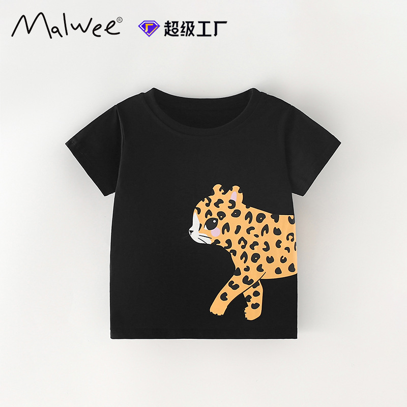 국경 간 말위 소녀 티셔츠 여름 새로운 유럽과 미국 어린이 둥근 목 짧은 소매 귀여운 프린트 아동용 탑스토어 가기