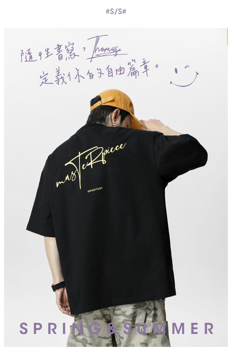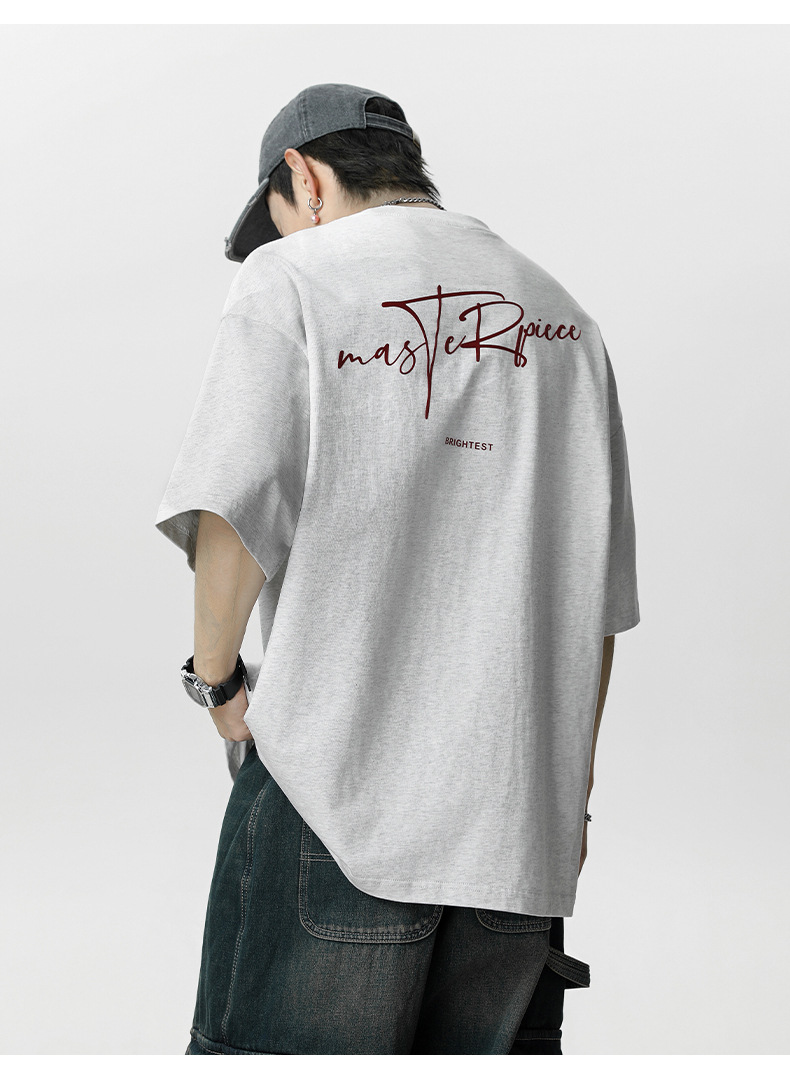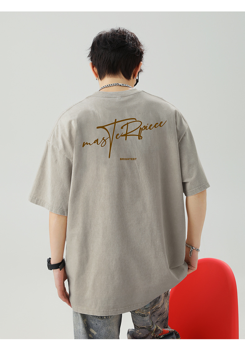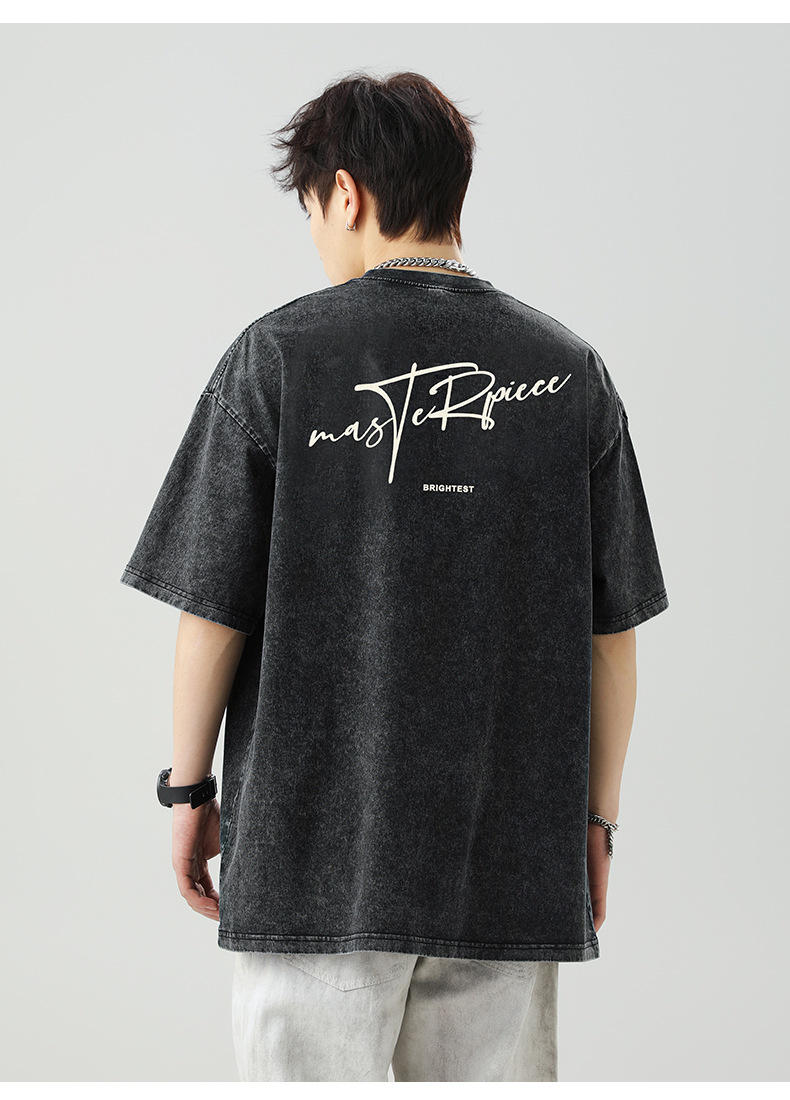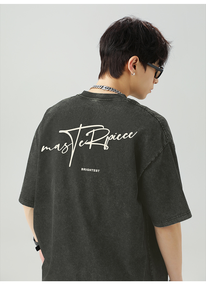 레트로 순면 반팔 티셔츠 남성용 25 여름 스타일 아메리칸 레터링 프린트 반팔 트렌디 브랜드 루즈핏 커플 티셔츠스토어 가기