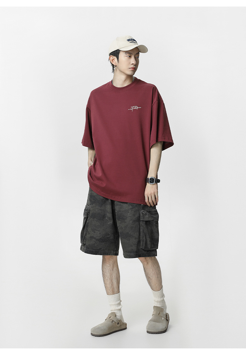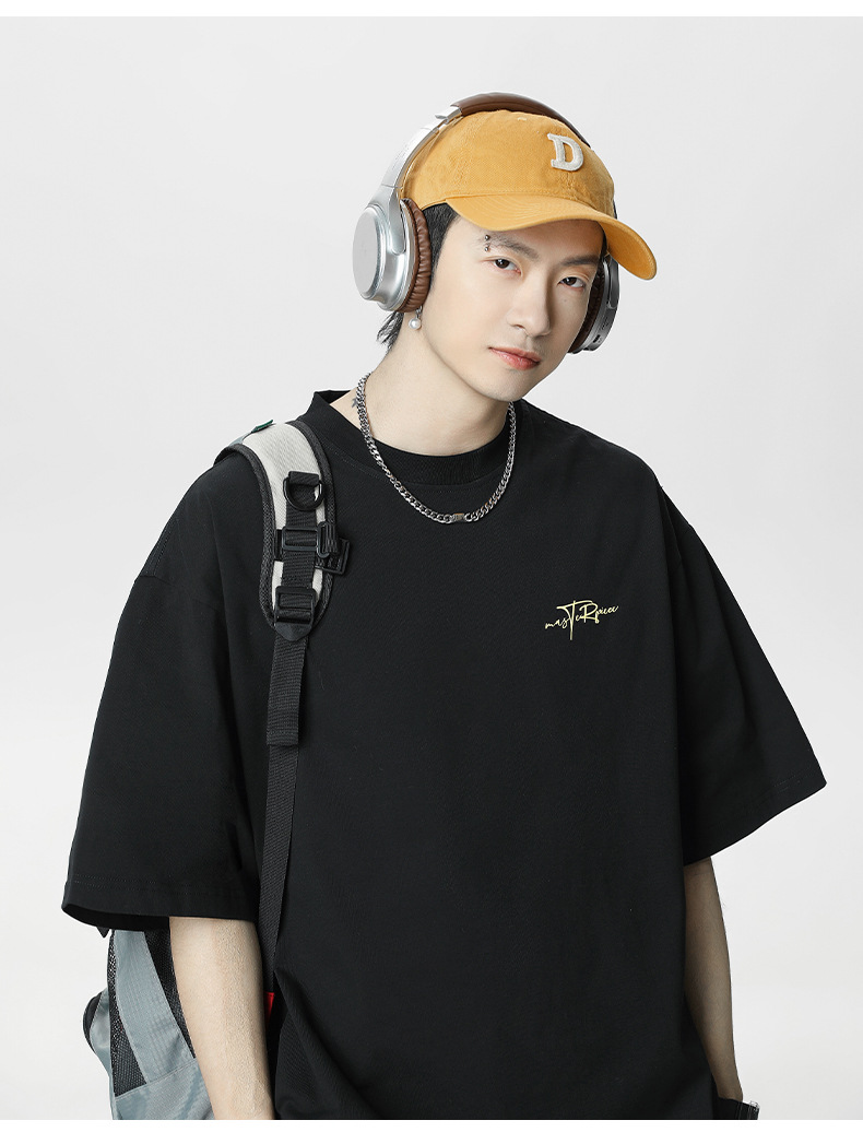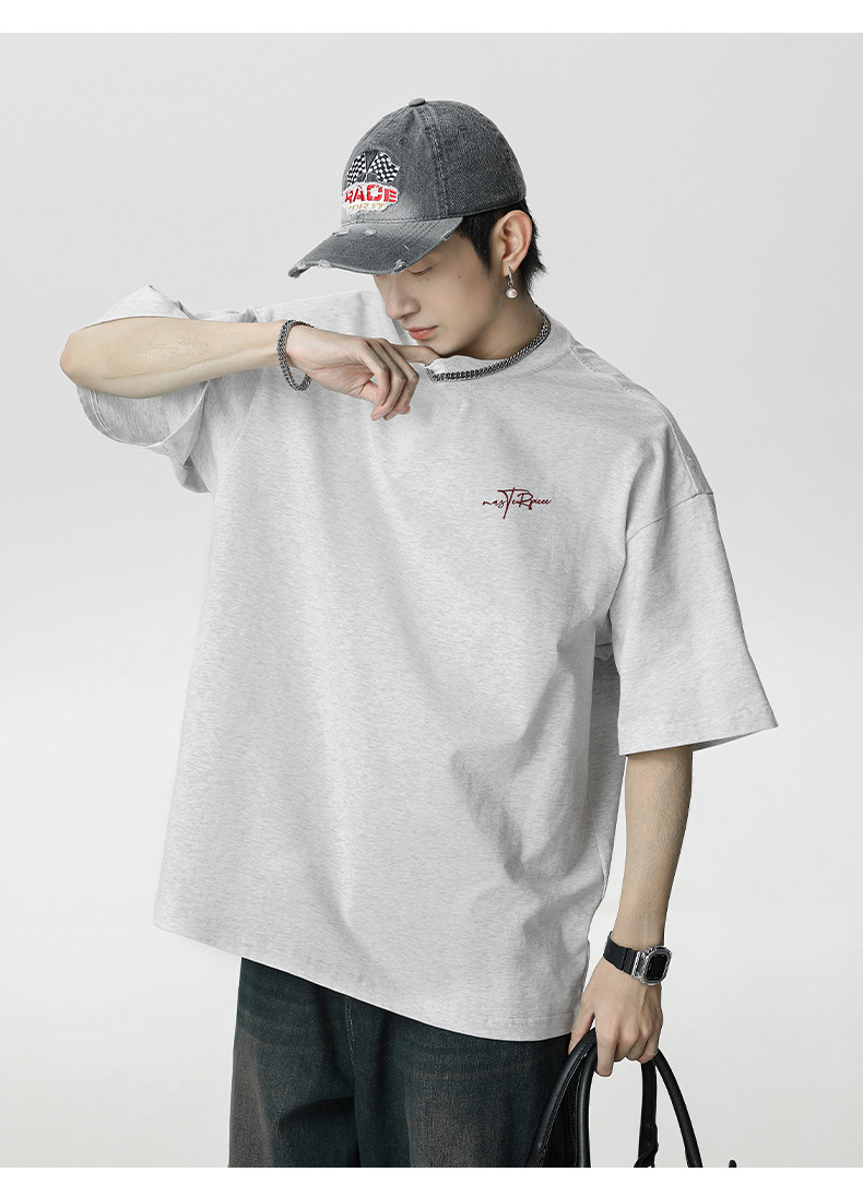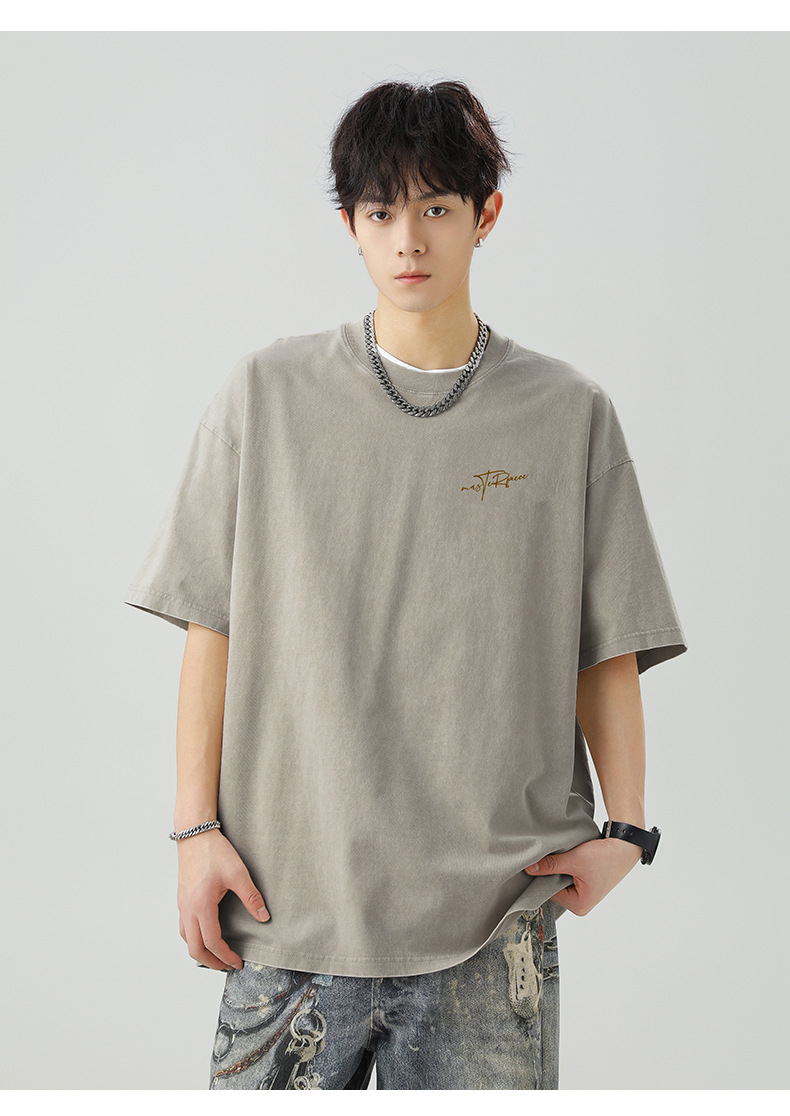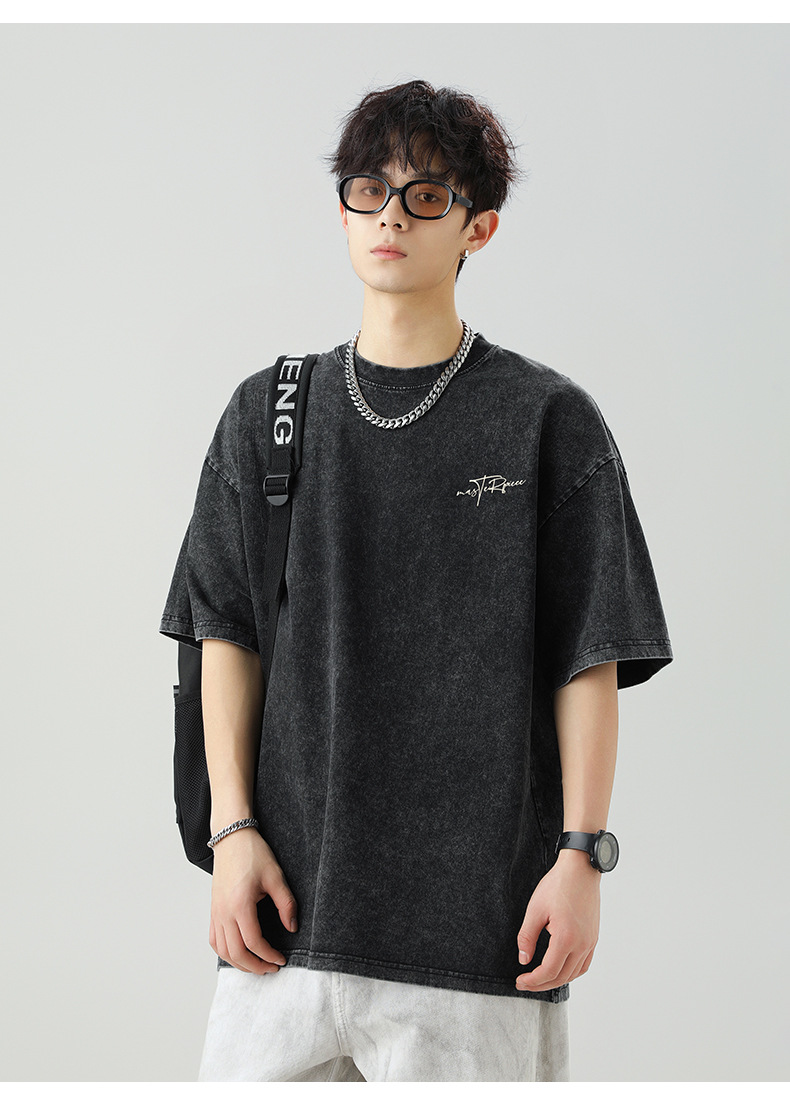 레트로 순면 반팔 티셔츠 남성용 25 여름 스타일 아메리칸 레터링 프린트 반팔 트렌디 브랜드 루즈핏 커플 티셔츠스토어 가기