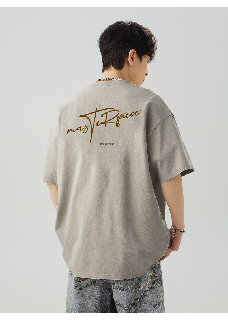 레트로 순면 반팔 티셔츠 남성용 25 여름 스타일 아메리칸 레터링 프린트 반팔 트렌디 브랜드 루즈핏 커플 티셔츠