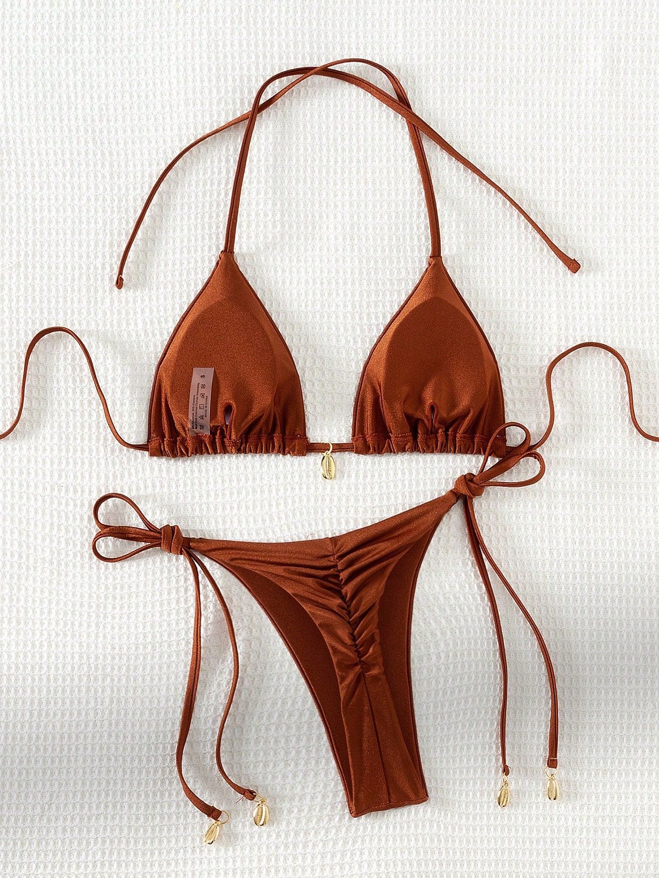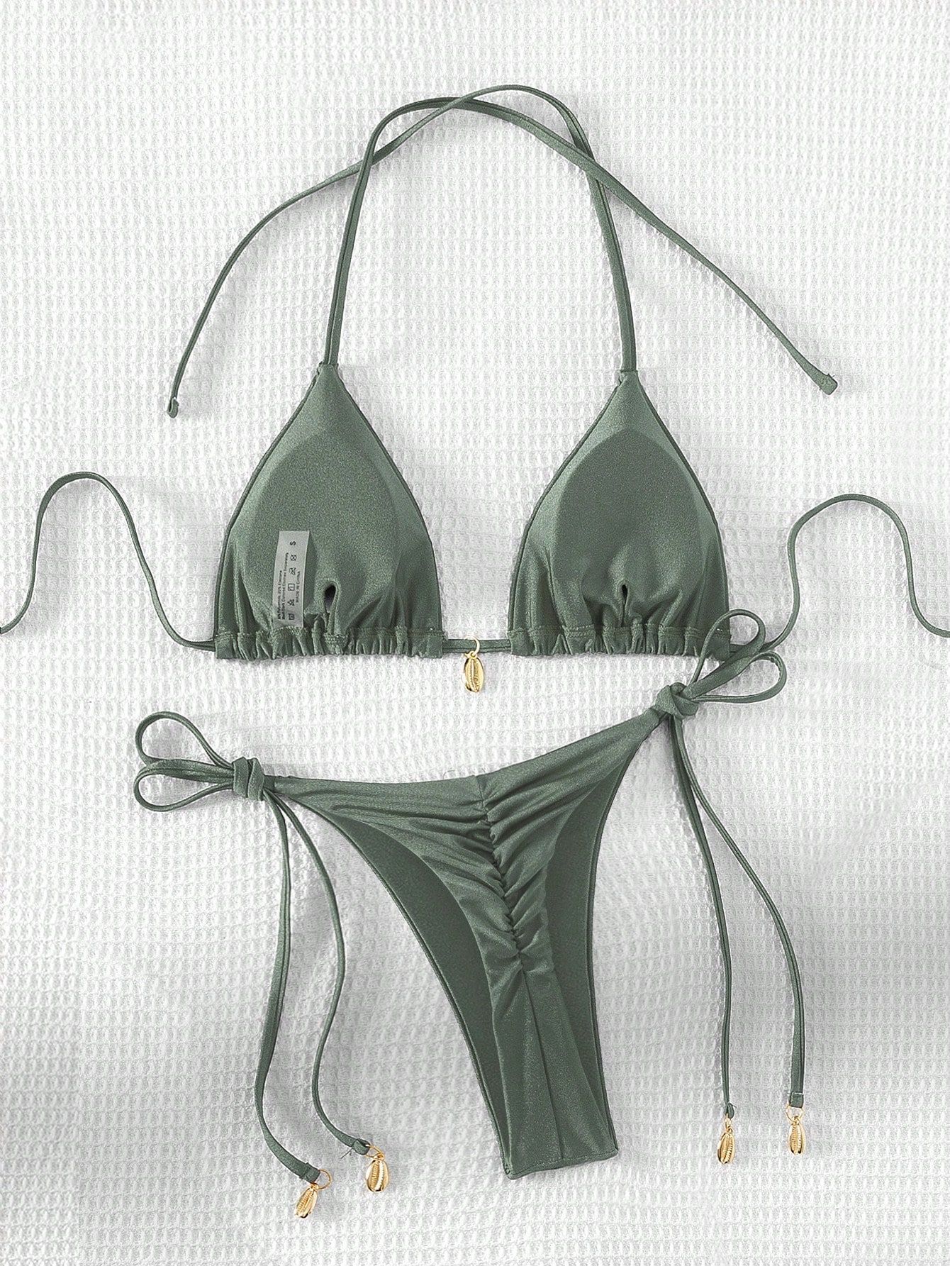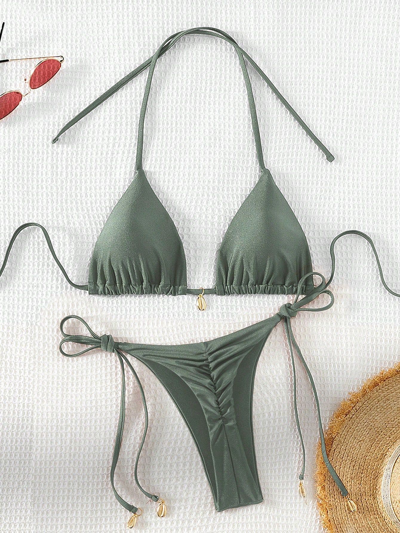 2025 유럽과 미국의 국경 새로운 여성 분할 비키니 솔리드 컬러 모임 액세서리 아마존 패션 수영복 여성