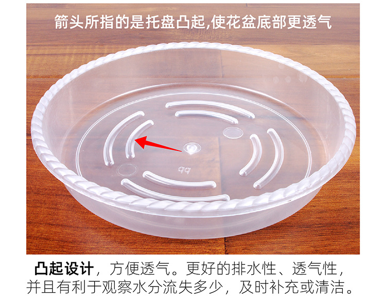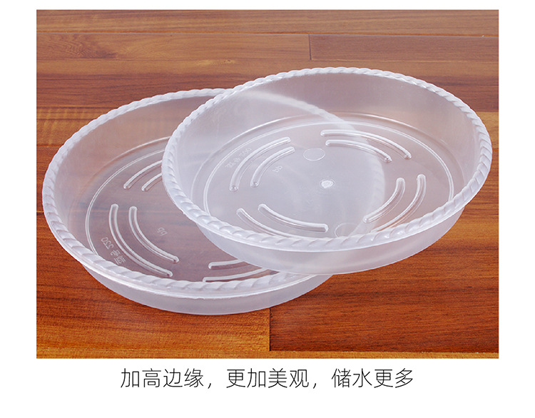 둥근 쟁반 투명한 플라스틱 수지 수취용 쟁반 두꺼운 대형 세라믹 꽃 냄비베이스 물 저장 트레이 꽃 냄비베이스