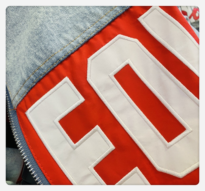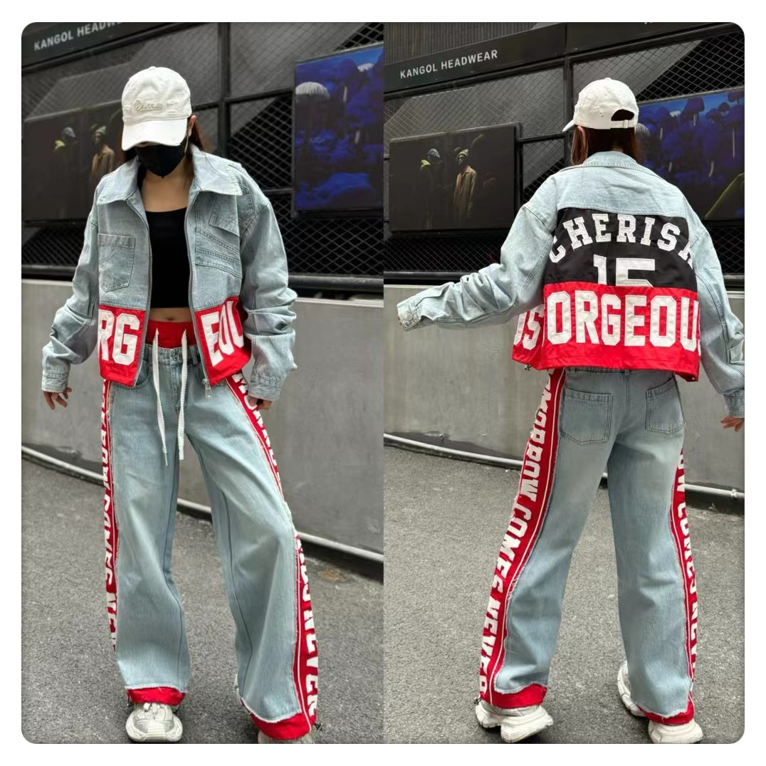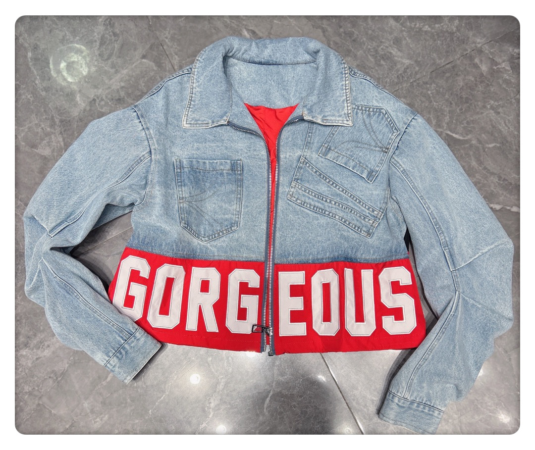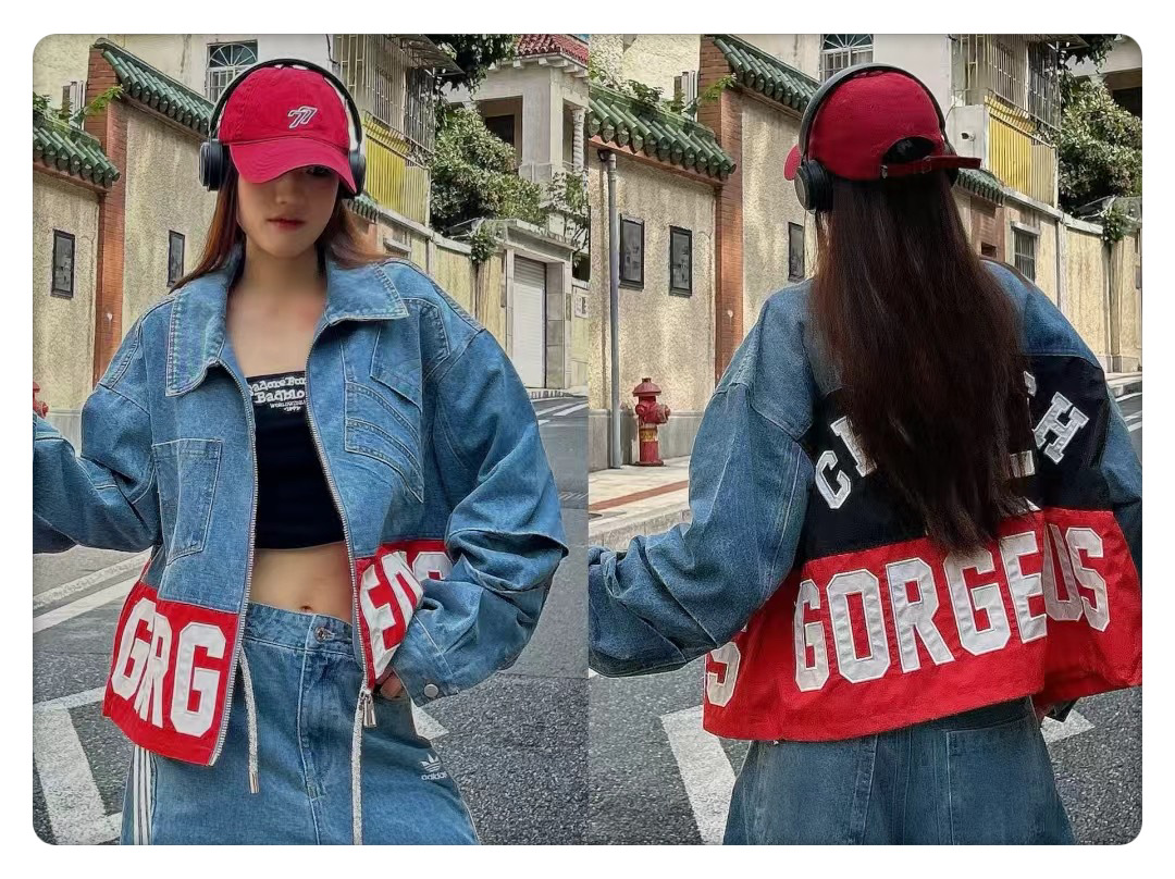 유럽 데님 재킷 여성 2025 봄 새로운 중공업 포켓 디자인 센스 편지 자수 컬러 매칭 재킷 패션 브랜드