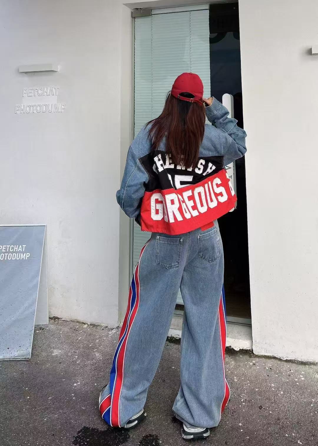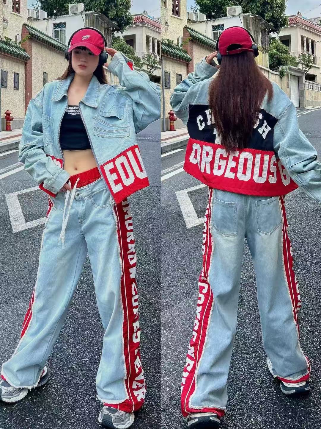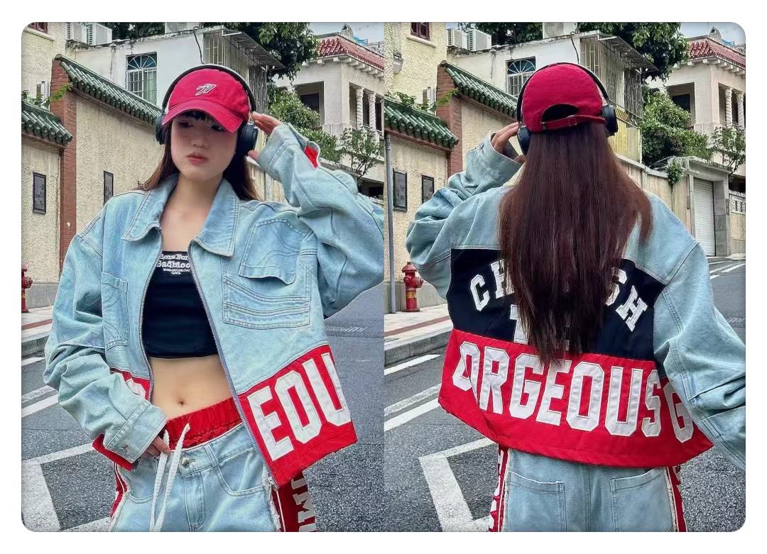 유럽 데님 재킷 여성 2025 봄 새로운 중공업 포켓 디자인 센스 편지 자수 컬러 매칭 재킷 패션 브랜드