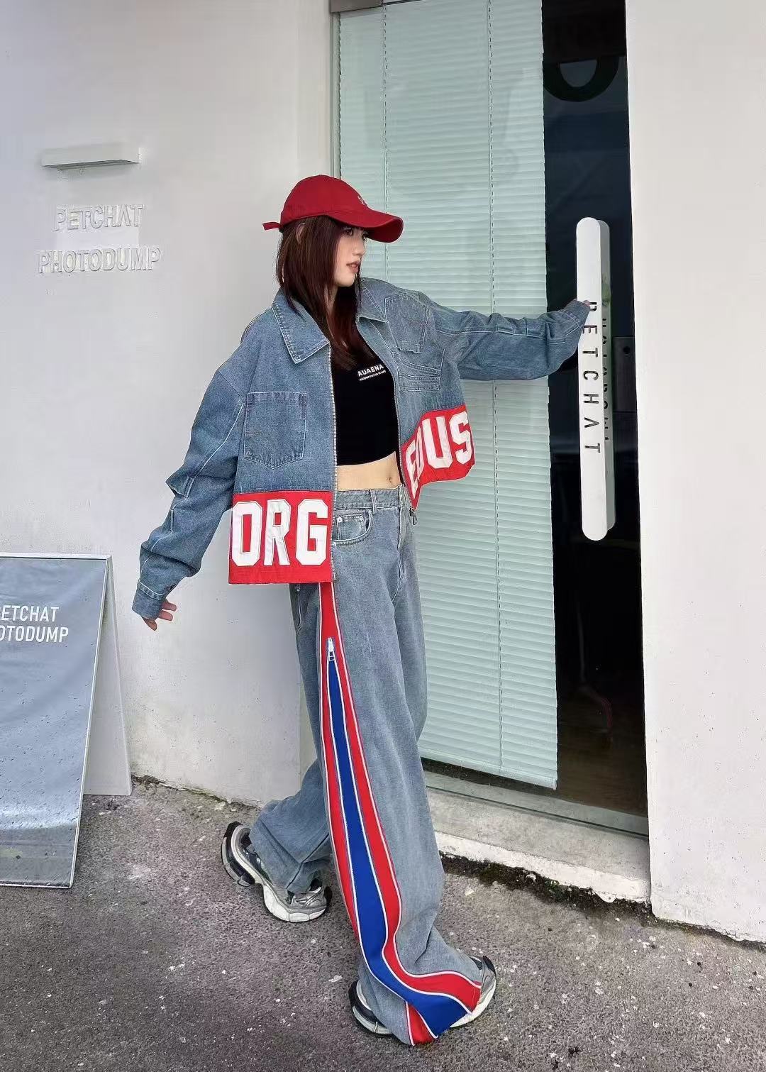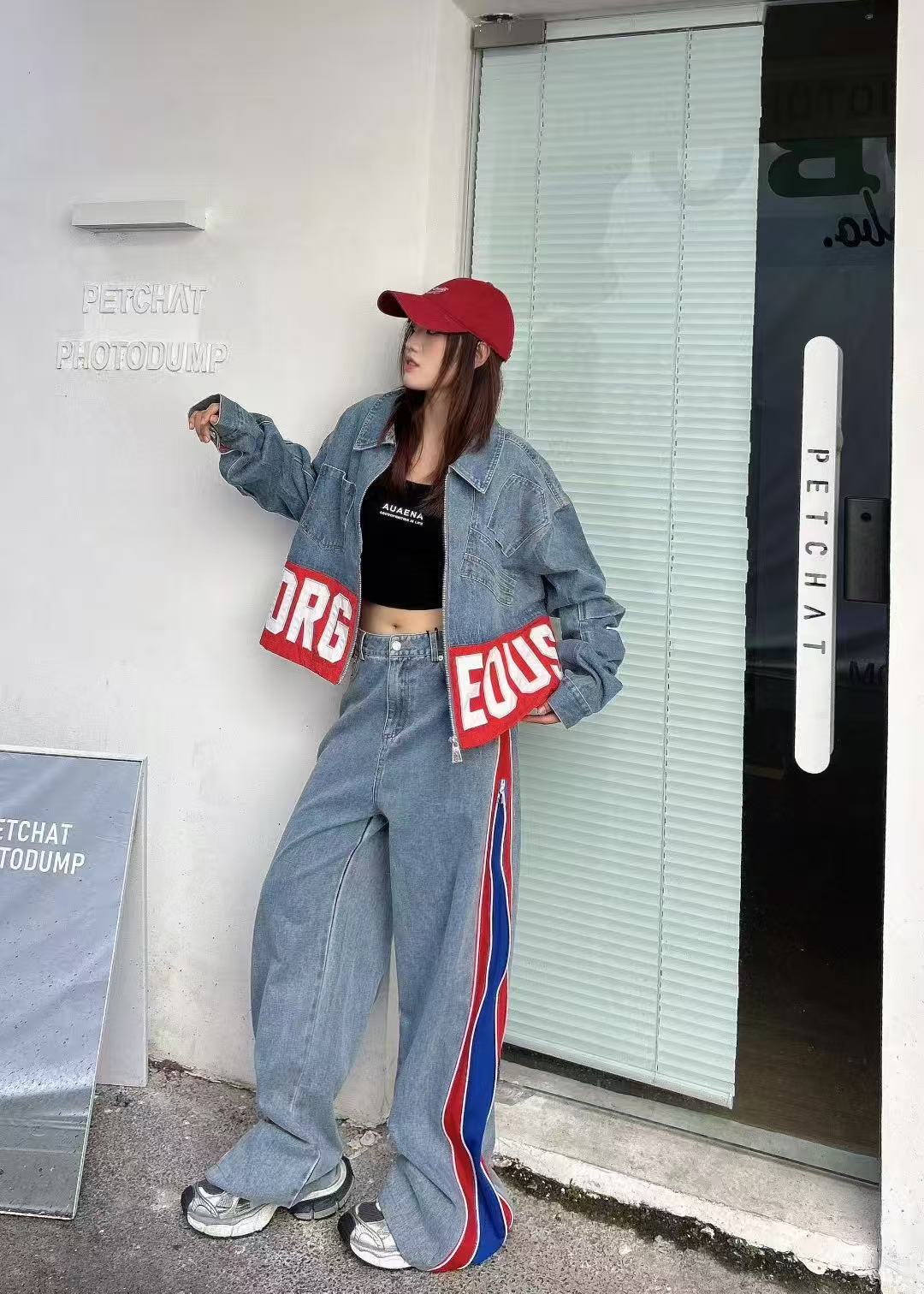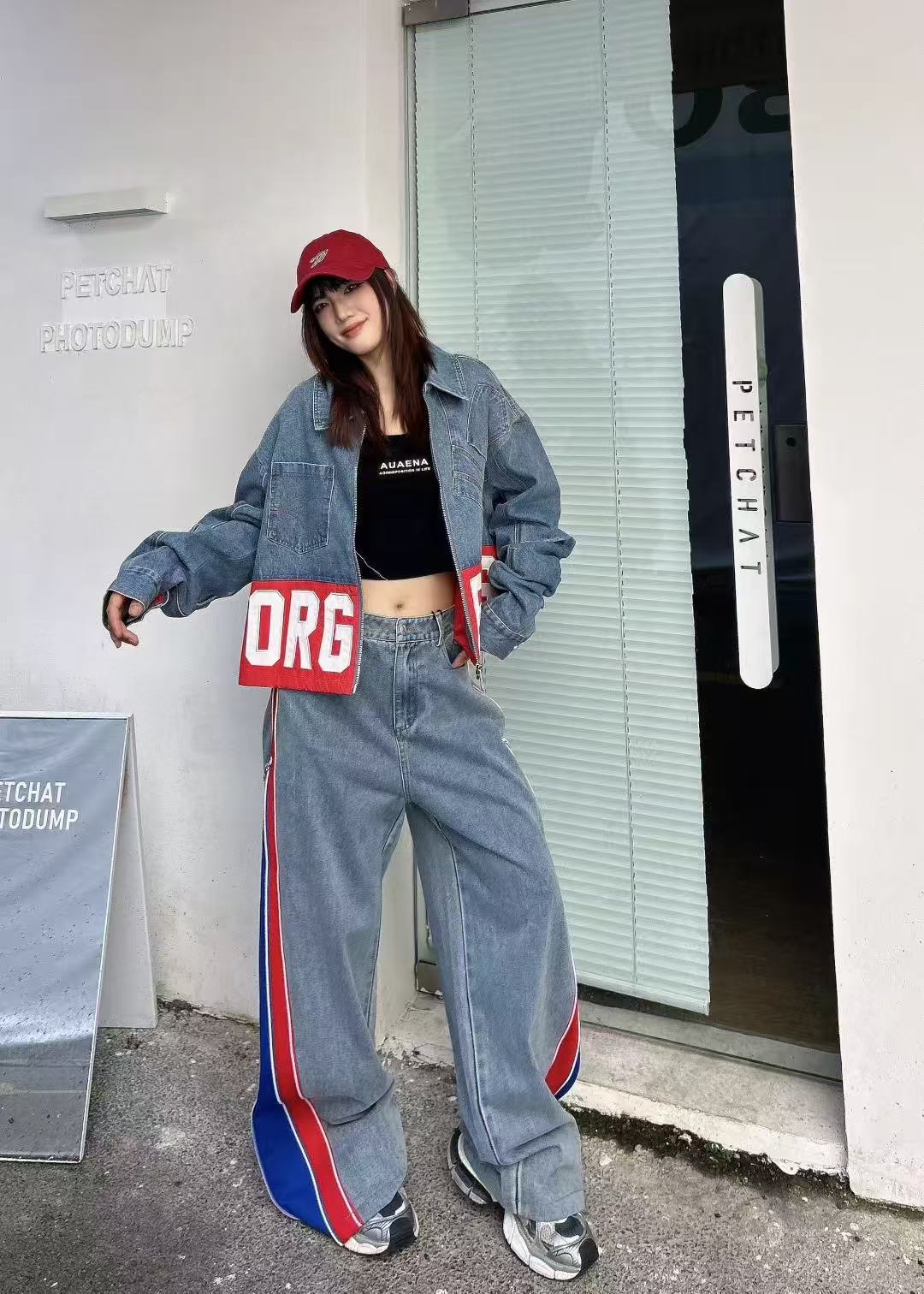 유럽 데님 재킷 여성 2025 봄 새로운 중공업 포켓 디자인 센스 편지 자수 컬러 매칭 재킷 패션 브랜드스토어 가기