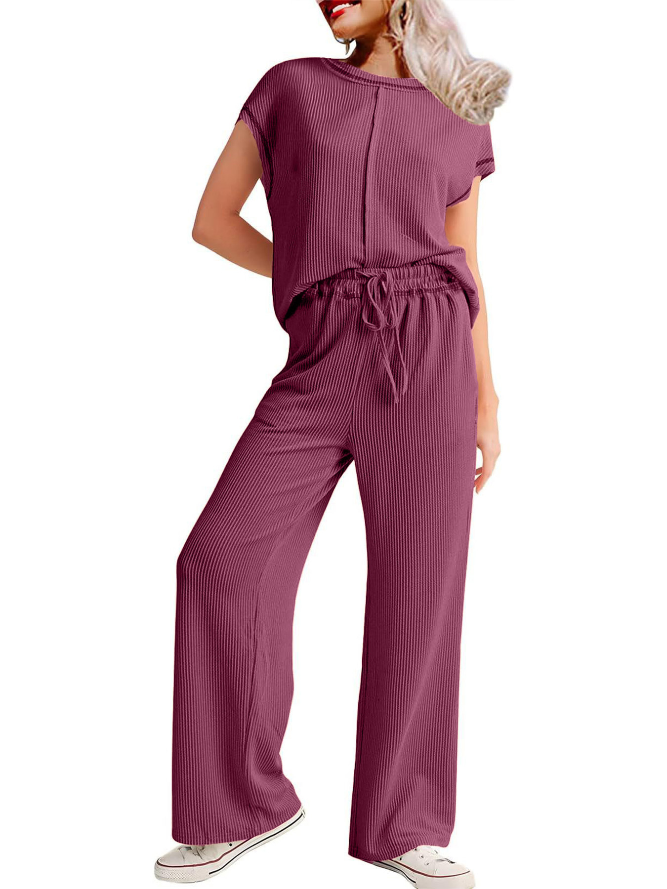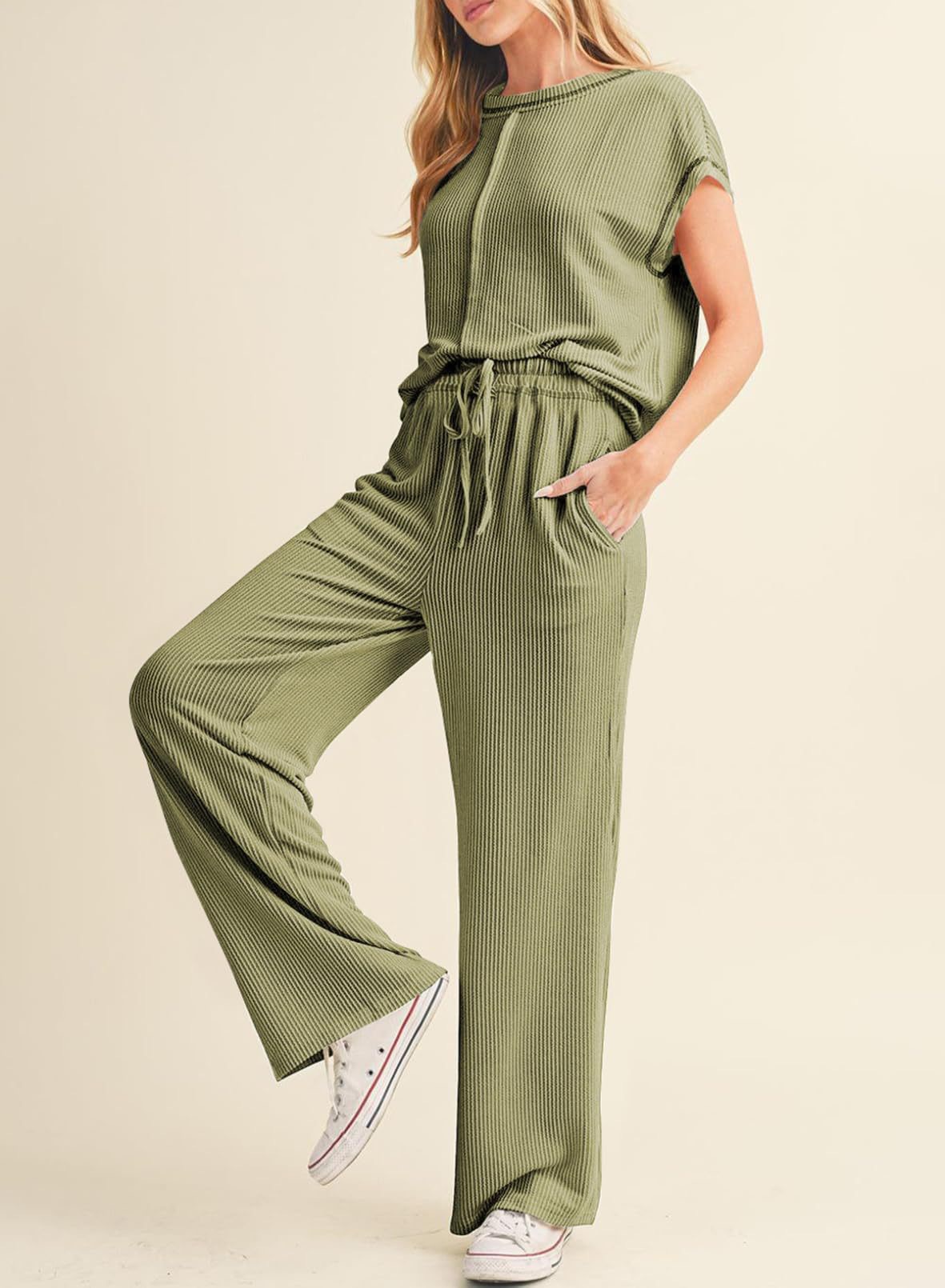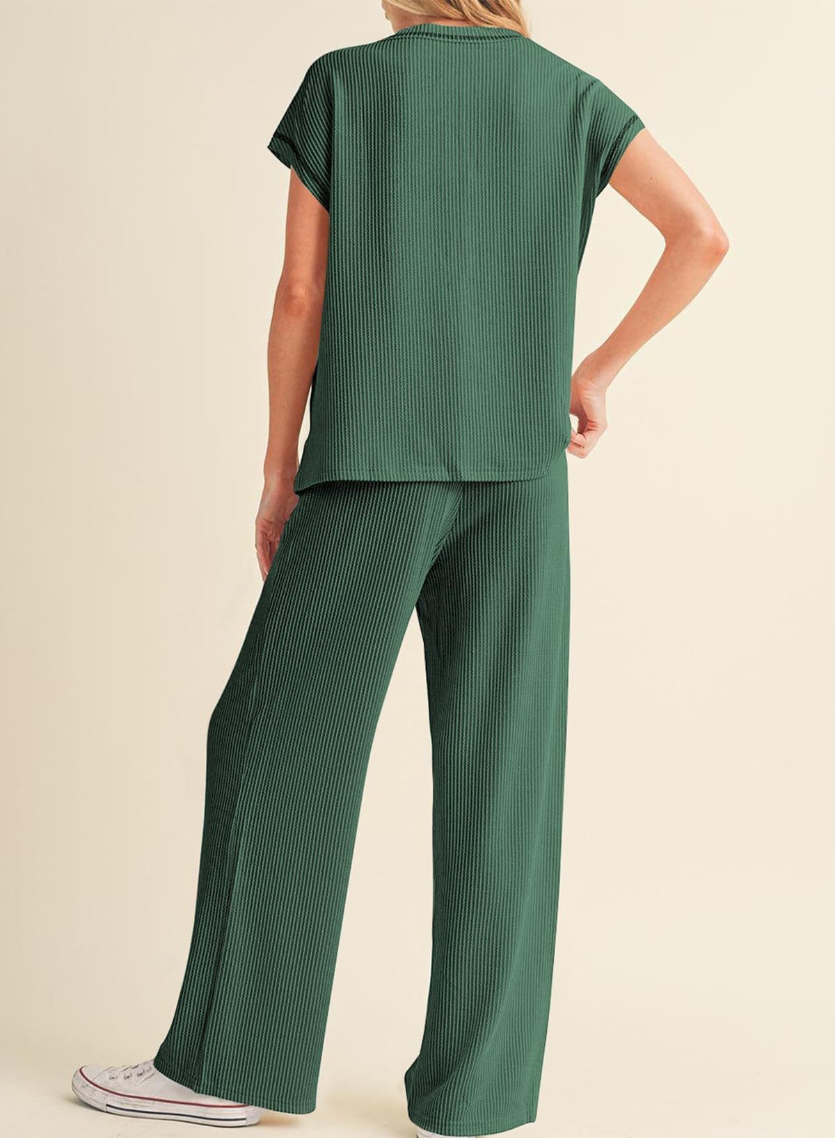 2026 아마존 유럽 및 미국 봄 여름 신상 패션 캐주얼 여성복 3부 소매 로프 솔리드 컬러 통근용 긴바지 정장 세트 여성용스토어 가기