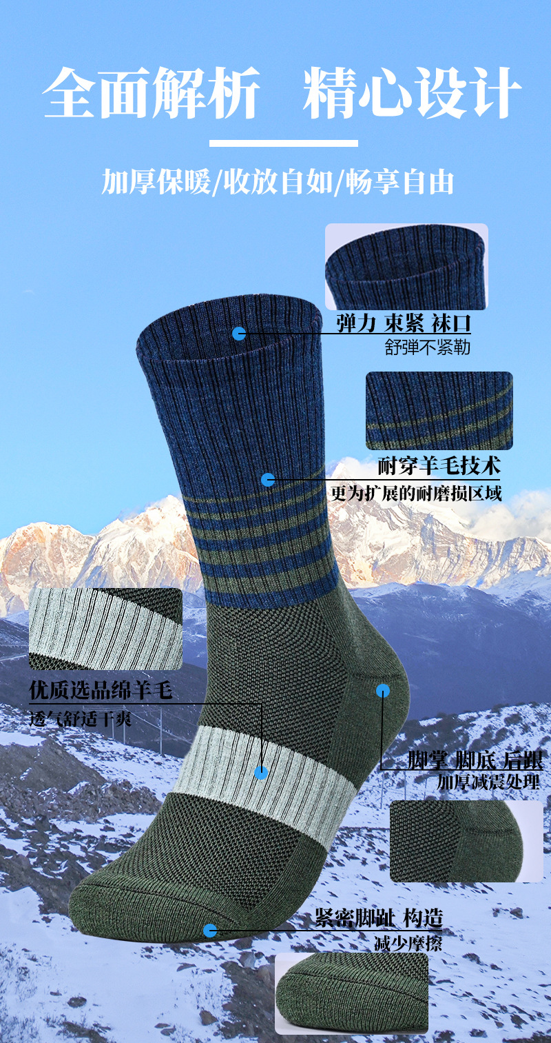 남성과 여성을위한 국경 간 긴 튜브 따뜻한 양말 메리노 양모 양말 타월 바닥 두꺼운 하이킹 등산 미드 튜브 스포츠 양말