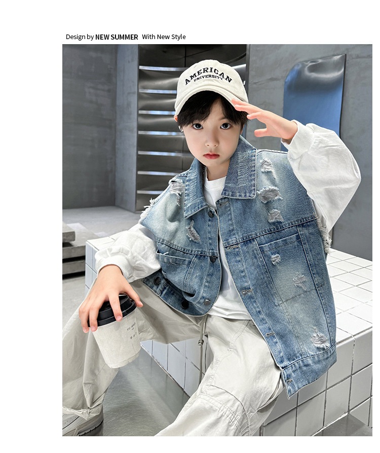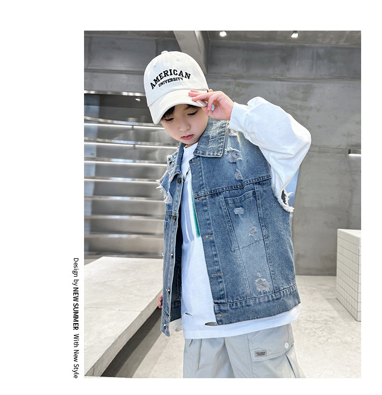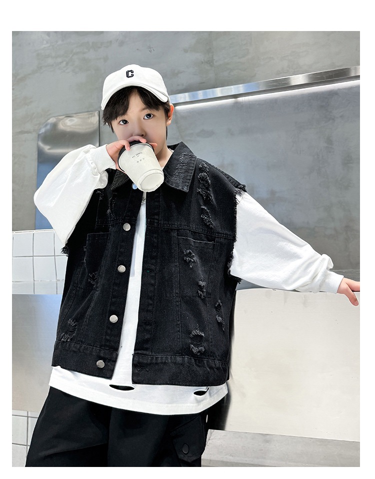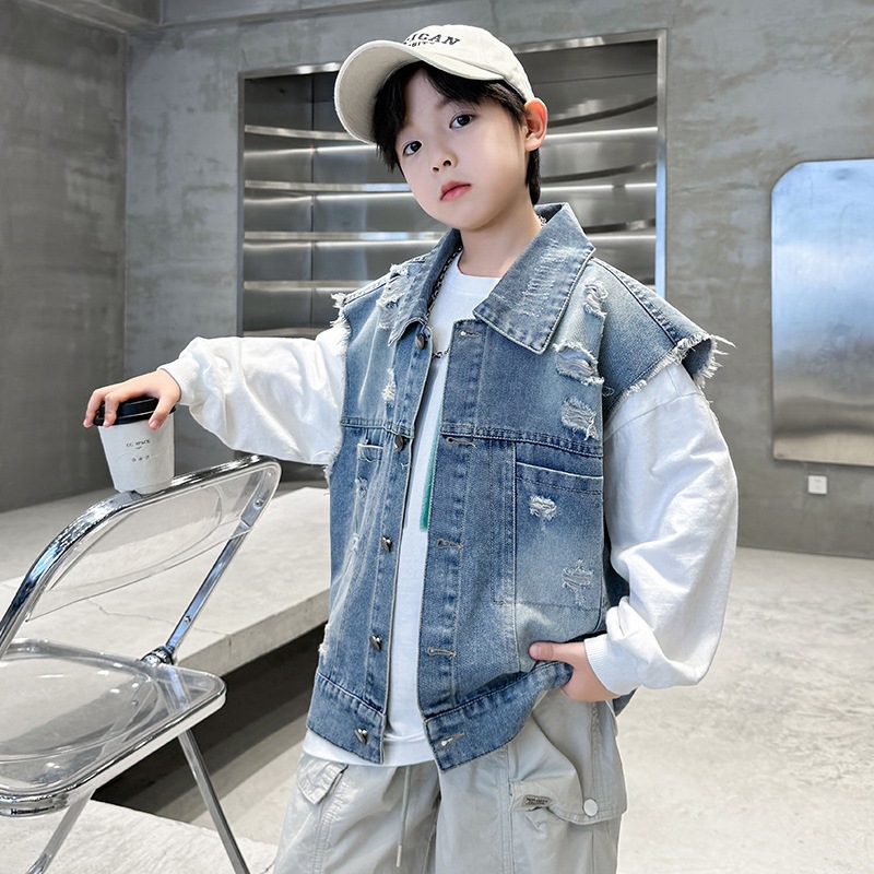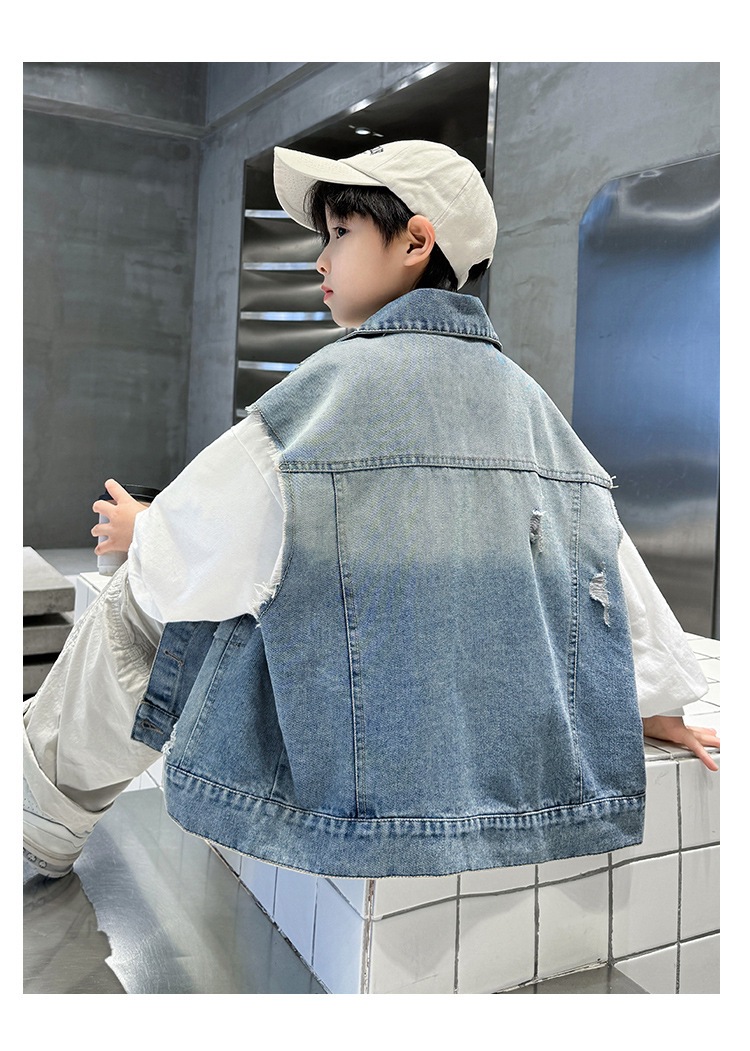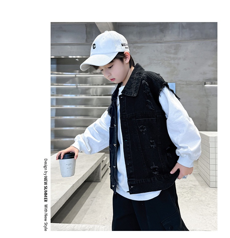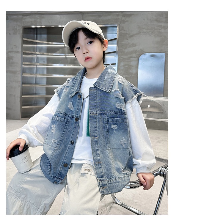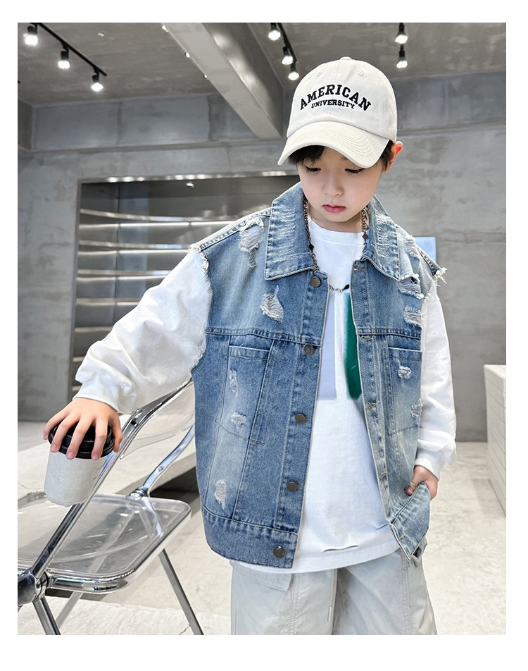 소년 구멍 데님 조끼 2025 봄 새 어린이 봄 착용스토어 가기