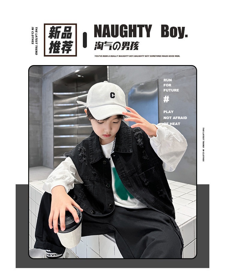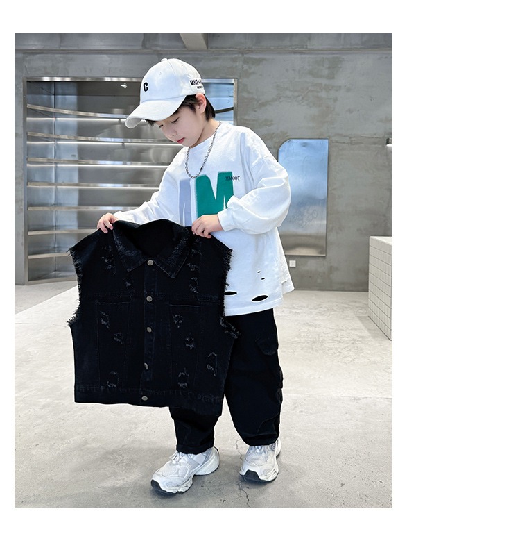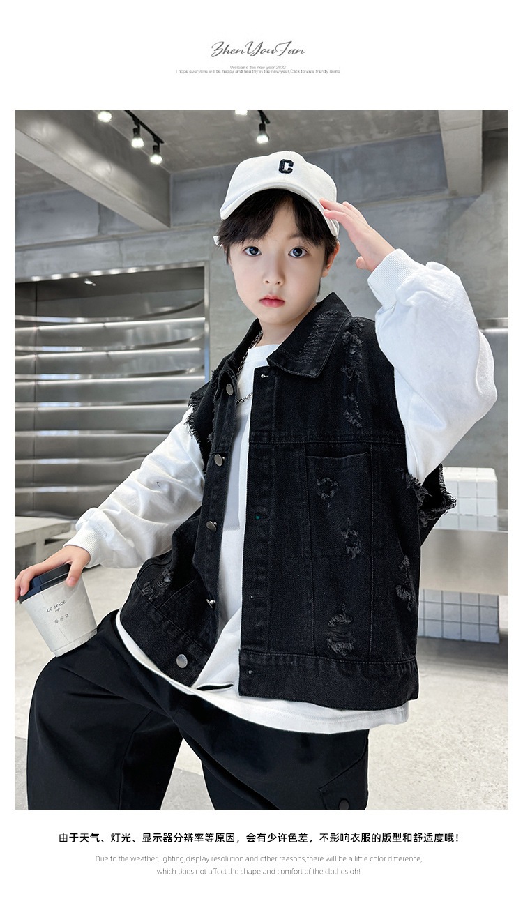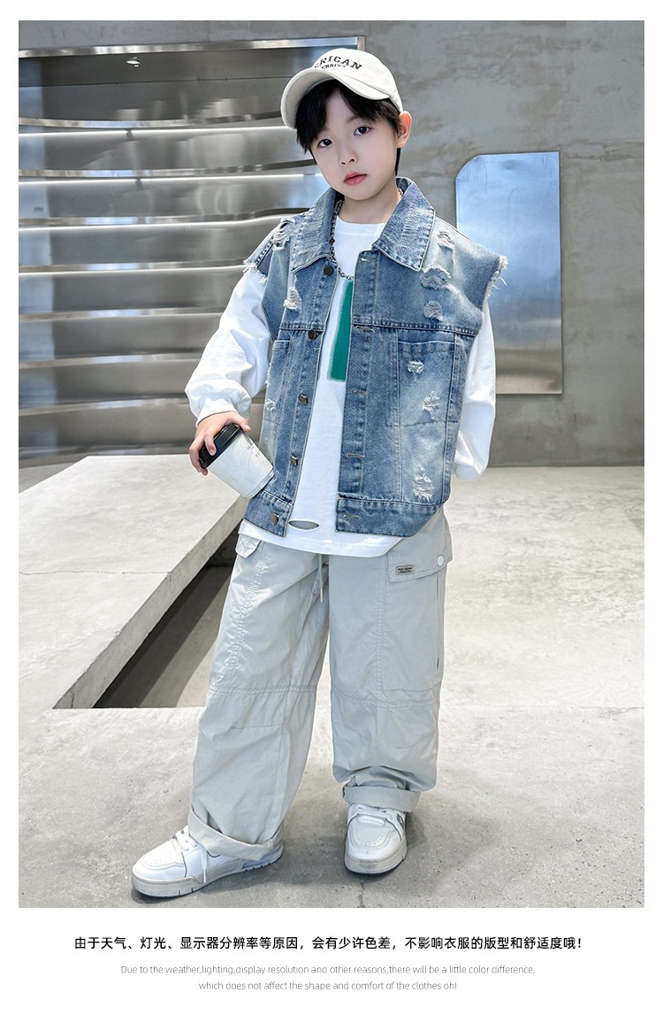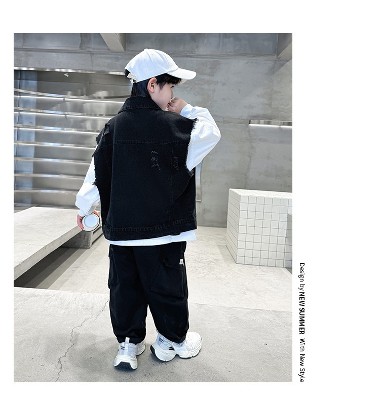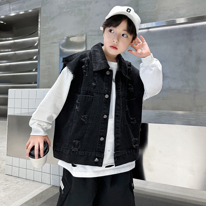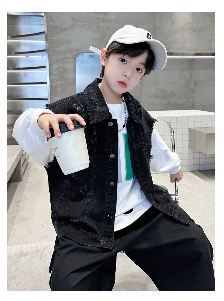 소년 구멍 데님 조끼 2025 봄 새 어린이 봄 착용스토어 가기