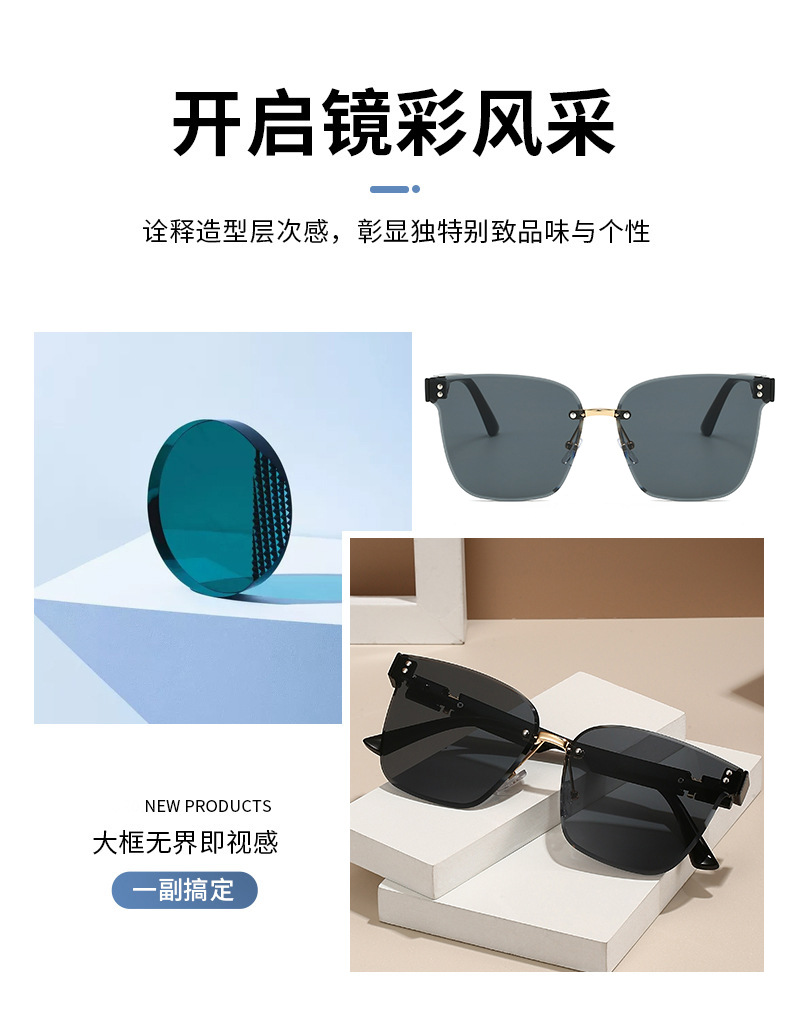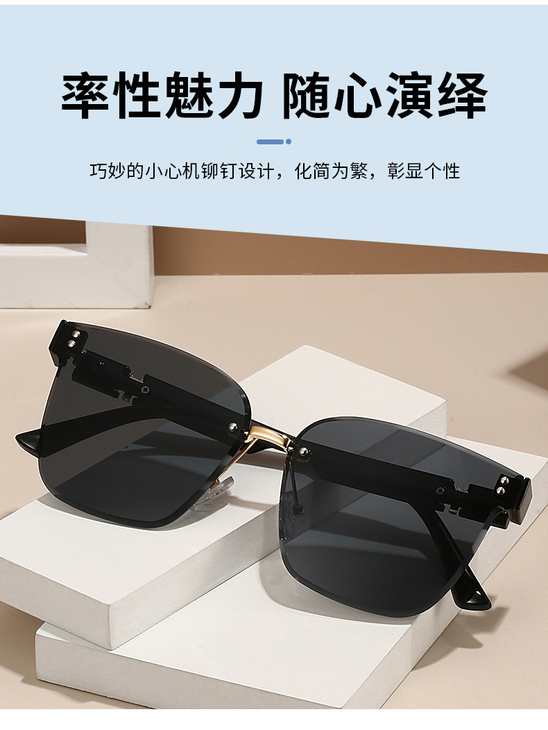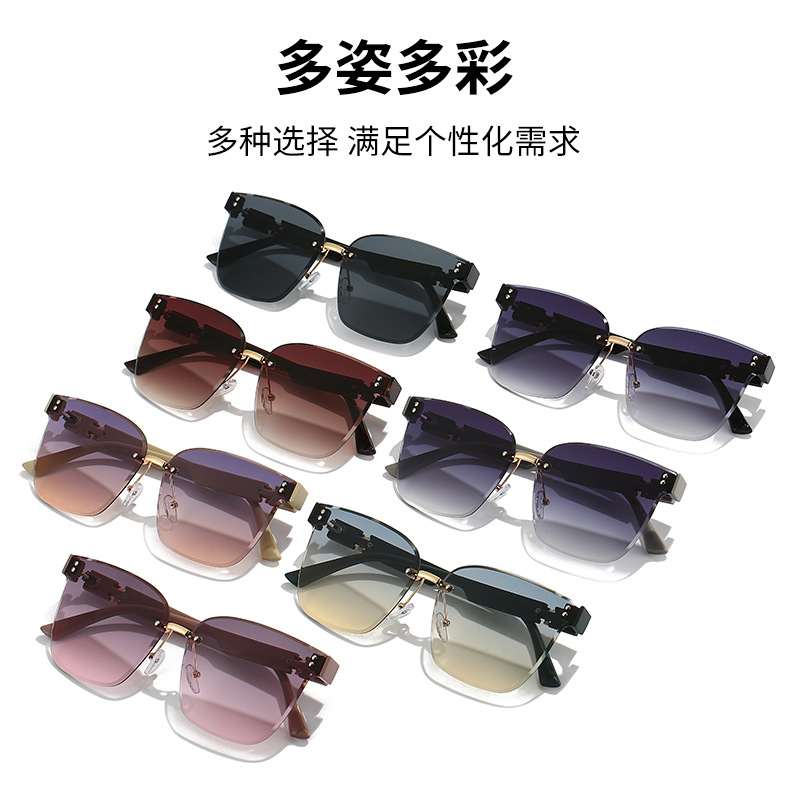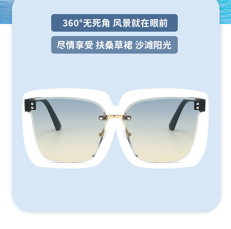 선글라스 유행 남성과 여성의 새로운 안티 자외선 태양 보호 큰 얼굴 프레임리스 패션 고급 감각 선글라스 더블 컬러 필름스토어 가기