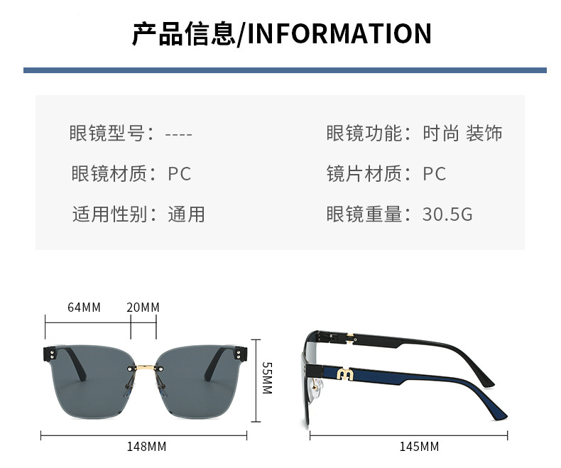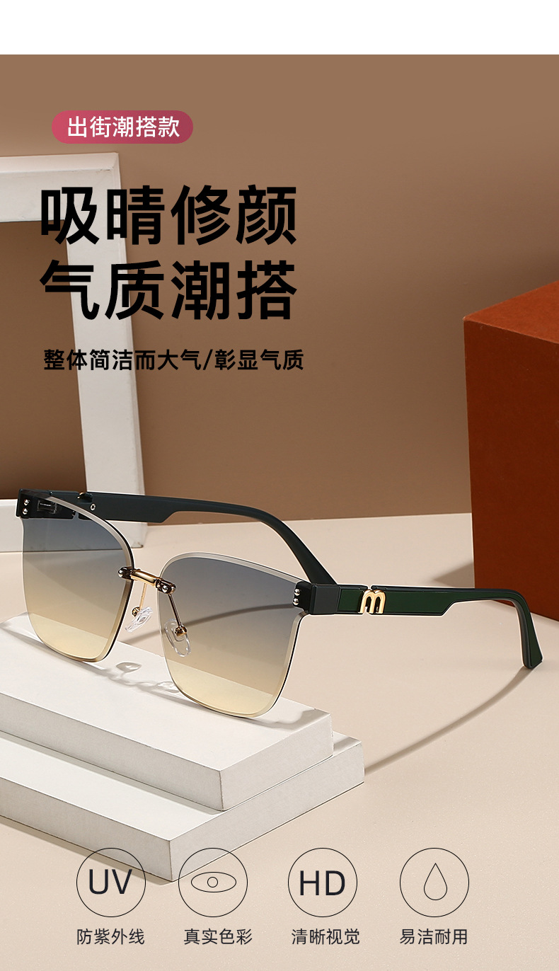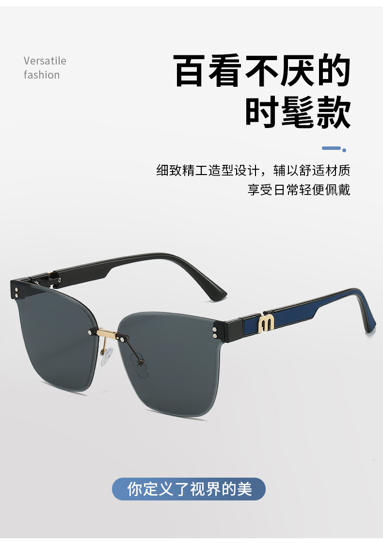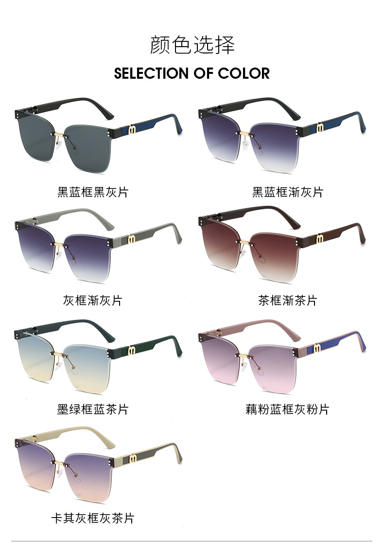 선글라스 유행 남성과 여성의 새로운 안티 자외선 태양 보호 큰 얼굴 프레임리스 패션 고급 감각 선글라스 더블 컬러 필름스토어 가기