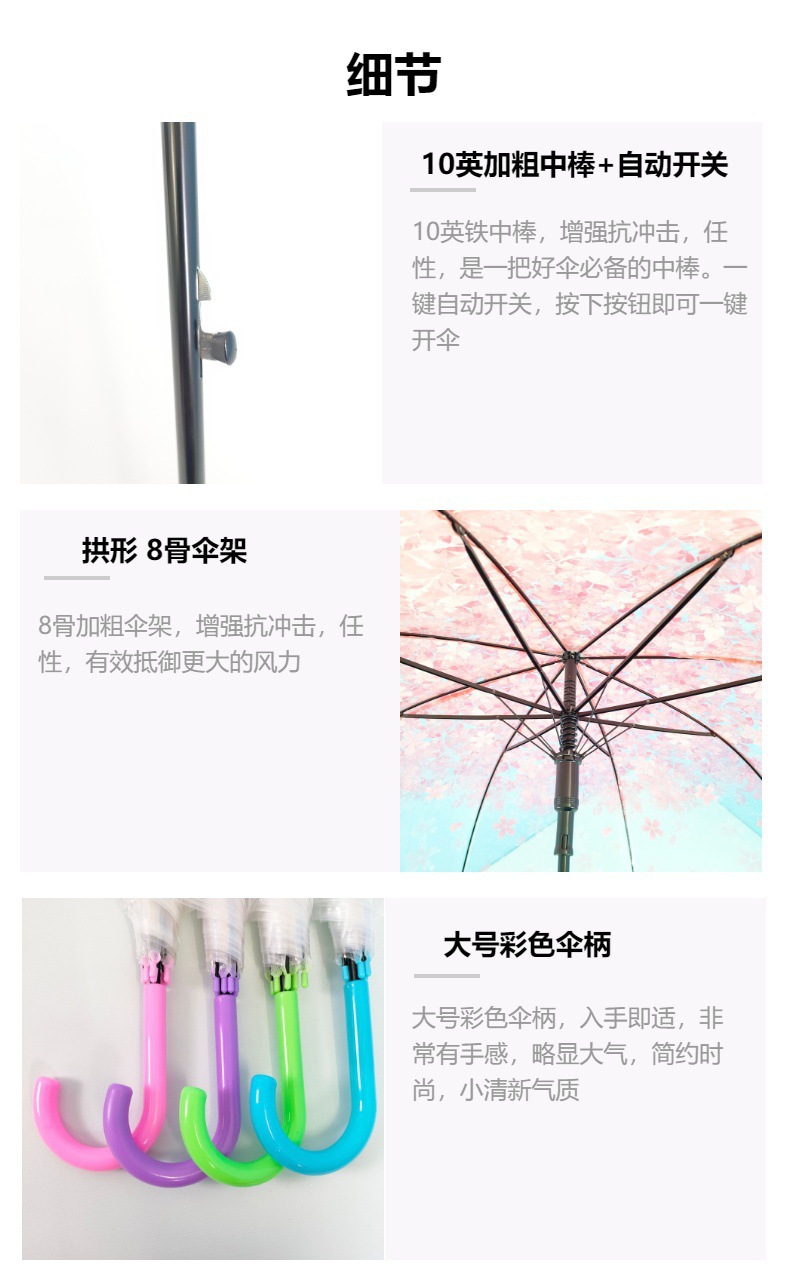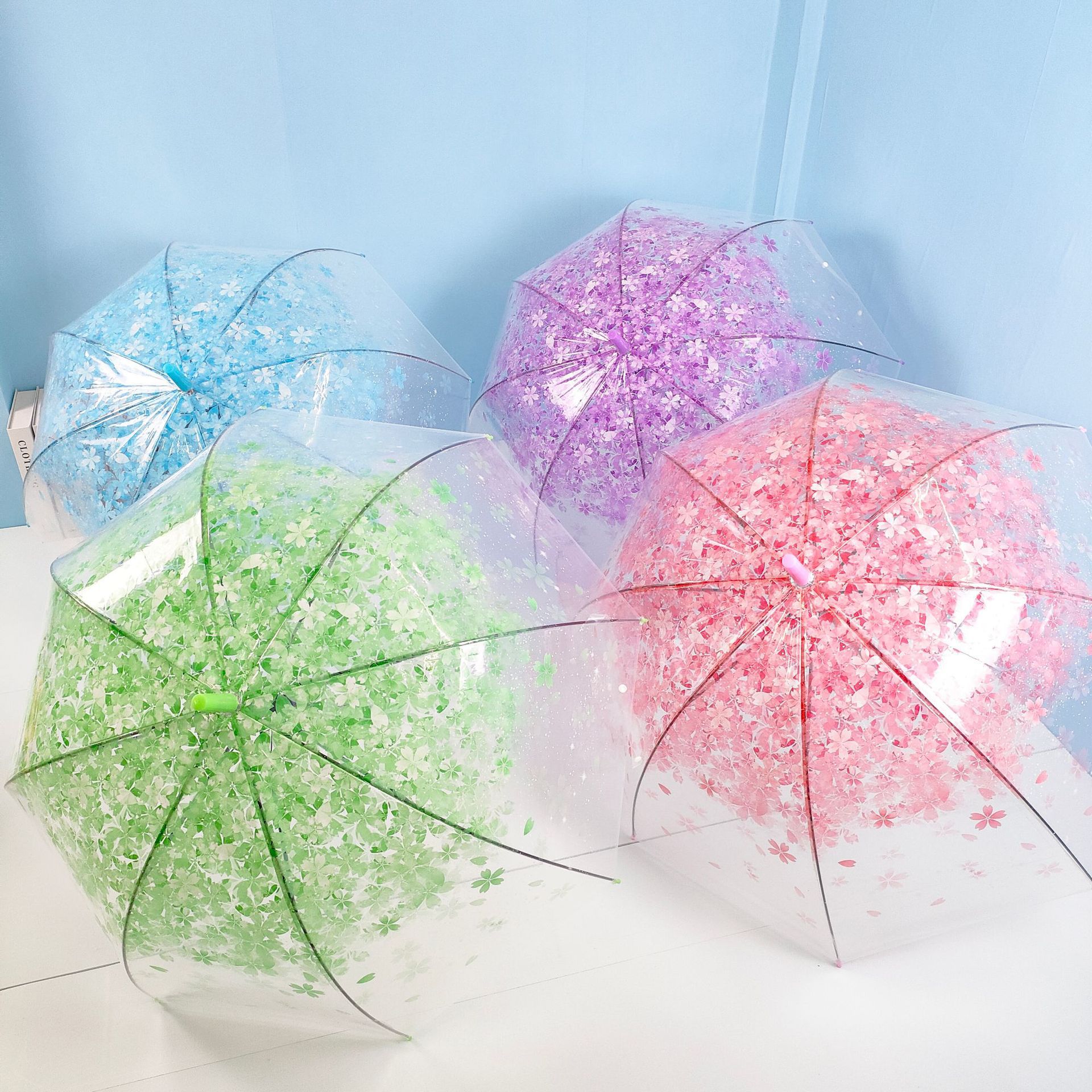 일본식 8k 아치 인쇄 투명 우산 작은 신선한 여성 대형 긴 손잡이 우산 아폴로 벚꽃 투명 우산 도매스토어 가기