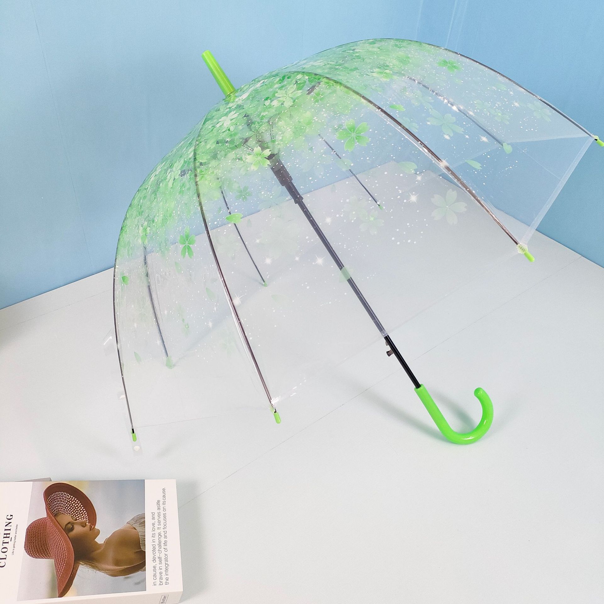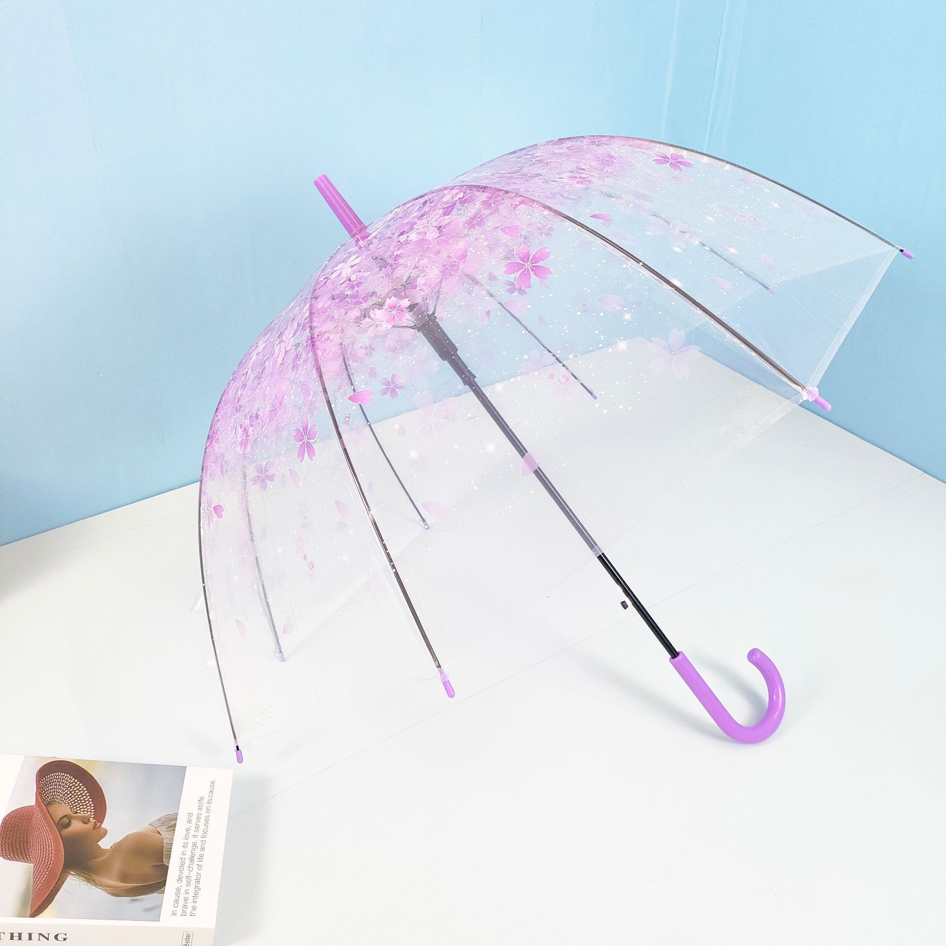 일본식 8k 아치 인쇄 투명 우산 작은 신선한 여성 대형 긴 손잡이 우산 아폴로 벚꽃 투명 우산 도매