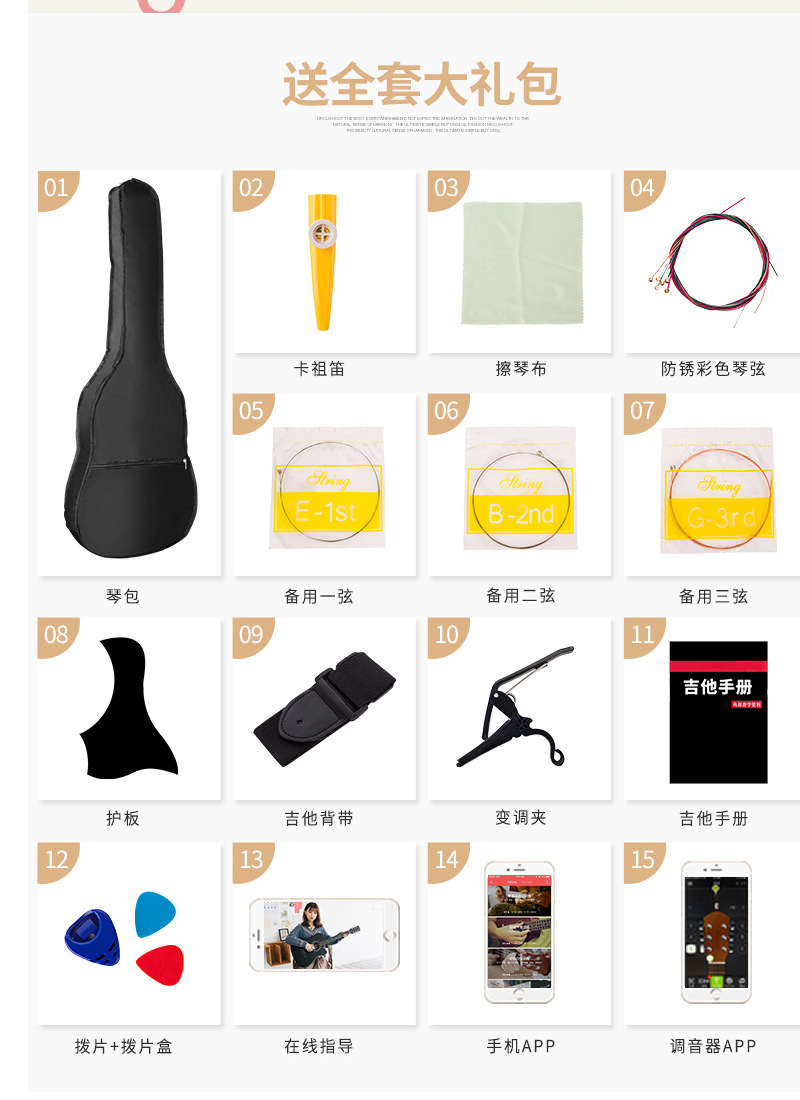 기타 공장 직접 도매 38 인치 바스 우드 민속 음악 남성과 여성 학생들이 악기 연습을 배우고 있습니다.스토어 가기