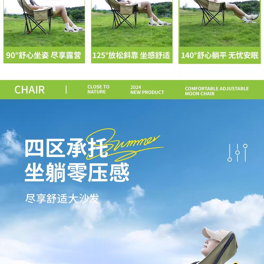 • [3단 버클 고정 및 조절 가능한 하이백 달 의자/대나무 그린] 5겹 진주 누빔 + 망간강 의자 프레임