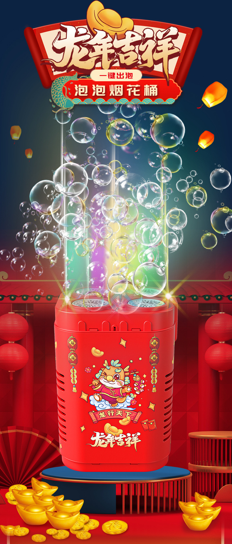 새해 봄 축제 불꽃 놀이 거품 기계 소년과 소녀 새해 전기 거품 불빛으로 불고 새해 분위기 장난감 도매