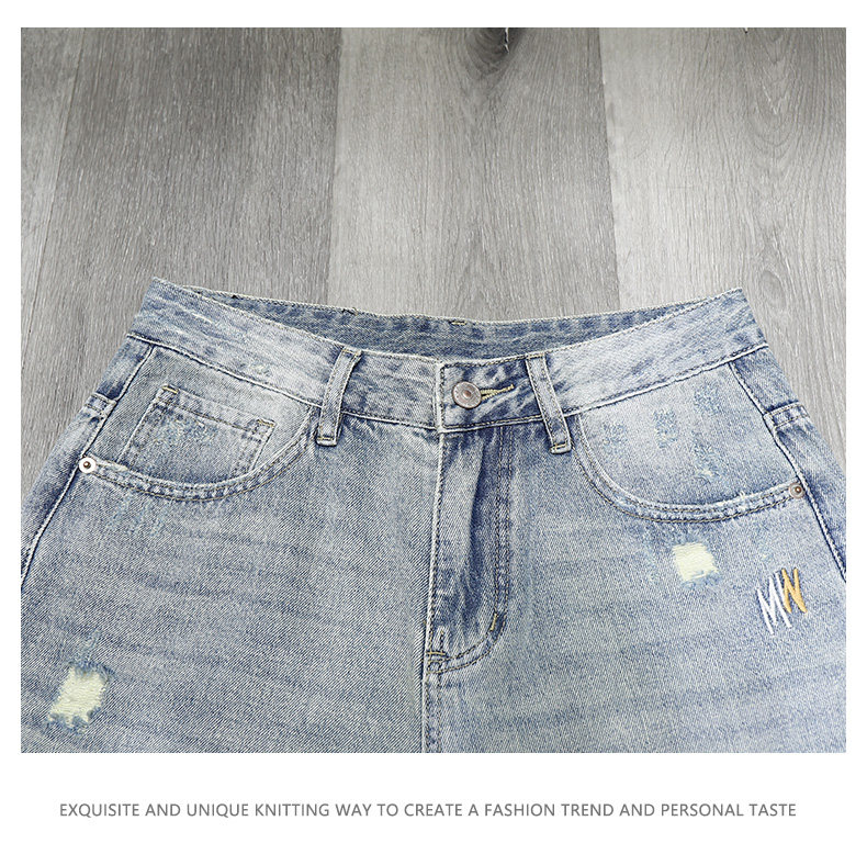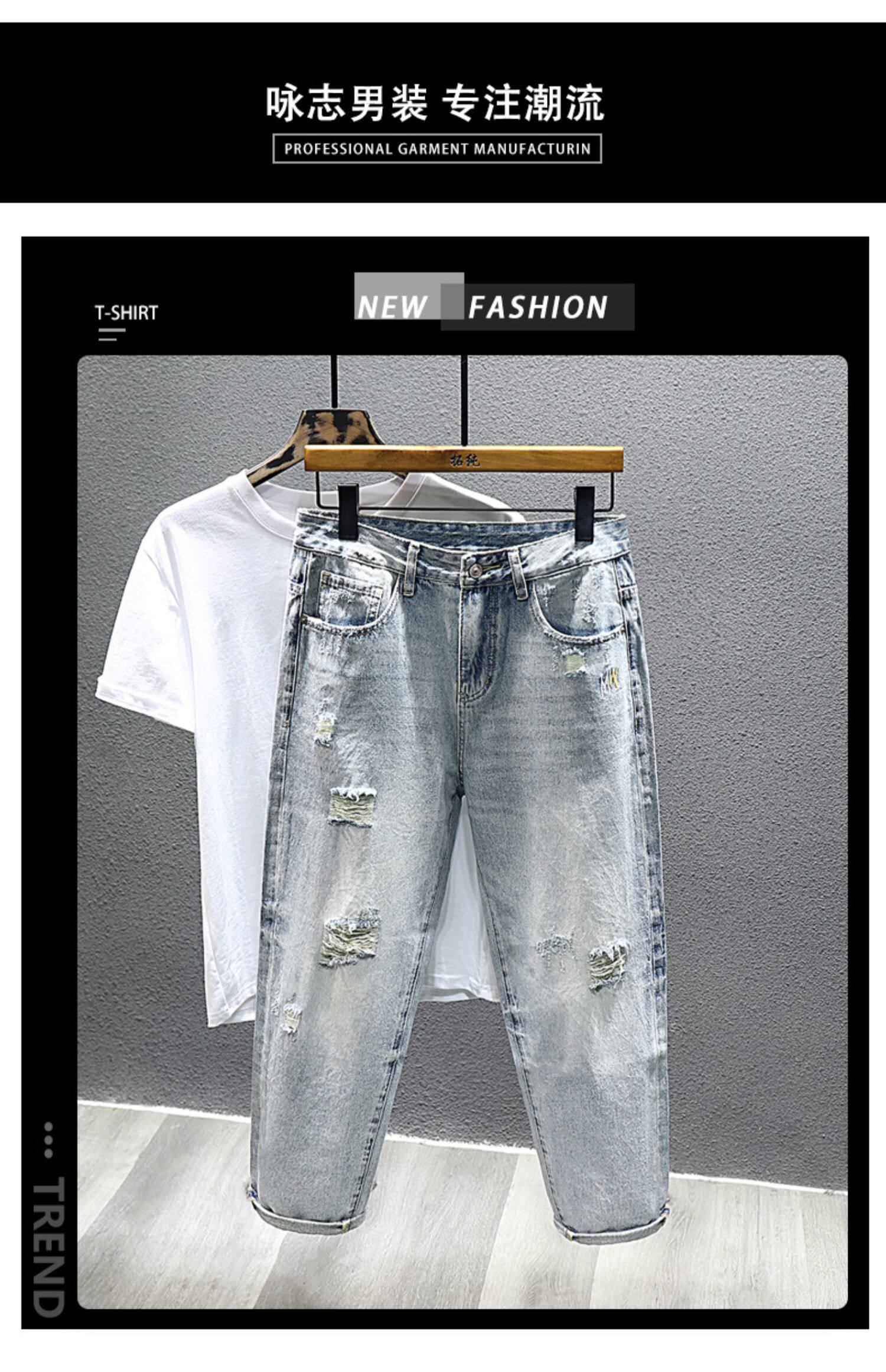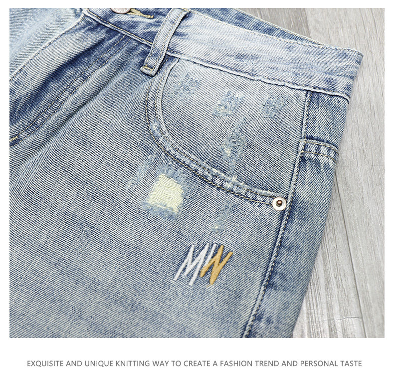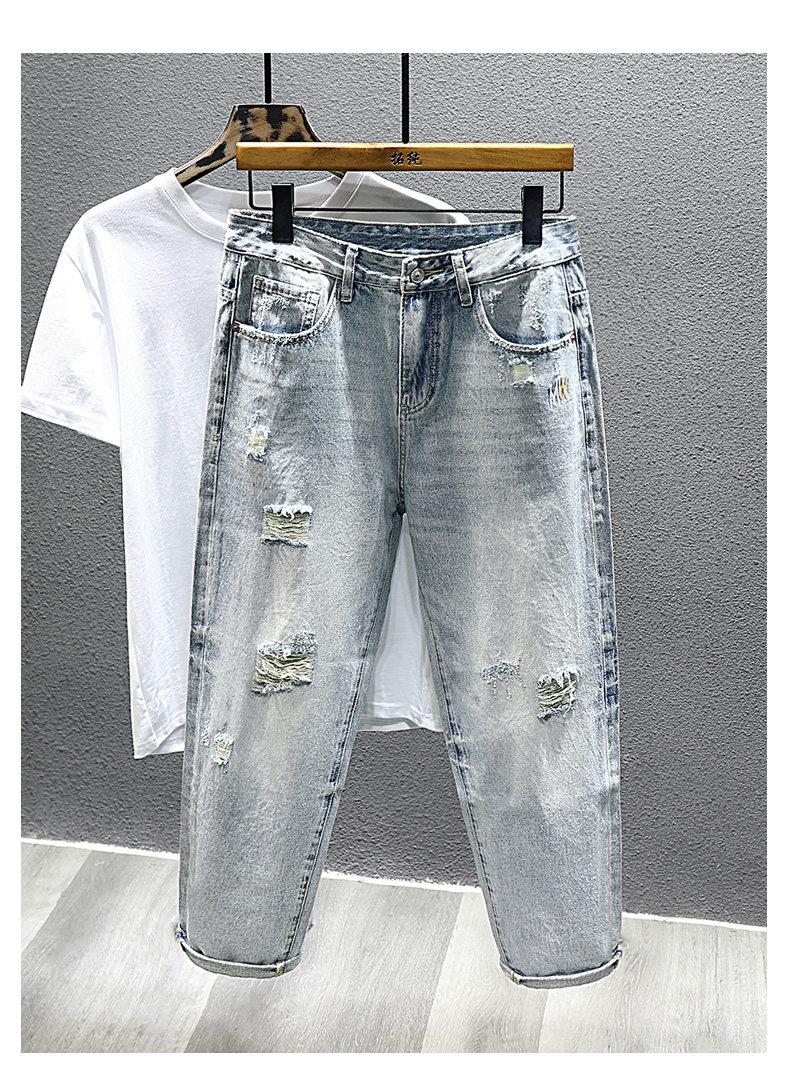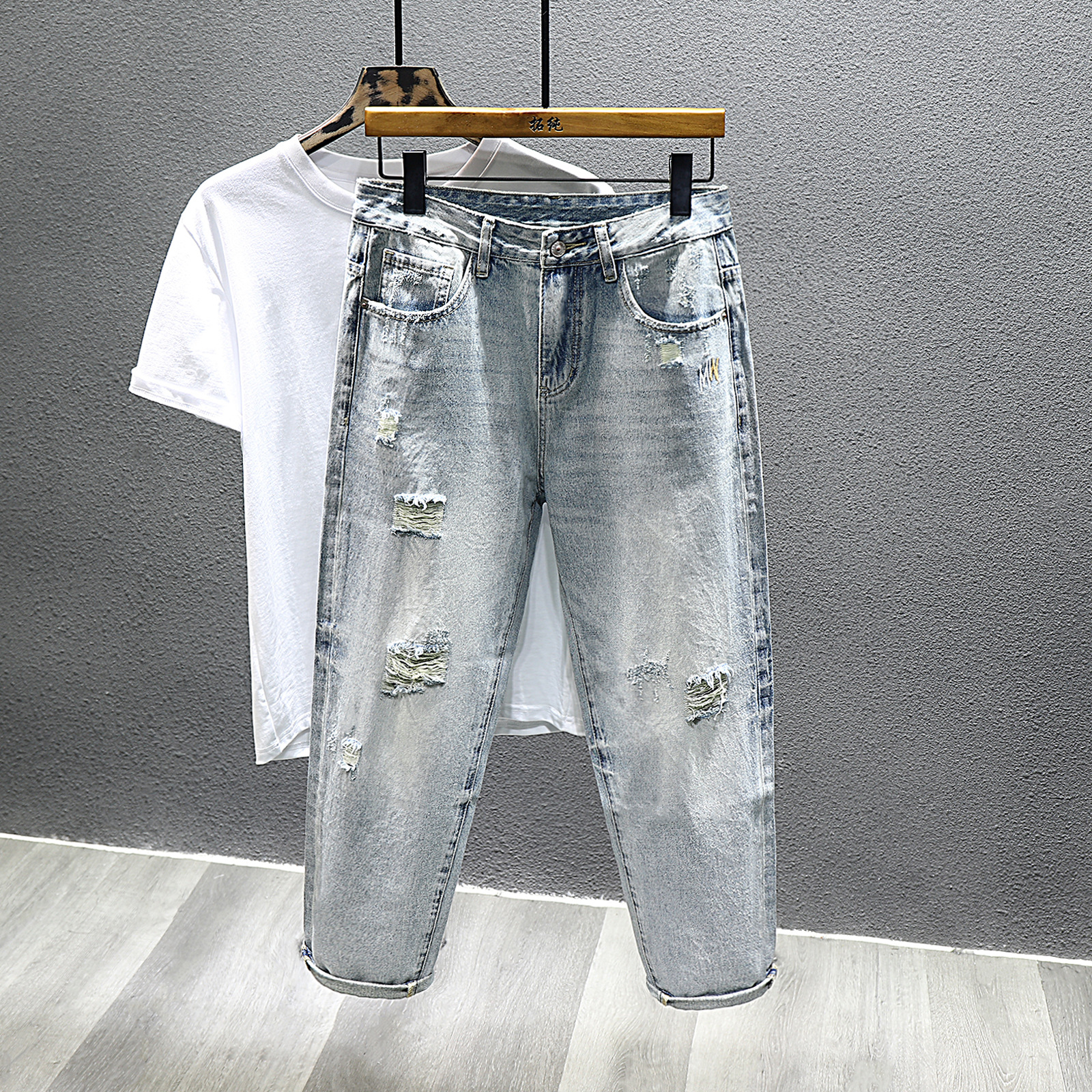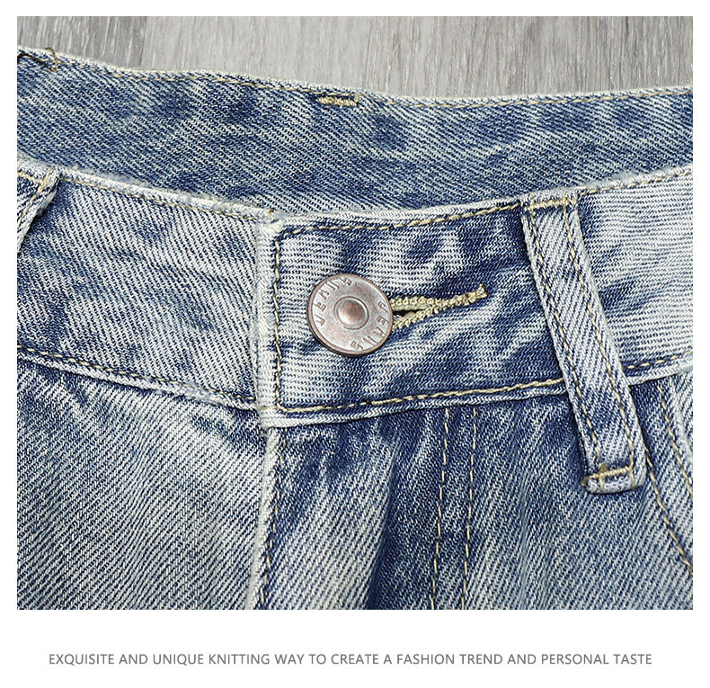 트렌디 한 브랜드 섬유 청바지 남성 찢어진 일본 스타일 2025 봄 여름 빛 컬러 트렌디 하이 스트리트 레트로 루즈 청바지 남성스토어 가기