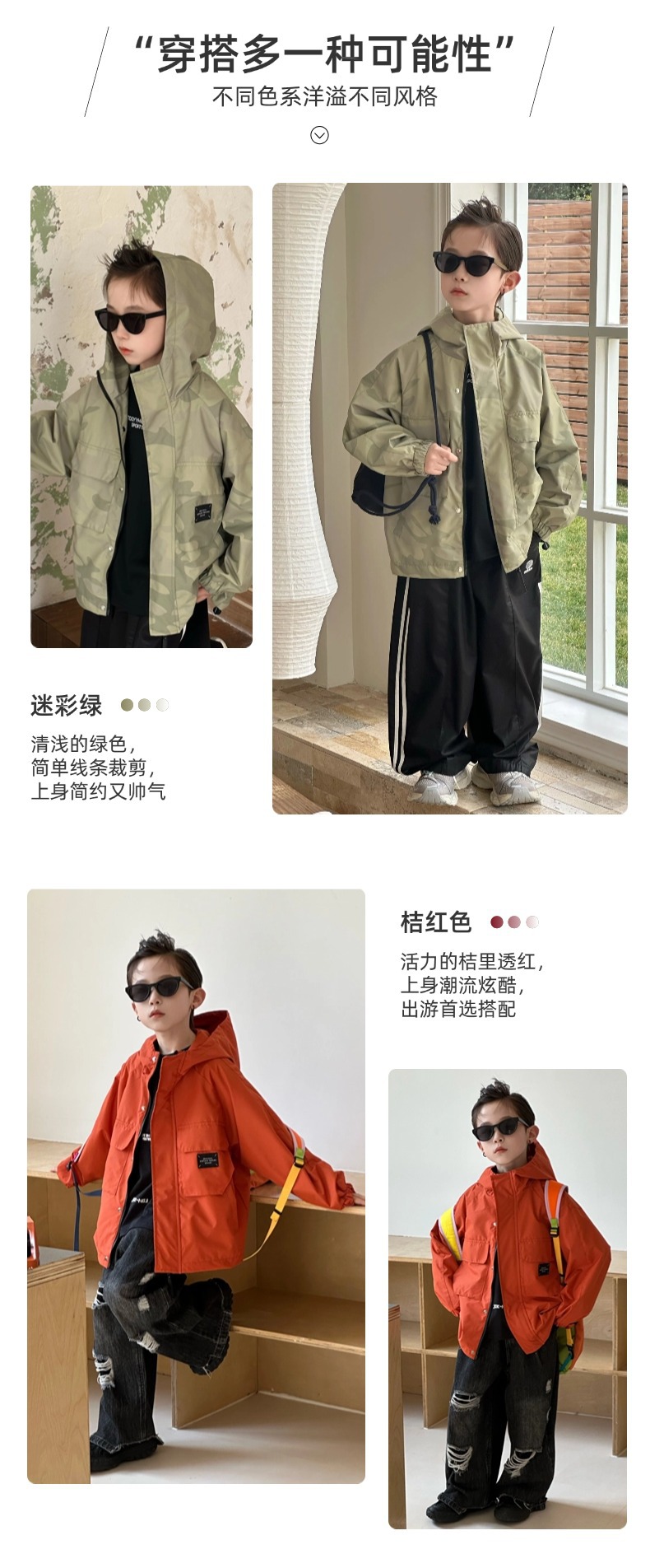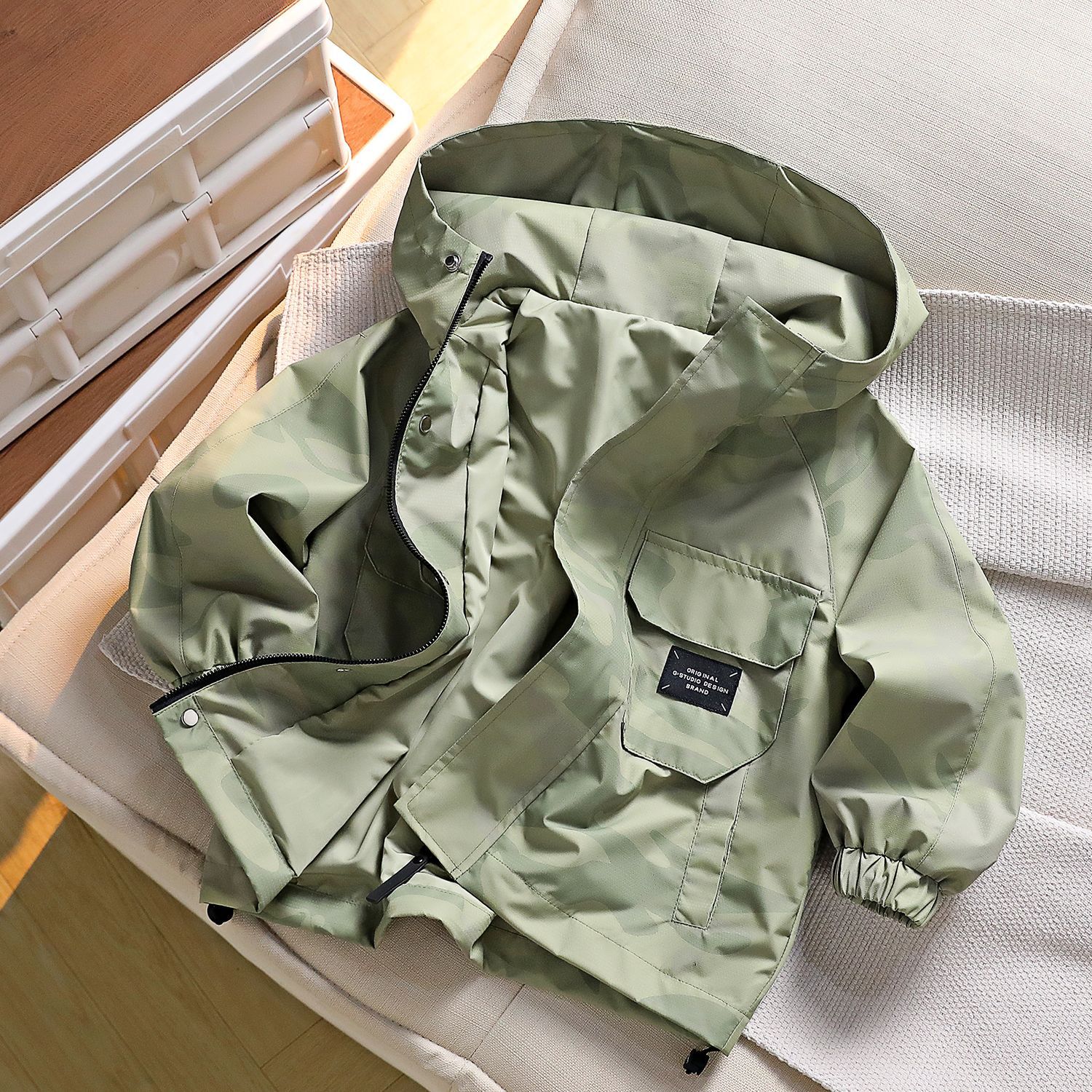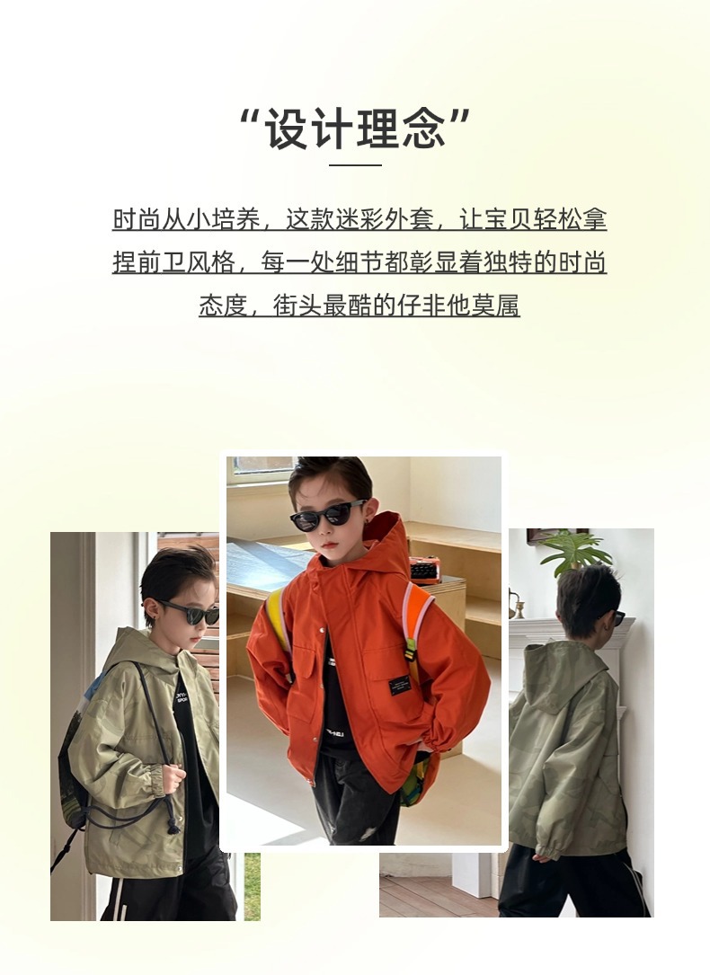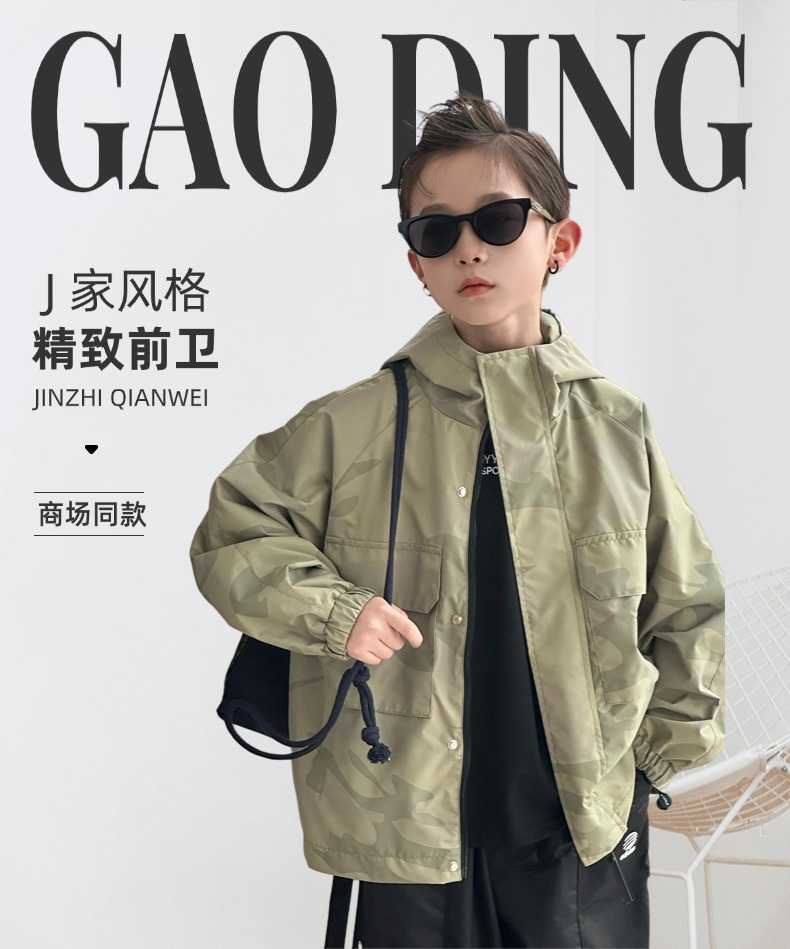 남아용 봄철 카모플라주 후드 윈드브레이커, 중대형 어린이용 2025 봄 아동용 삼중 방수 재킷, 방수 기능스토어 가기