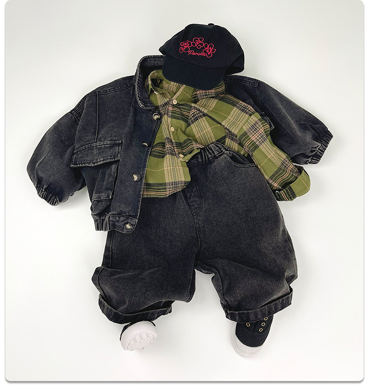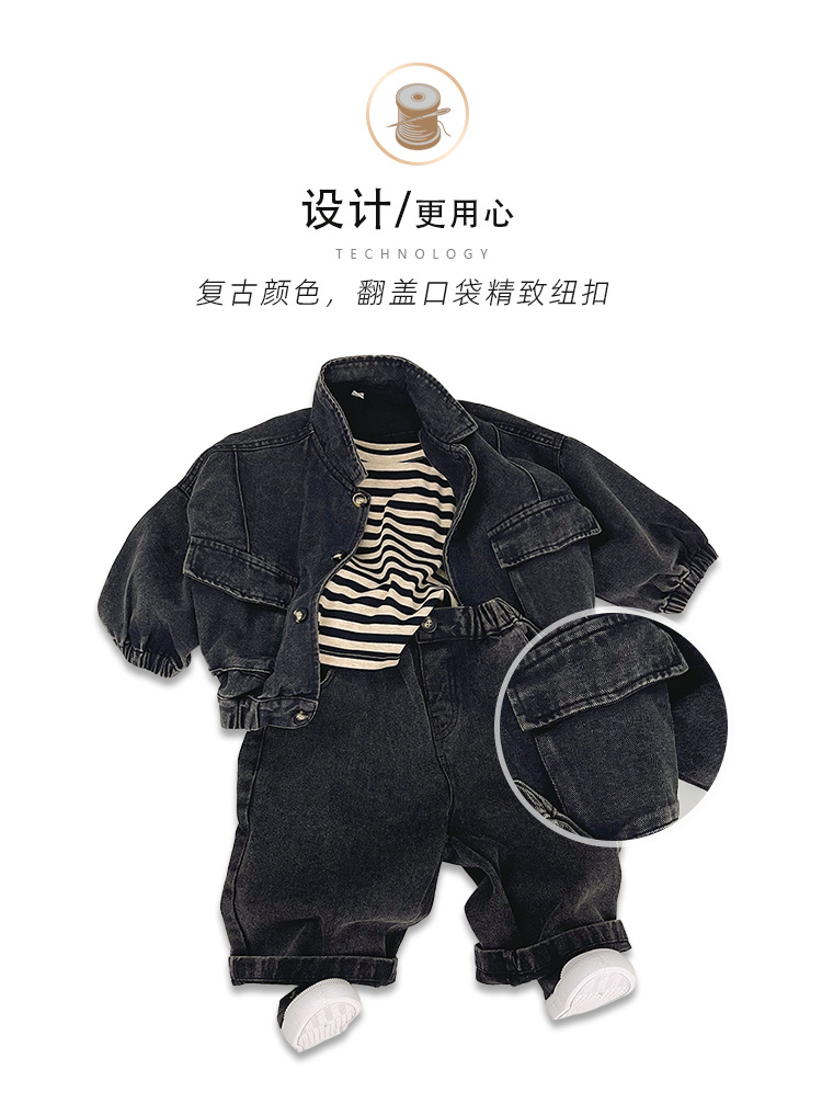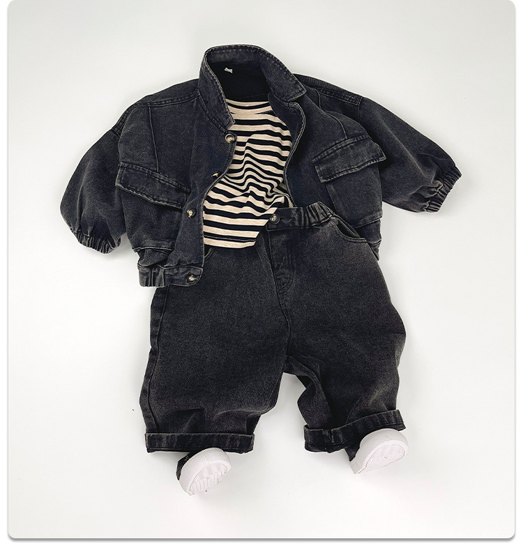 봄과 가을 레트로 멋진 잘 생긴 어린이 데님 코트 서양식 남성과 여성의 트렌디 한 보물 느슨한 탑 카디건 아동복 청바지스토어 가기