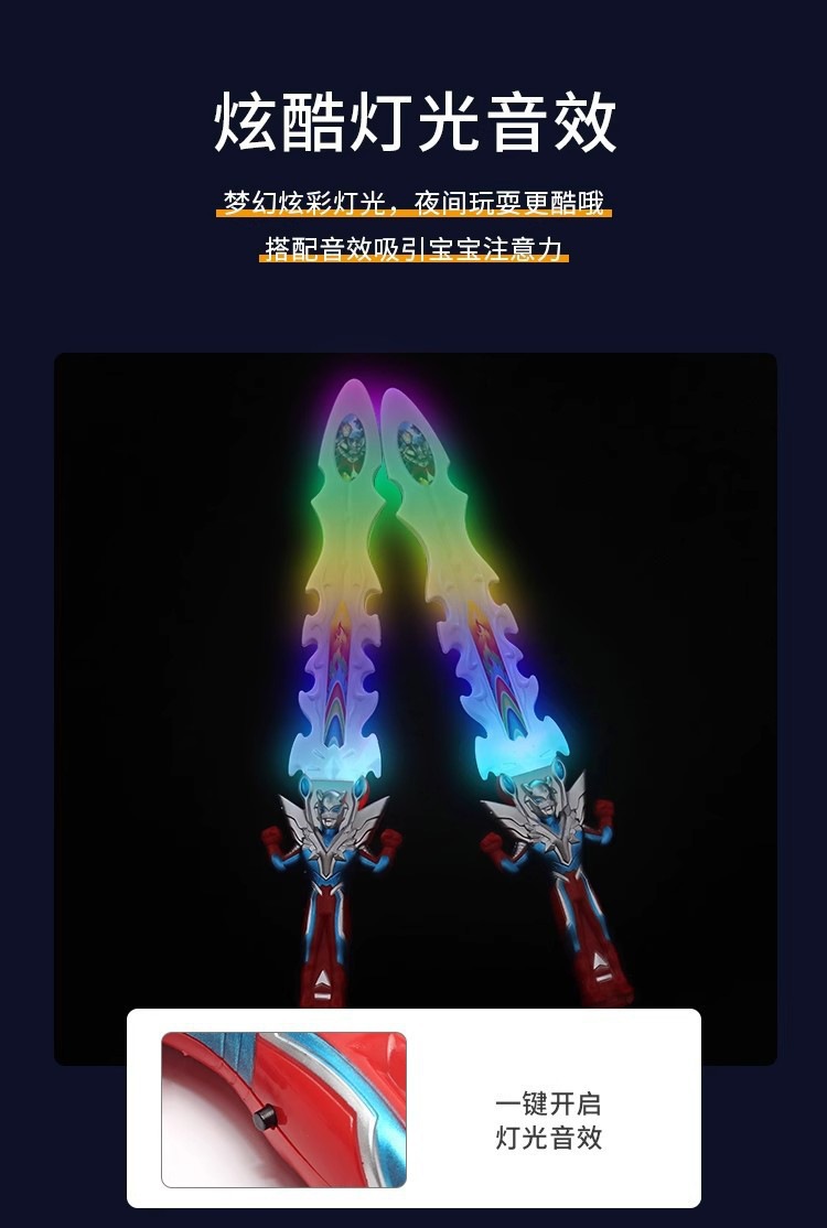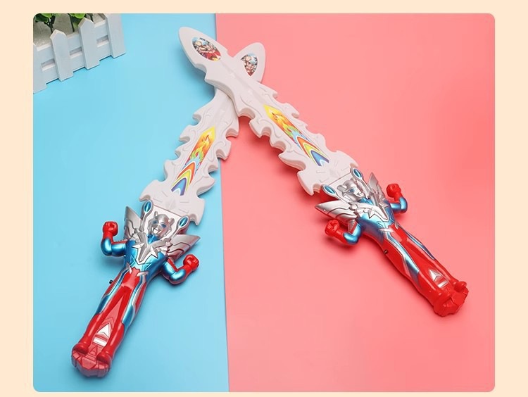 국경 간 어린이 전기 조명 음악 검 국가 조수 무기 슈퍼맨 검 장난감 빛나는 장난감 마구간 도매