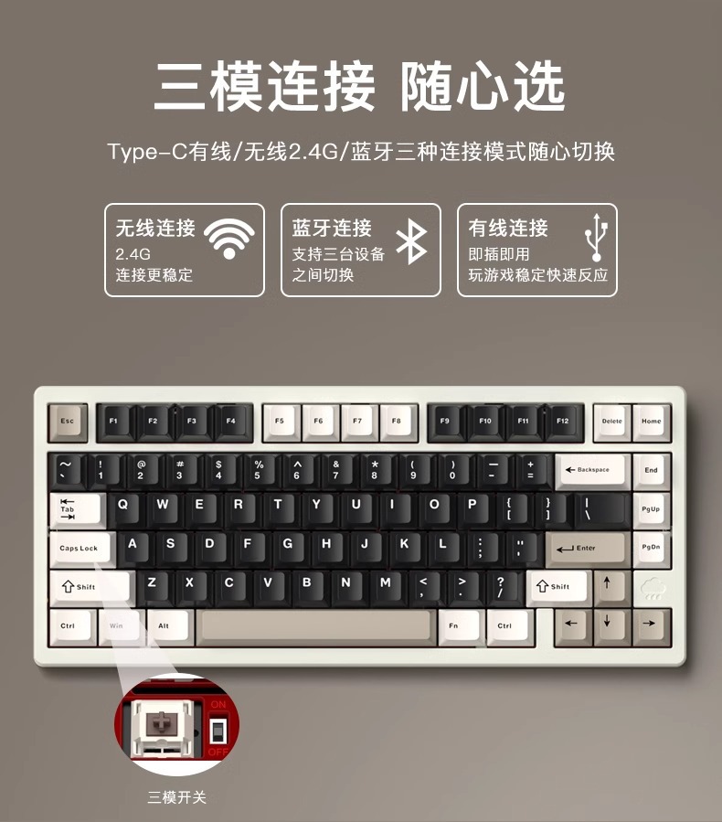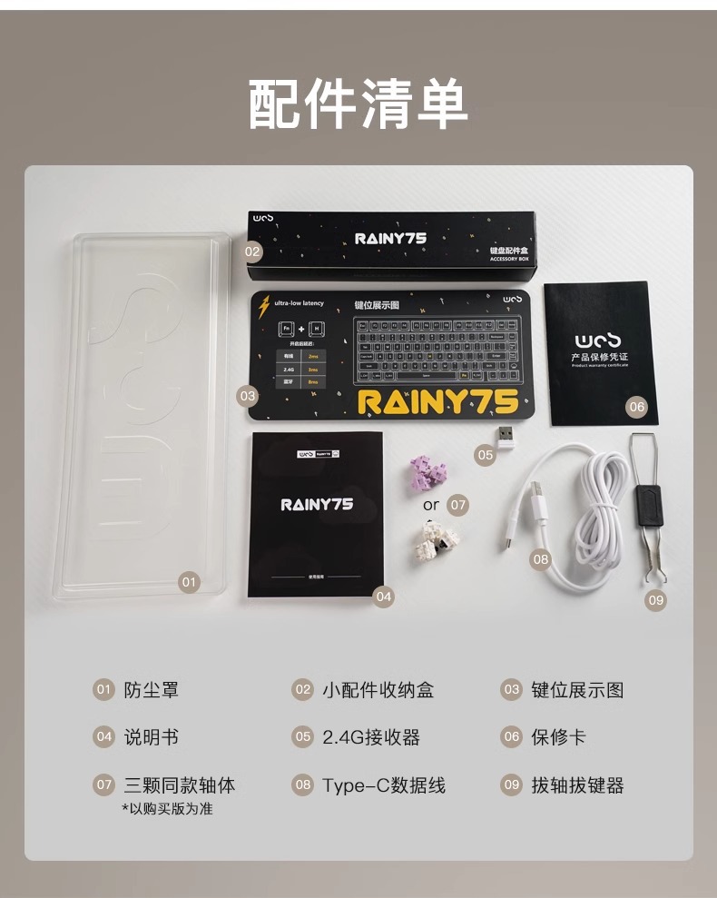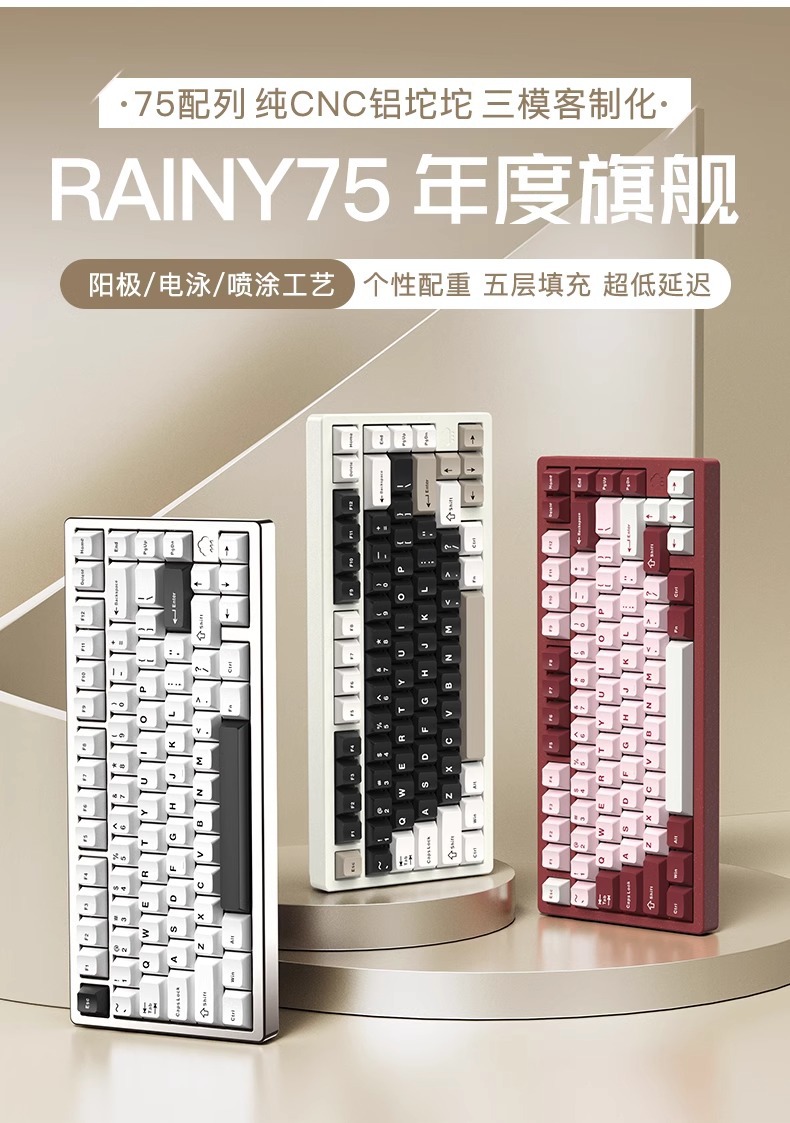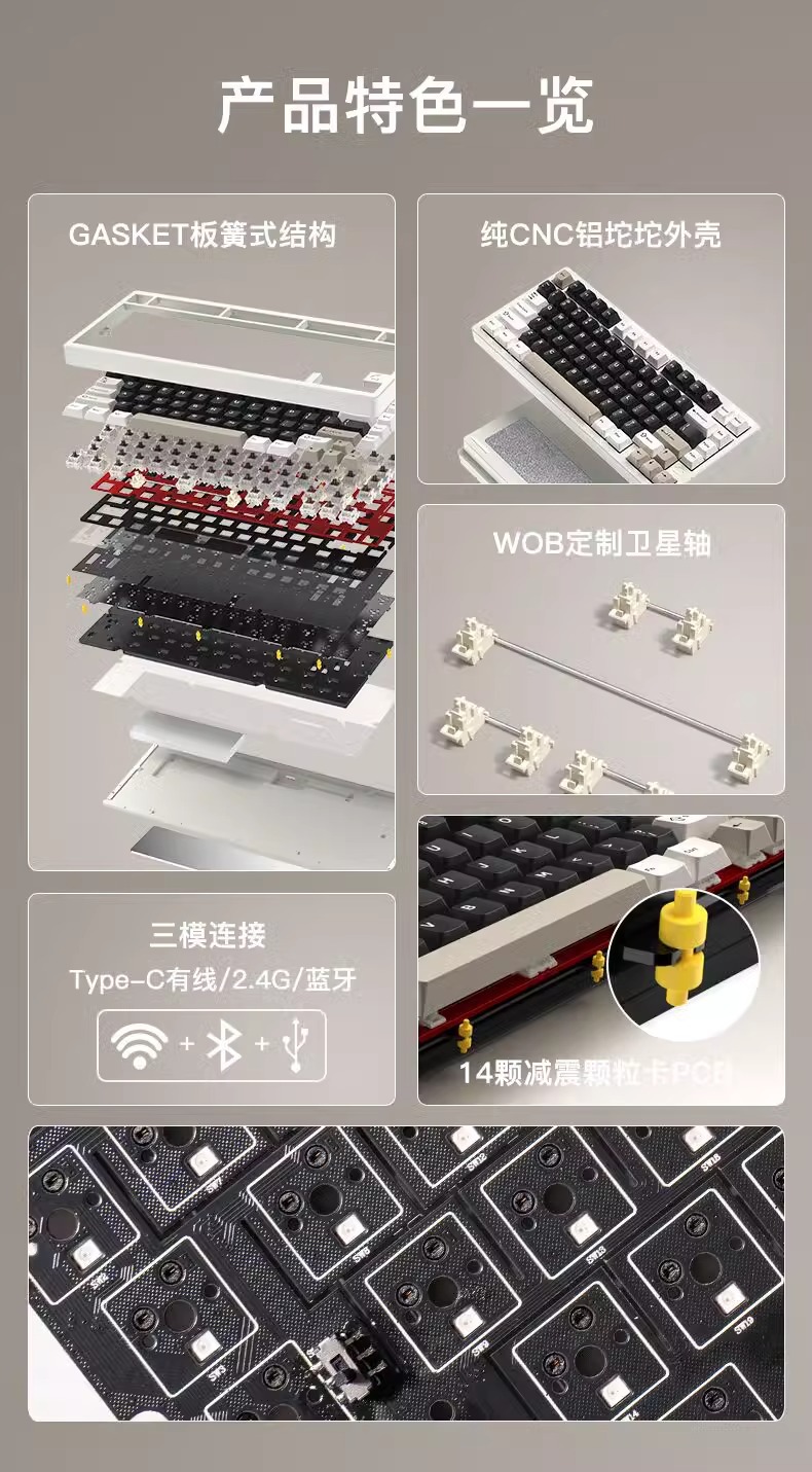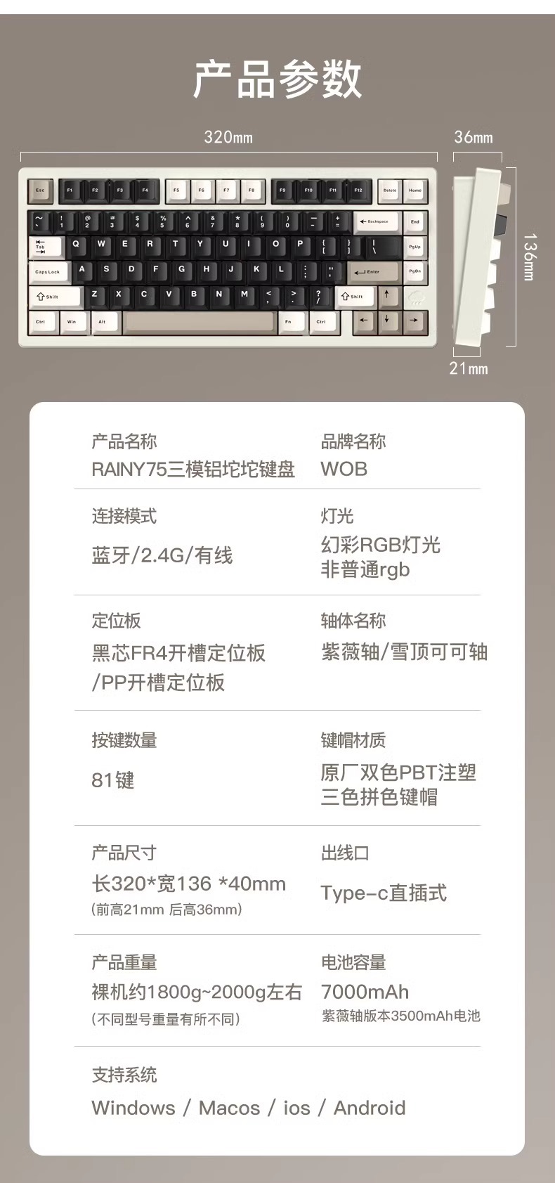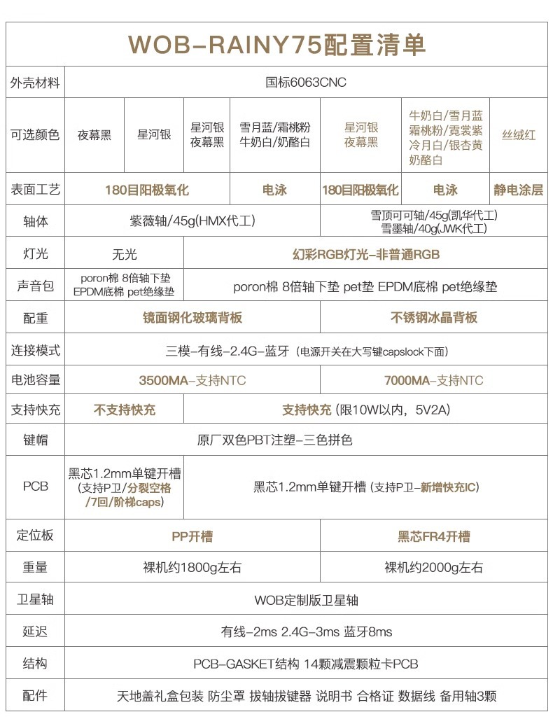WOB RAINY75 비 75 맞춤형 기계 키보드 알루미늄 Tuo RGB 무선 3 모드 가스 켓 구조