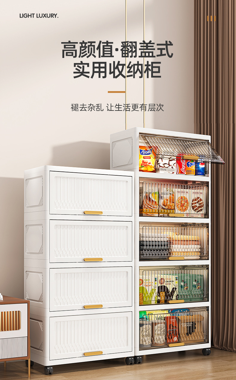 맞춤형 설치가 필요 없는 접이식 보관함 보관 캐비닛 플립 스낵 보관 캐비닛 가정용 침실 의류 방진