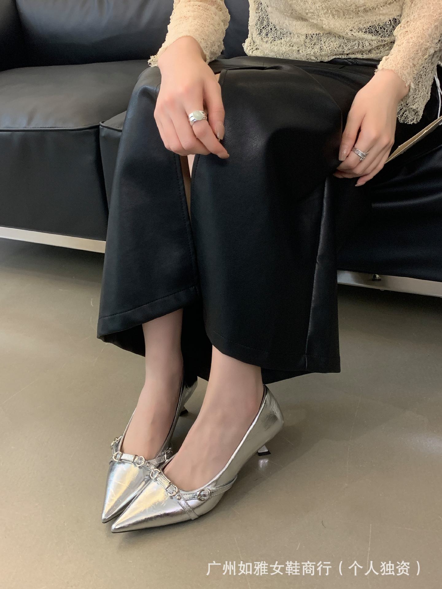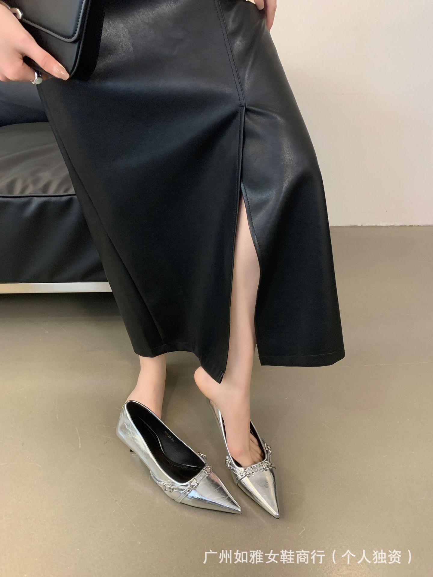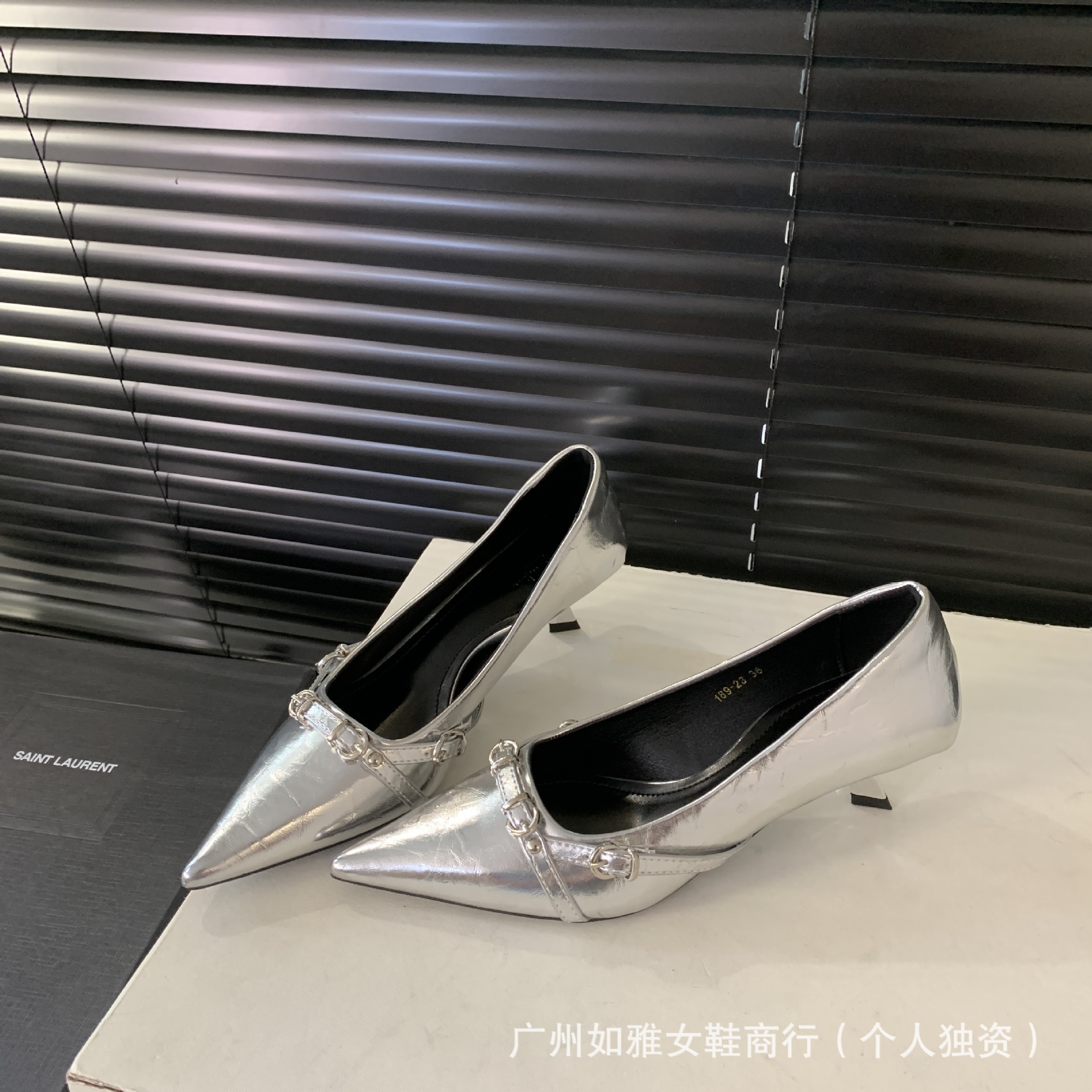 프렌치 스타일의 아름다운 실버 펌프스 여성용 슈즈, 슬립온, 다용도 통근 하이힐스토어 가기