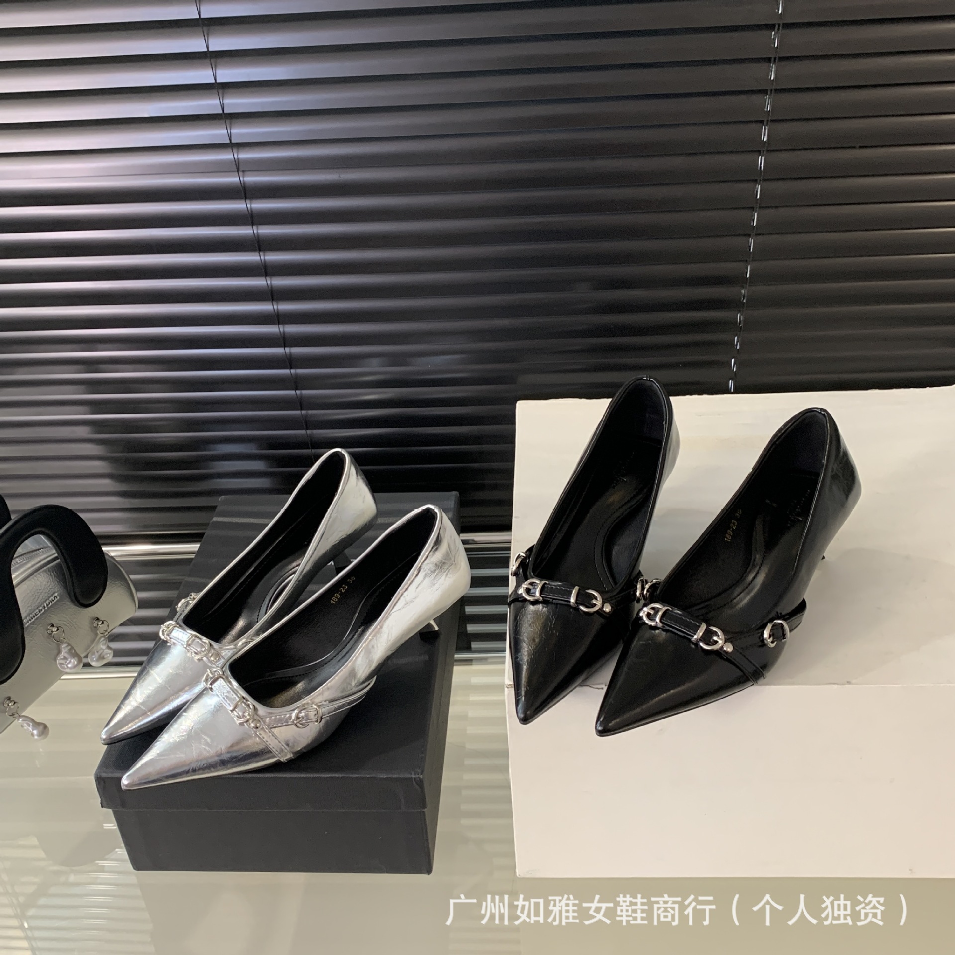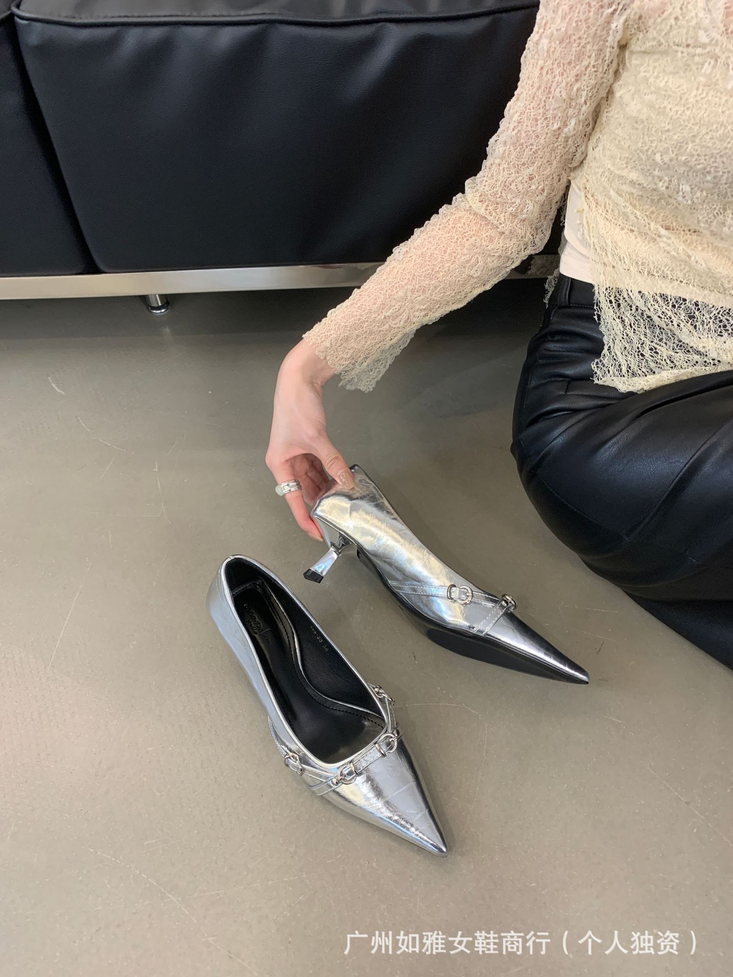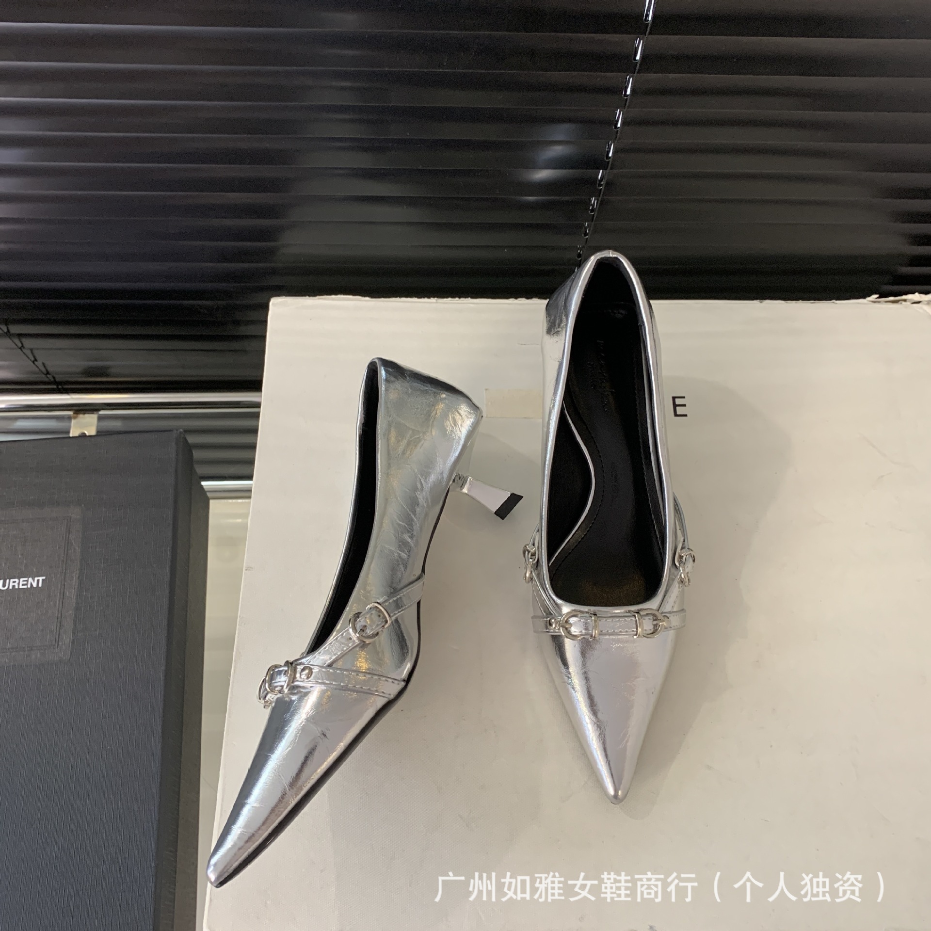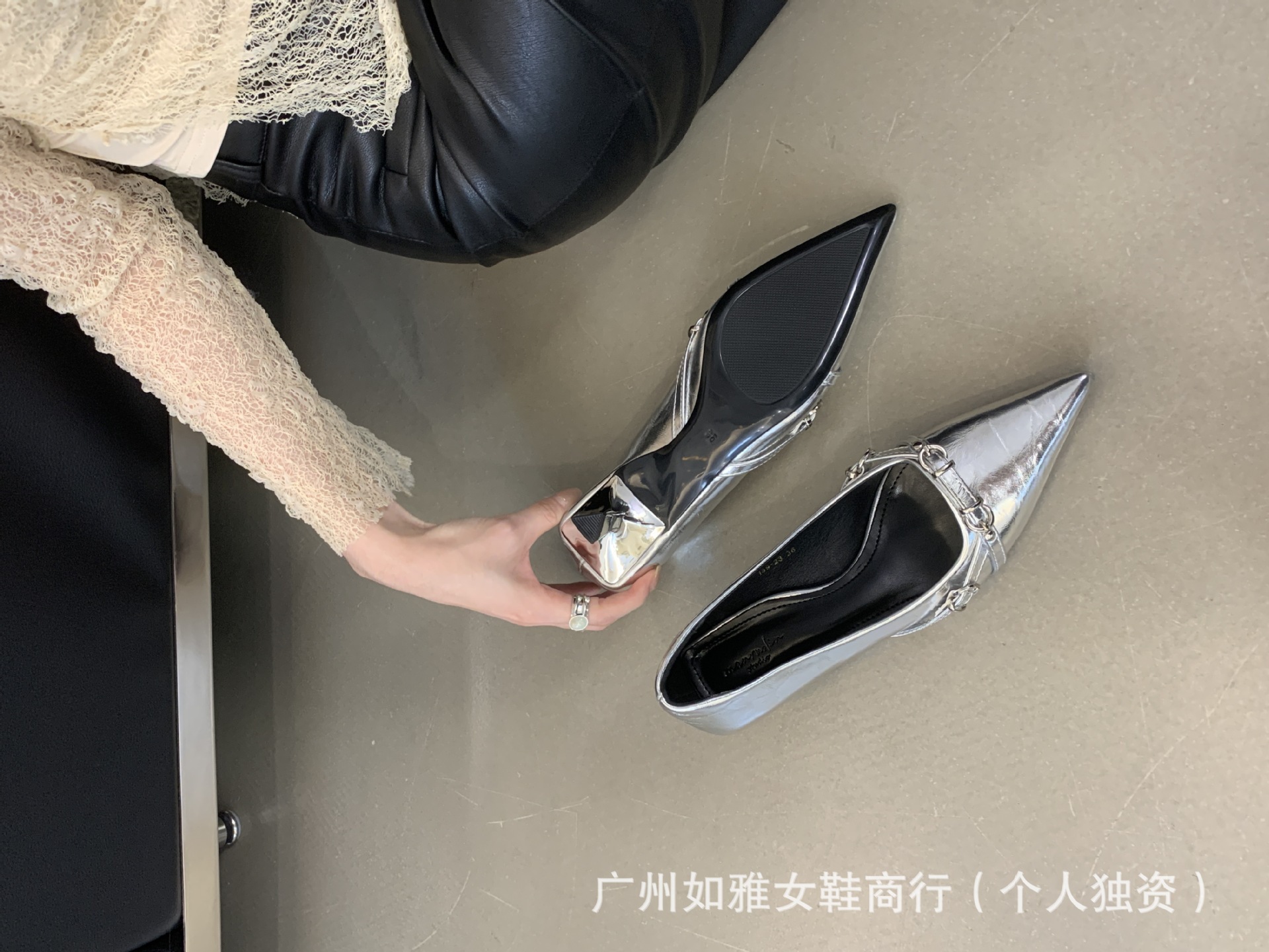 프렌치 스타일의 아름다운 실버 펌프스 여성용 슈즈, 슬립온, 다용도 통근 하이힐스토어 가기