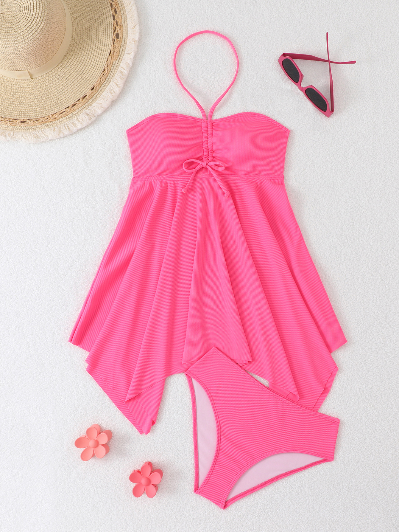 2025 국경 간 스커트 분할 수영복 솔리드 컬러 Tanini 보수당 벨리 슬리밍 유럽과 미국의 대외 무역 수영복 아마존