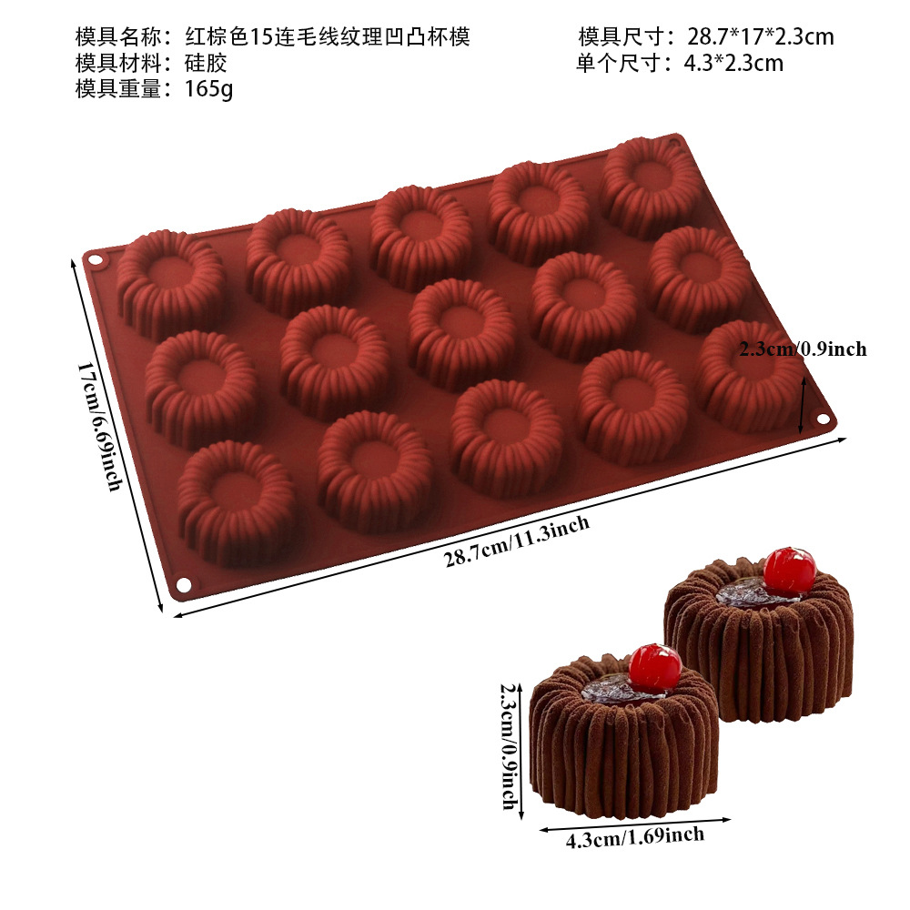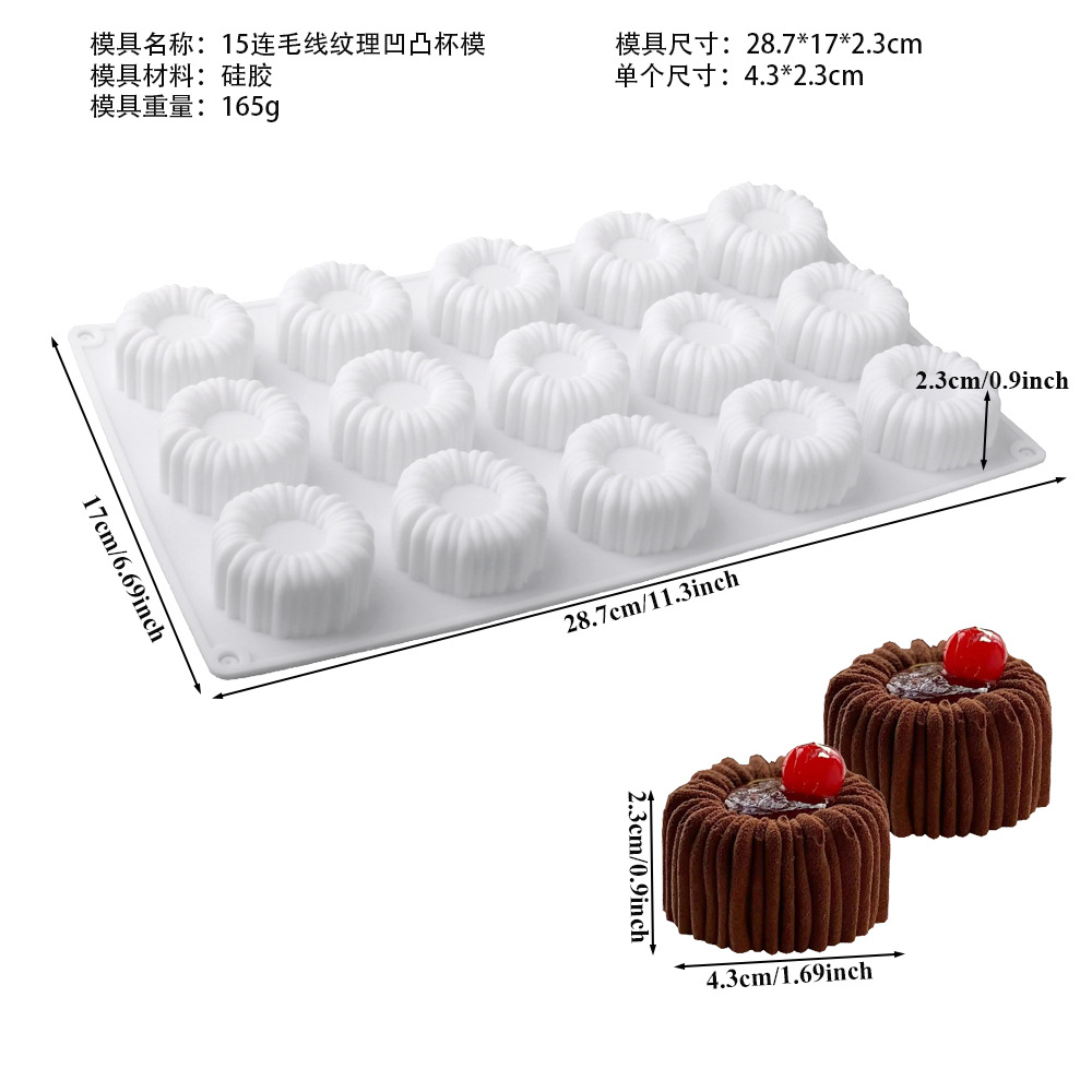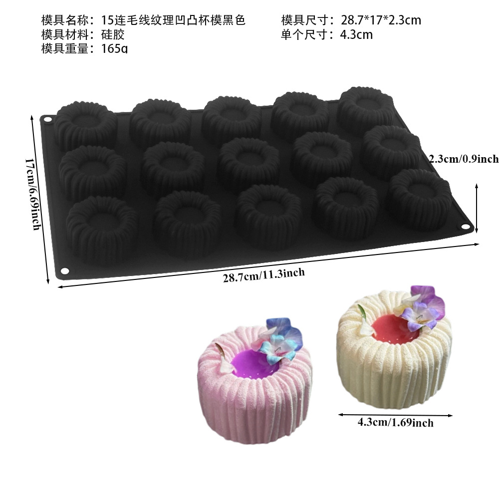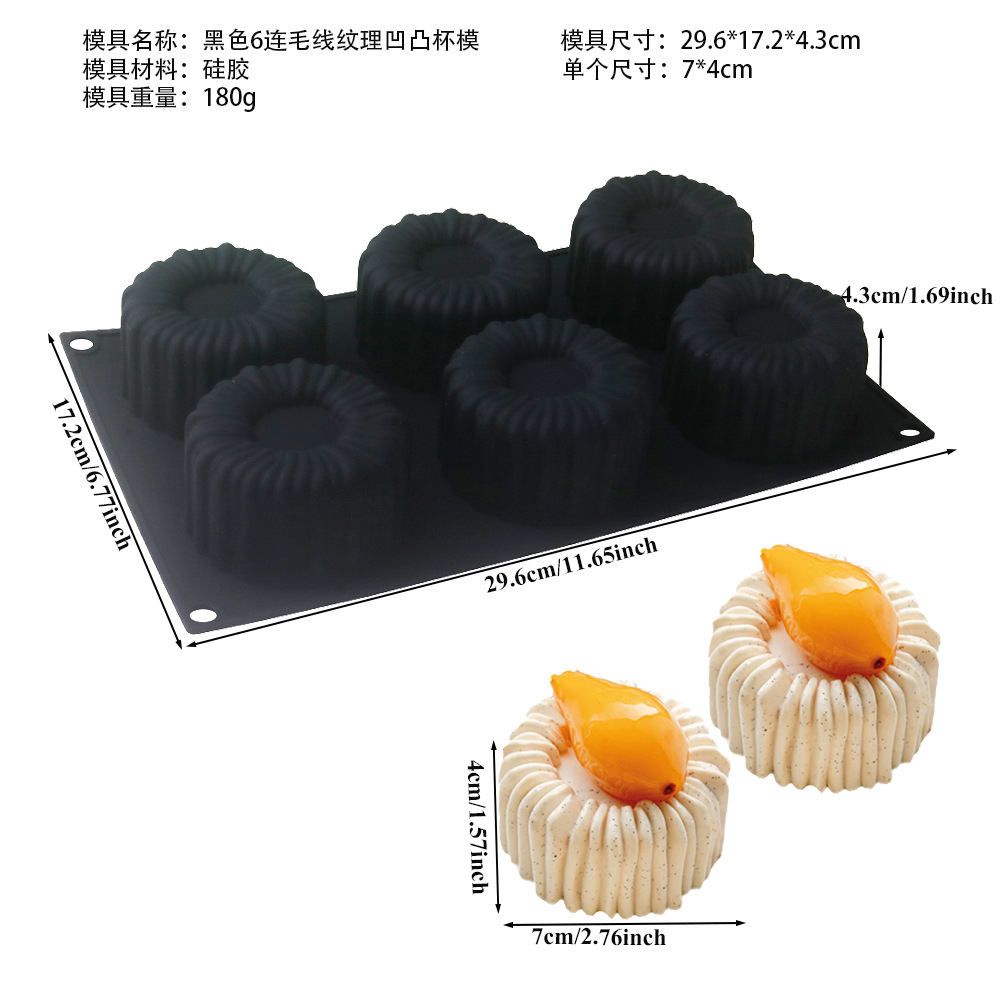 Shenhong 6 양모 질감 라운드 그루브 프랑스 디저트 무스 케이크 실리콘 금형 샬롯 초콜릿