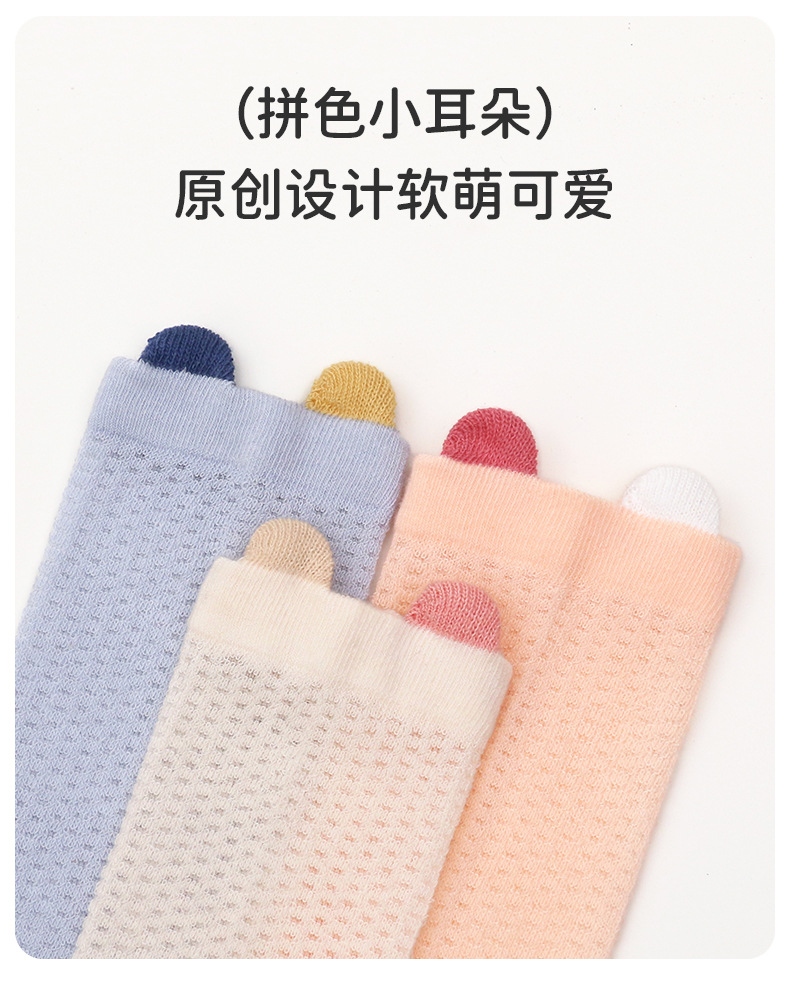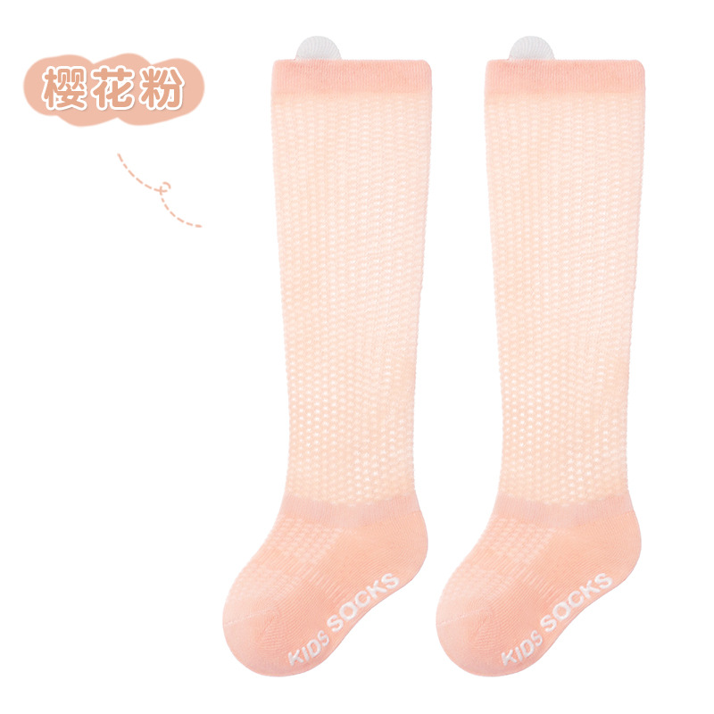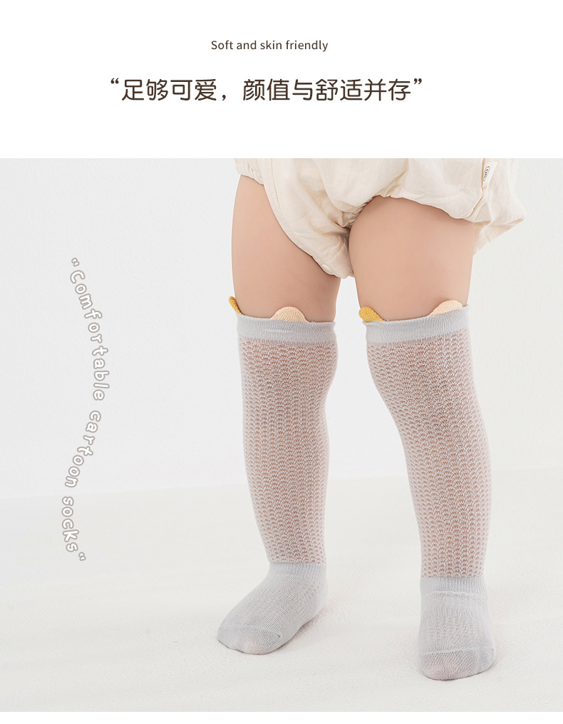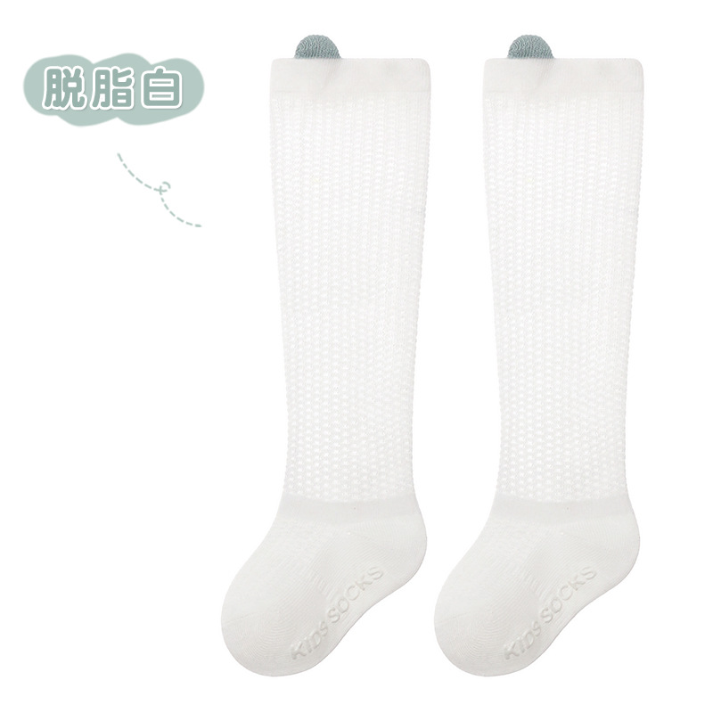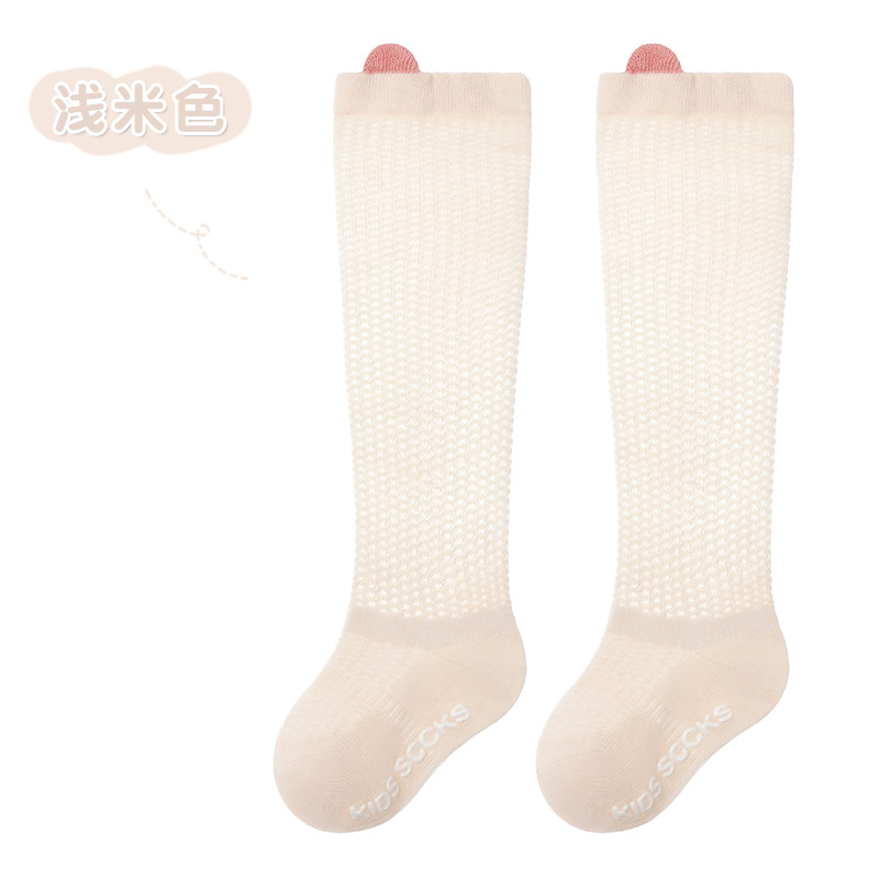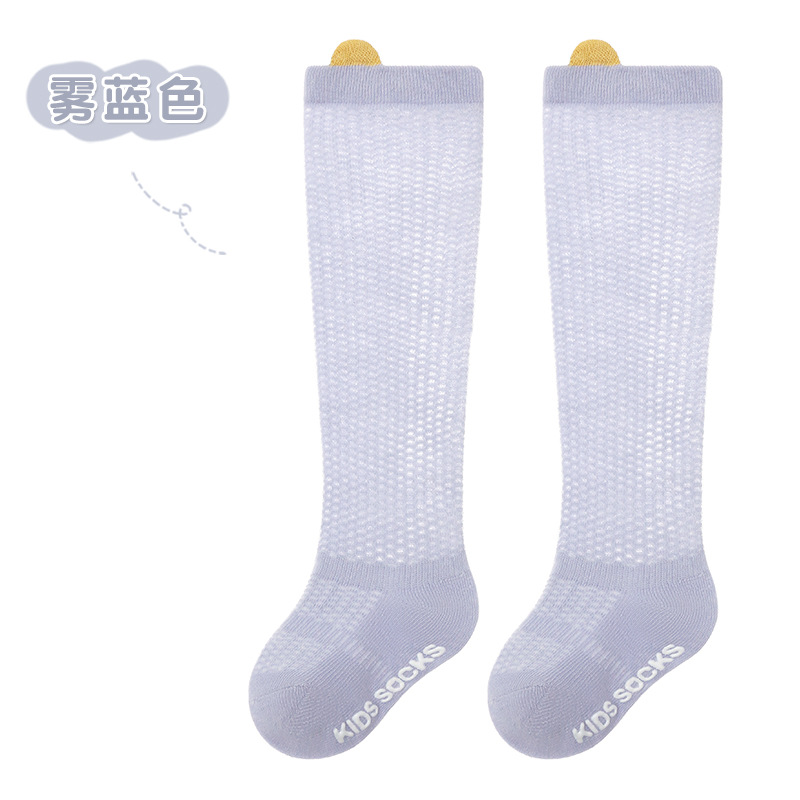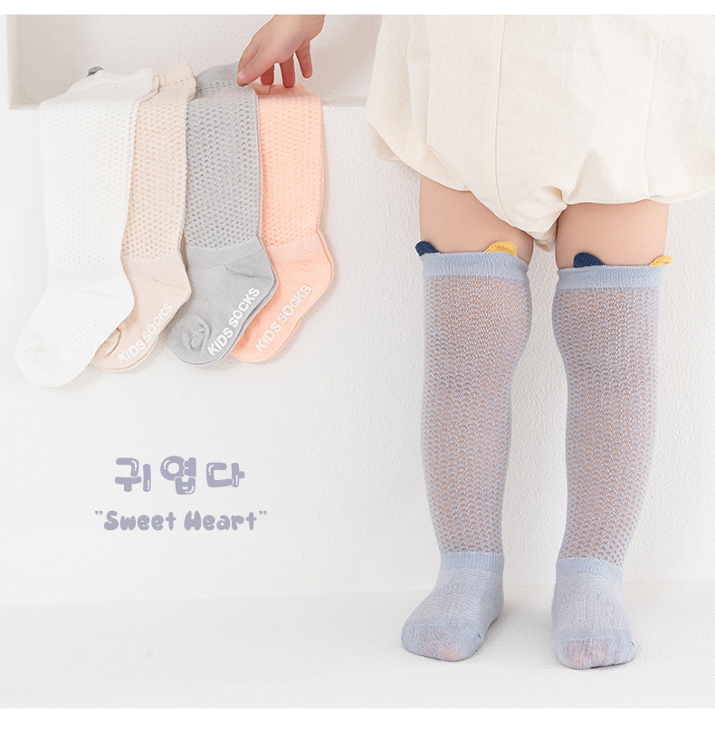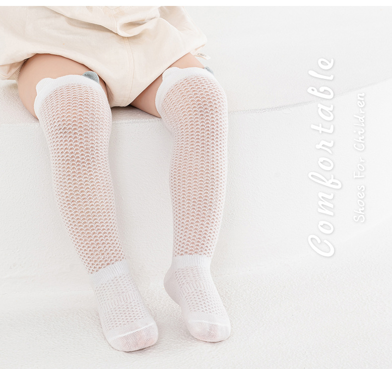 얇은 면 소재의 심플한 입체 메쉬 아기 무릎 위 양말, 영유아용 하이탑 미끄럼 방지 양말, 작은 귀 모양 모기 방지 양말