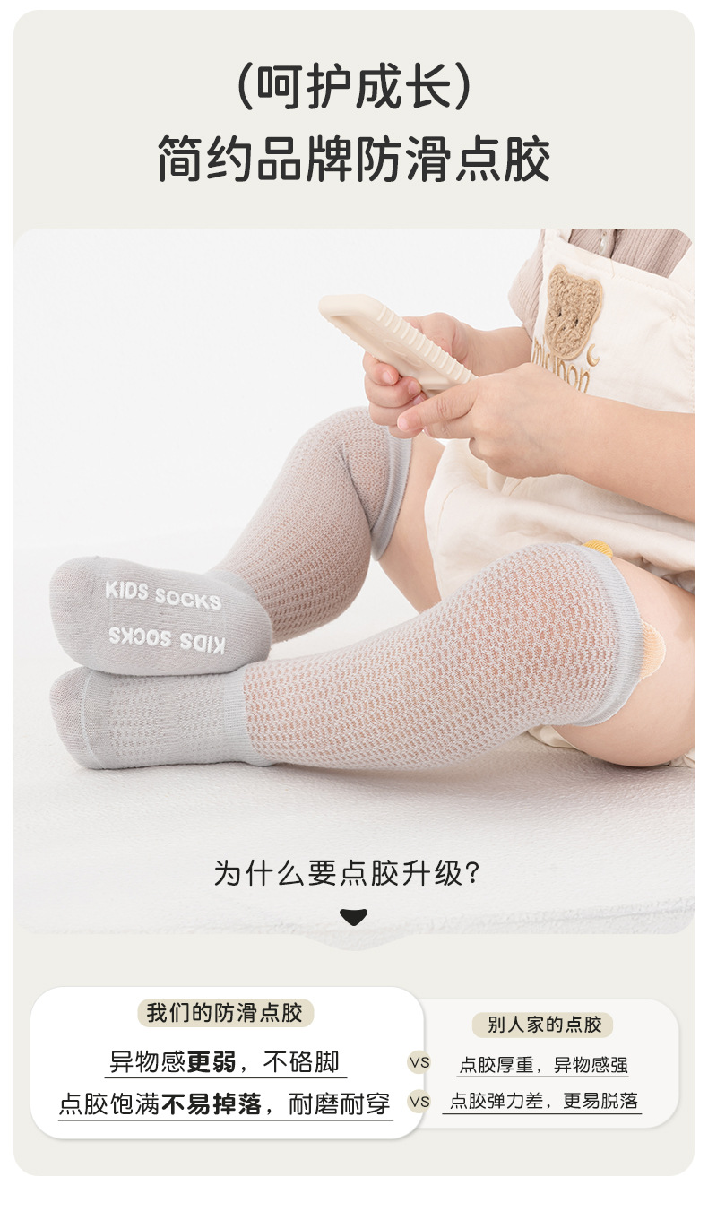얇은 면 소재의 심플한 입체 메쉬 아기 무릎 위 양말, 영유아용 하이탑 미끄럼 방지 양말, 작은 귀 모양 모기 방지 양말스토어 가기
