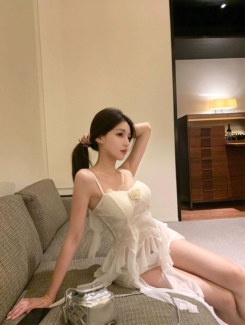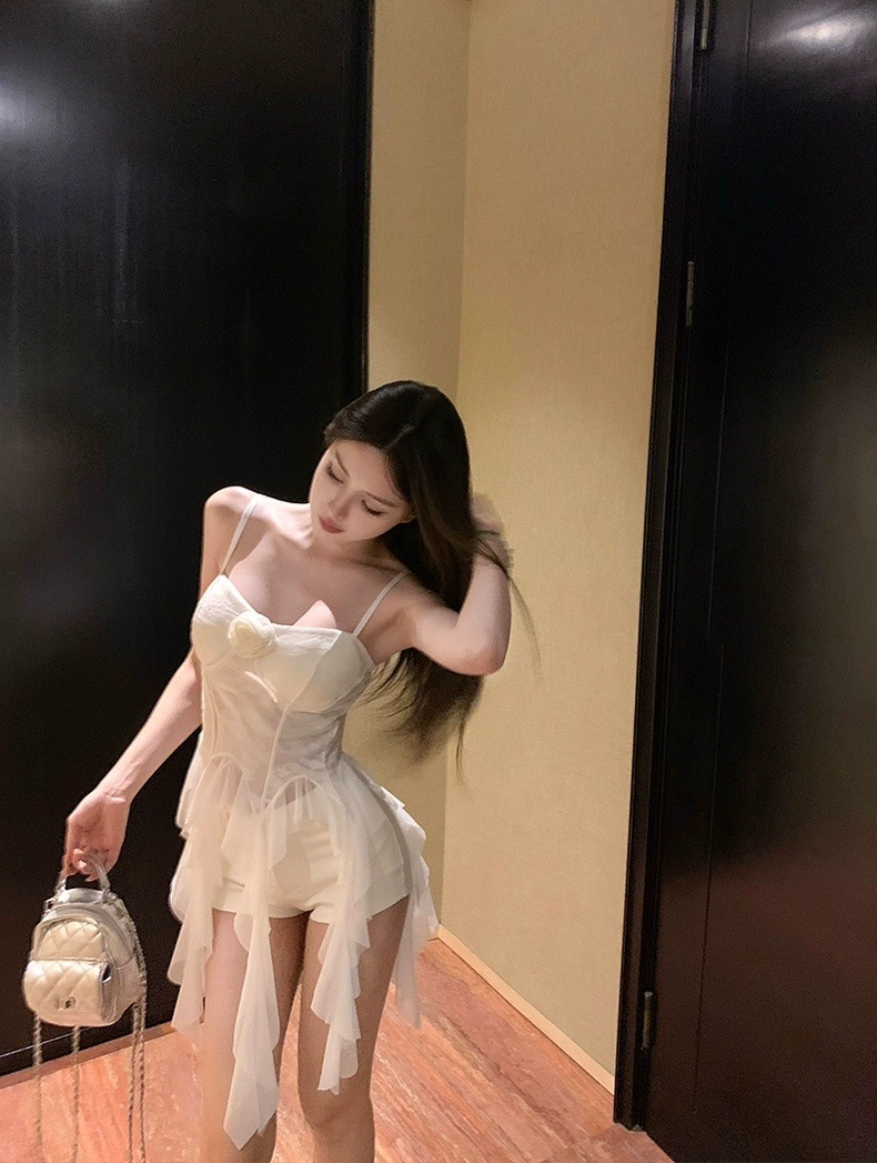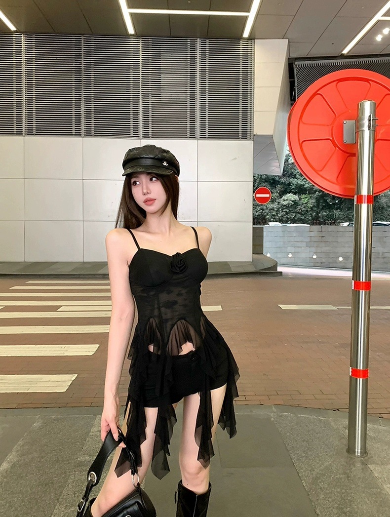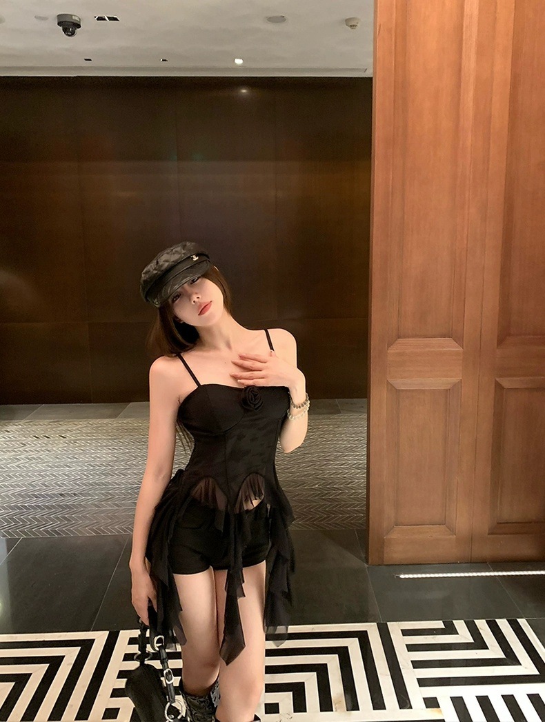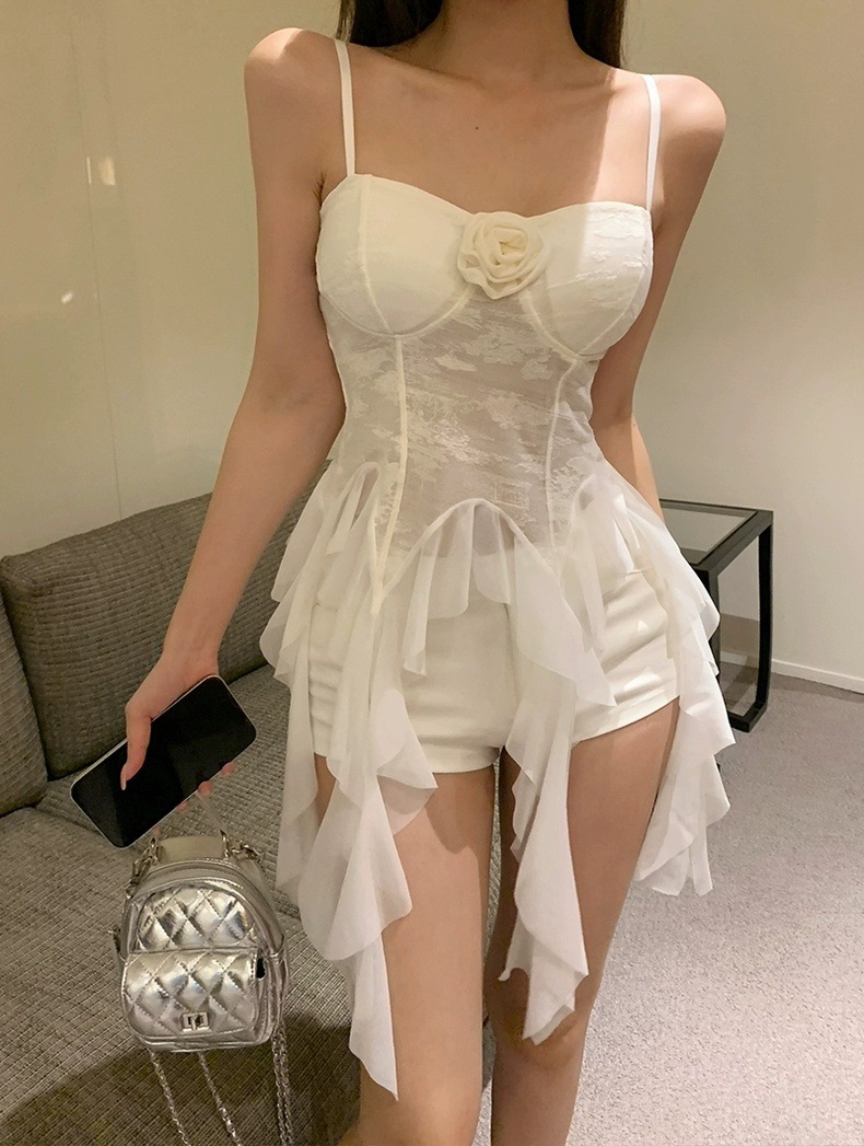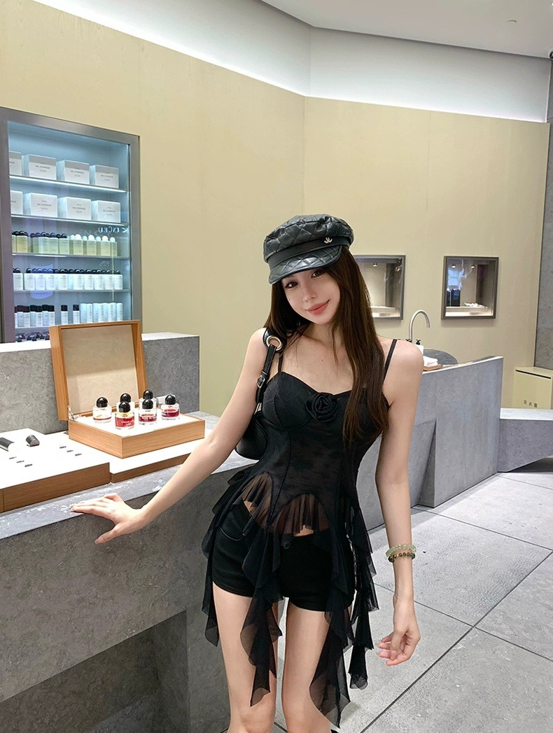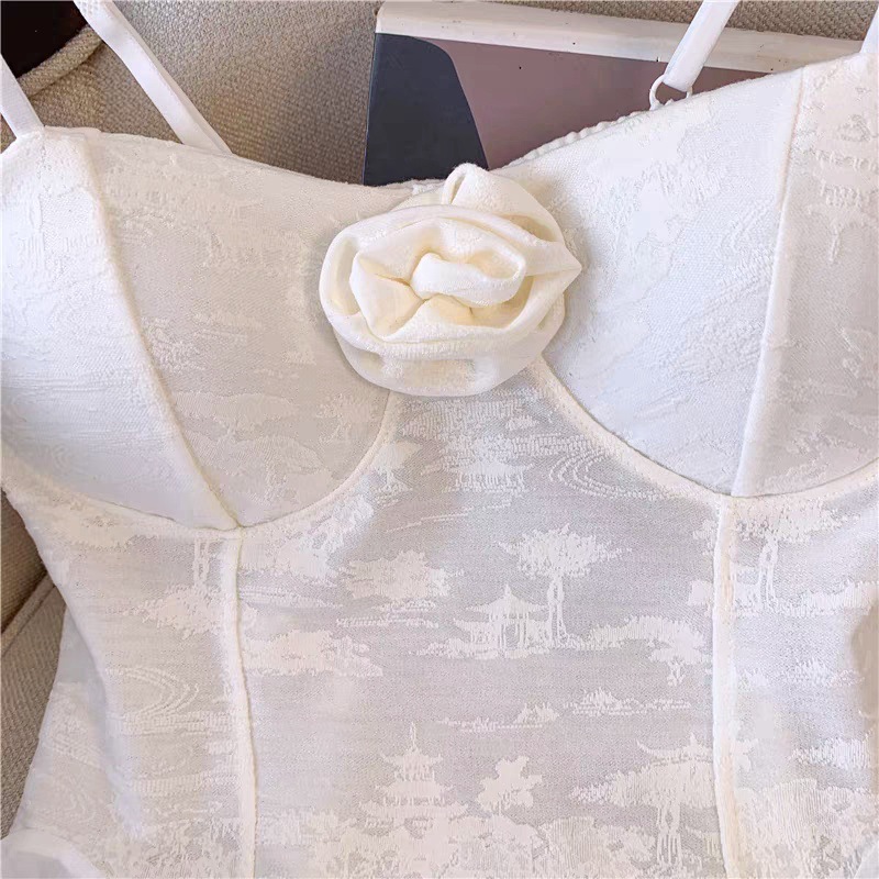 L279 가슴 패드가 있는 여성용 민소매 조끼, 새로운 스타일, 달콤한 자카드 서스펜더 리본, 틈새 시장, 독특하고 시크한 탑스토어 가기