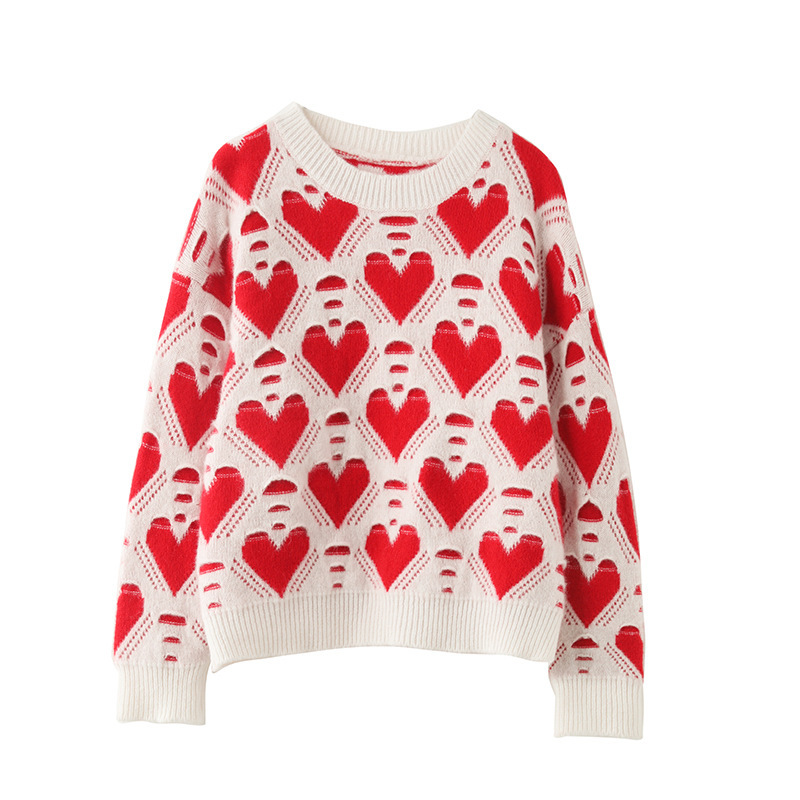 어린 이용 새로운 귀여운 느슨한 플러스 남자와 여자를위한 순수한 양모 스웨터 두꺼운 컬러 블록 사랑 자카드 Bottoming 셔츠