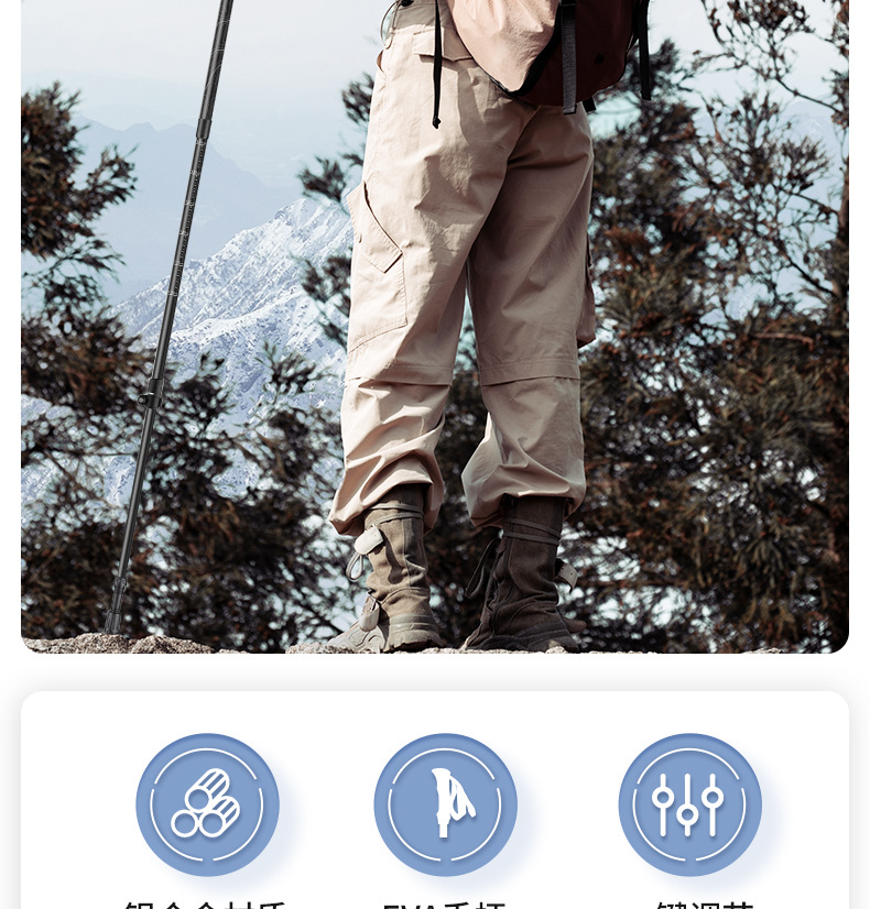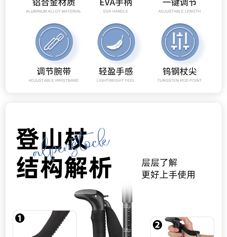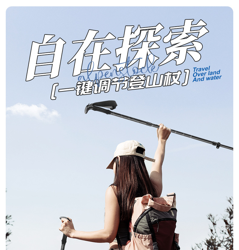 원 버튼 개폐식 야외 여행 등산 스틱 개폐식 등산 야외 목발 알루미늄 합금 하이킹 스틱 목발 스틱스토어 가기