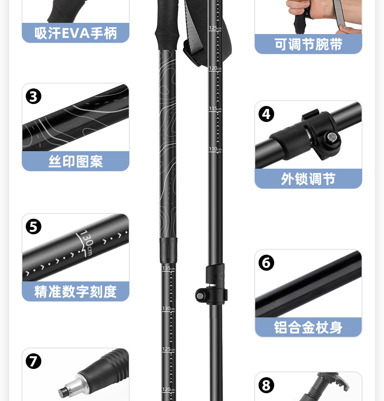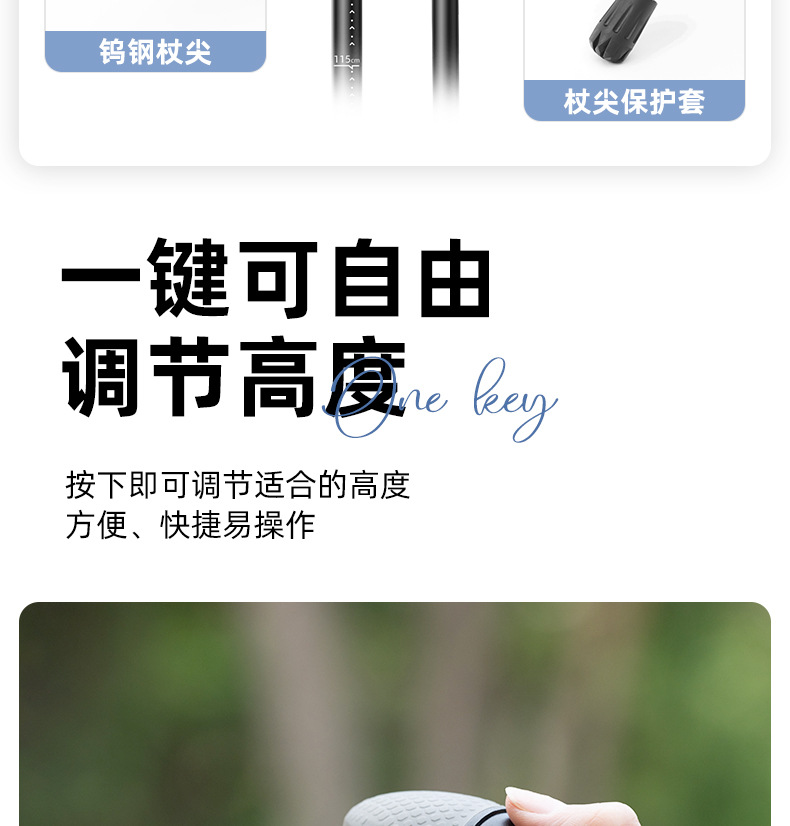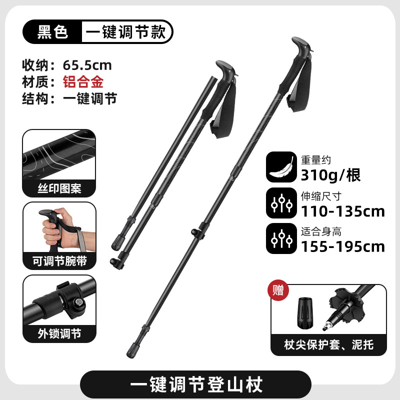 원 버튼 개폐식 야외 여행 등산 스틱 개폐식 등산 야외 목발 알루미늄 합금 하이킹 스틱 목발 스틱