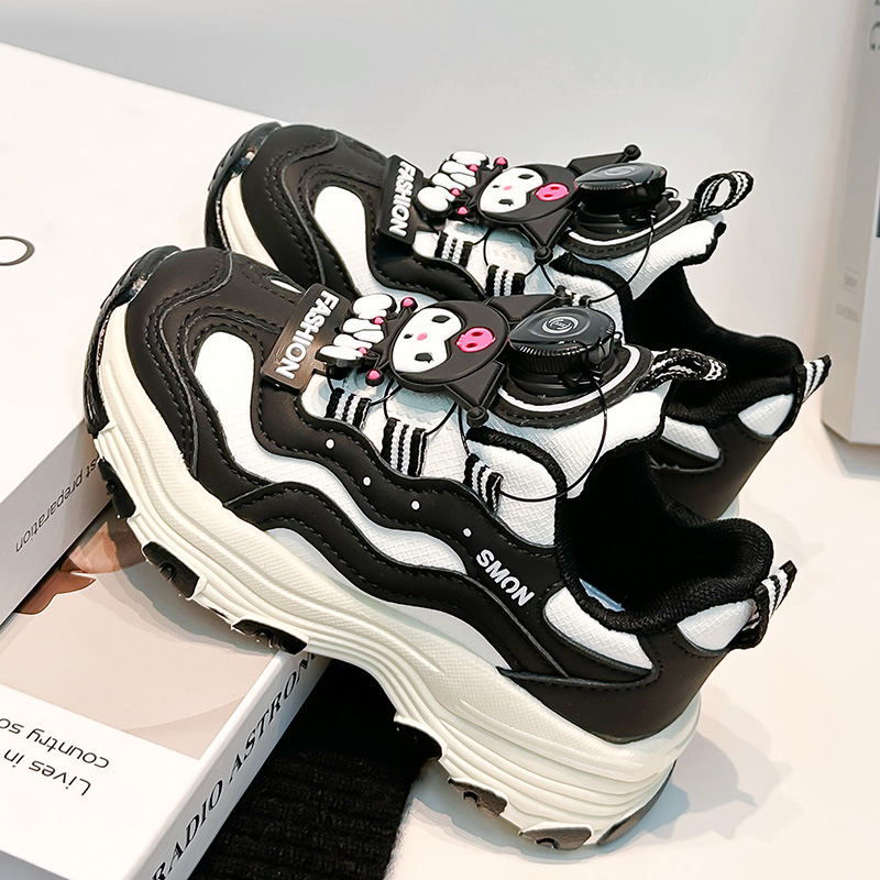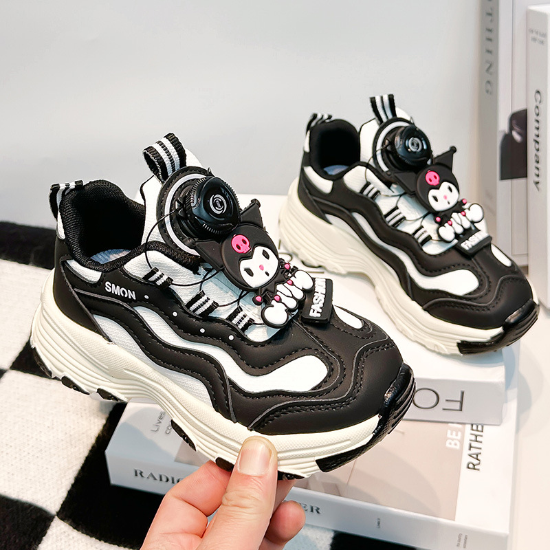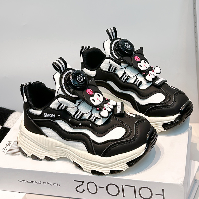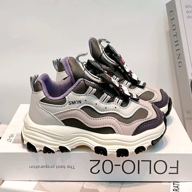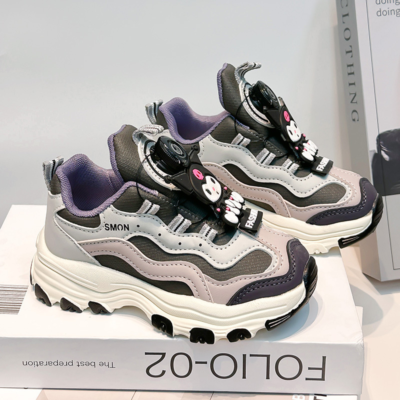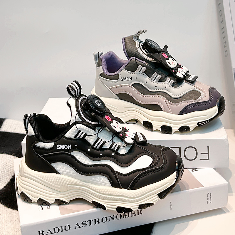 소녀 쿨로 미 싱글 운동화 봄 2025 큰 아이들을위한 새로운 미끄럼 방지 버튼 신발 패션 올 매치 트렌디