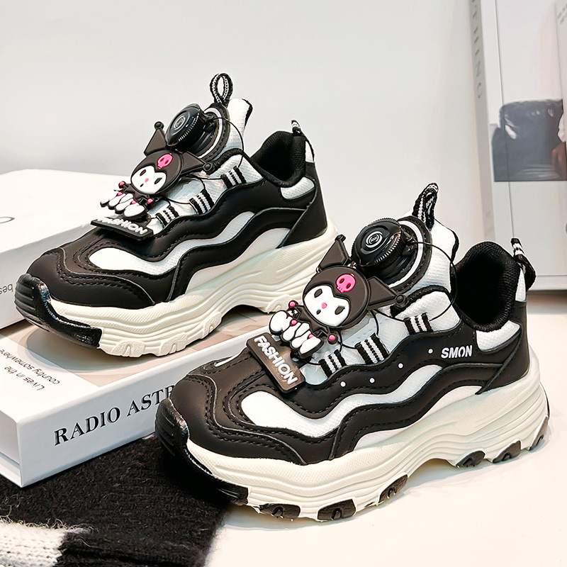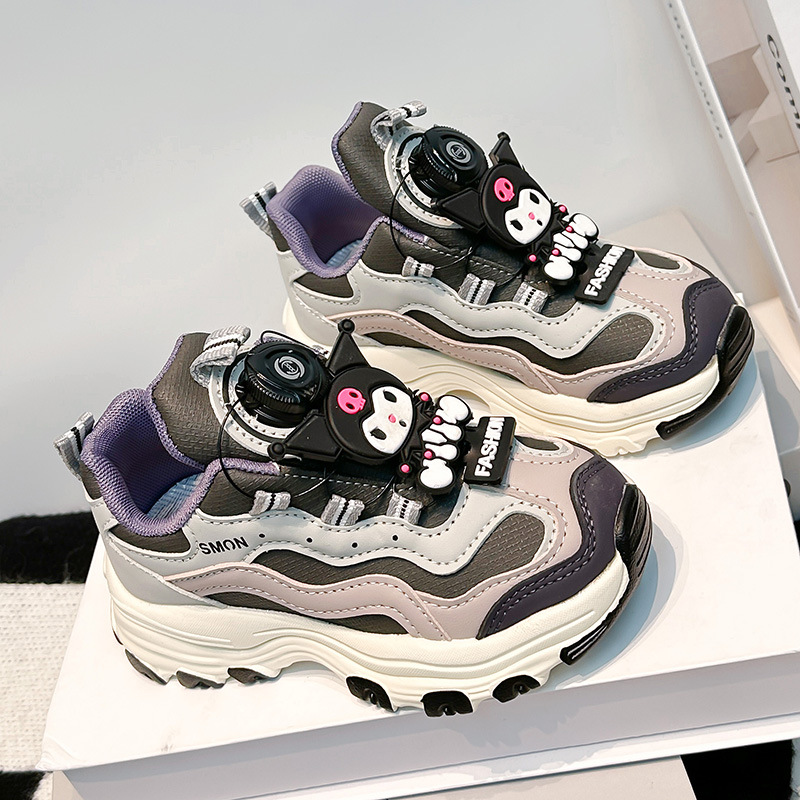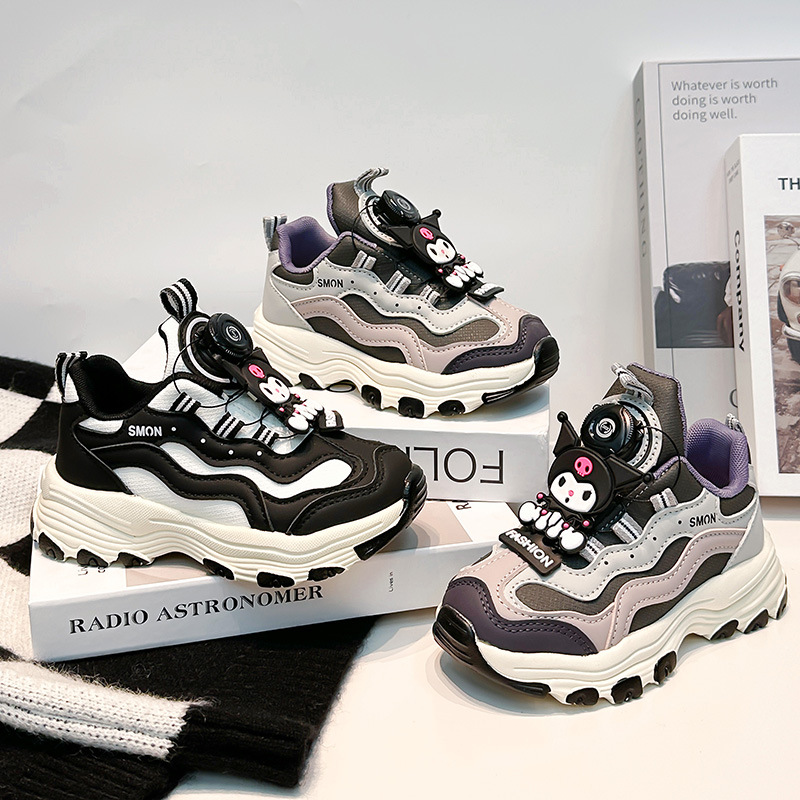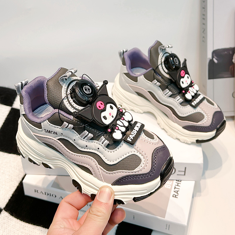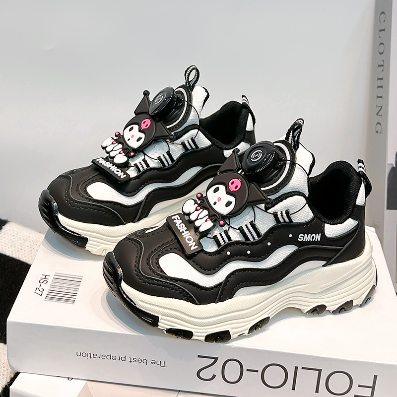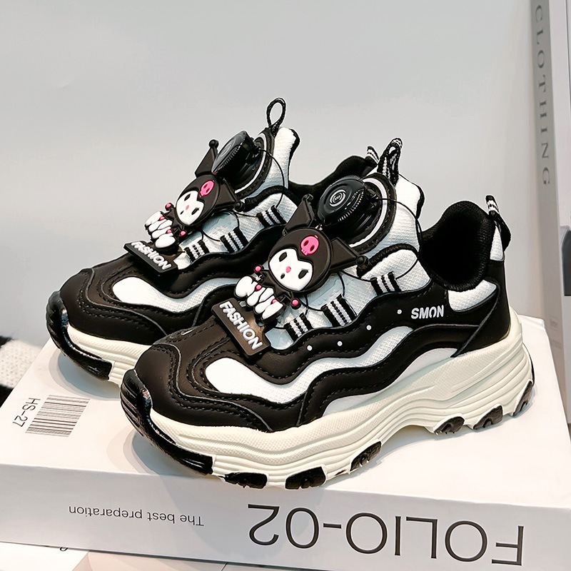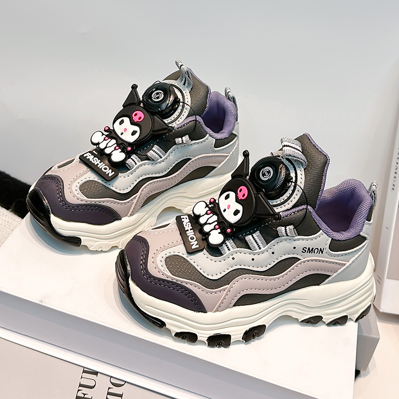 소녀 쿨로 미 싱글 운동화 봄 2025 큰 아이들을위한 새로운 미끄럼 방지 버튼 신발 패션 올 매치 트렌디