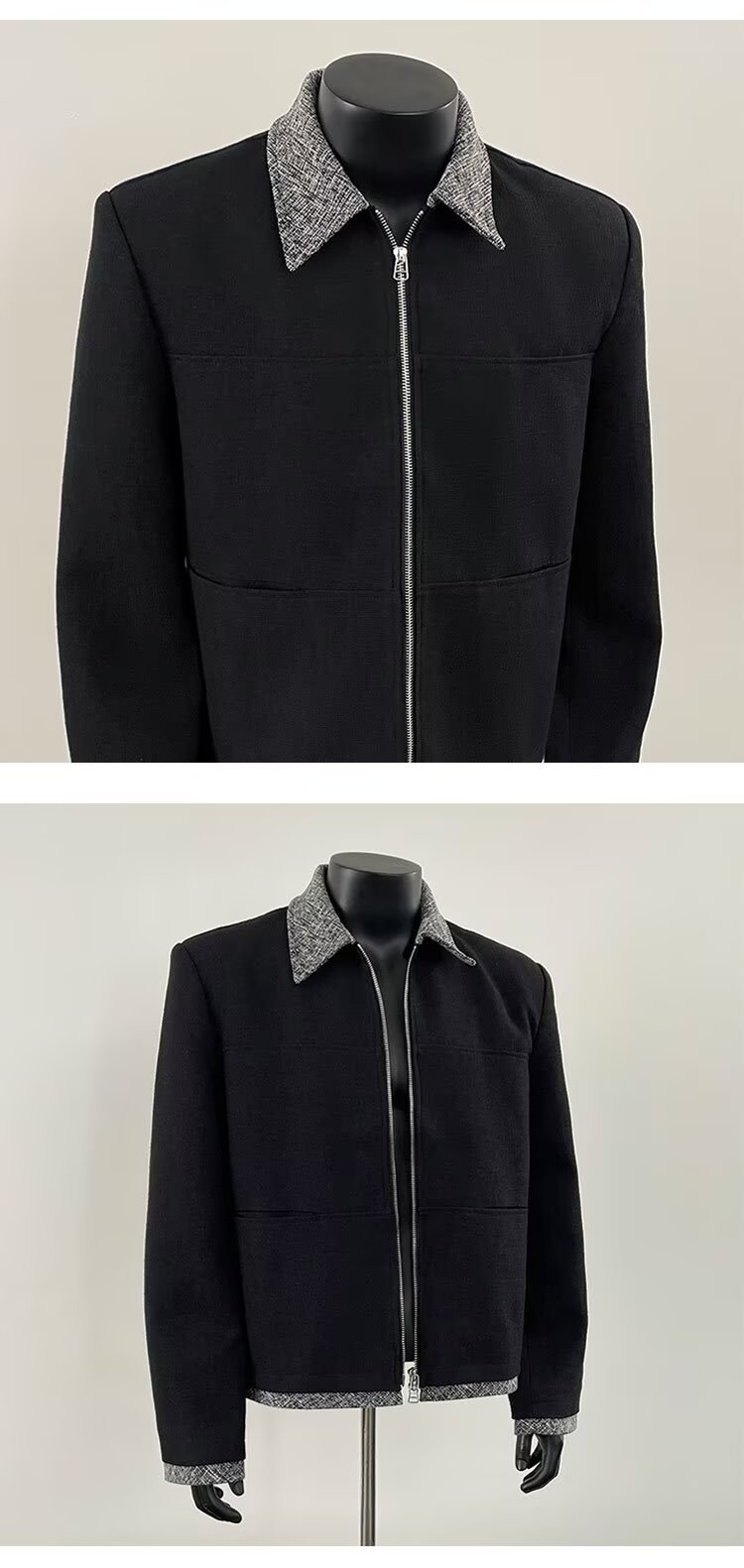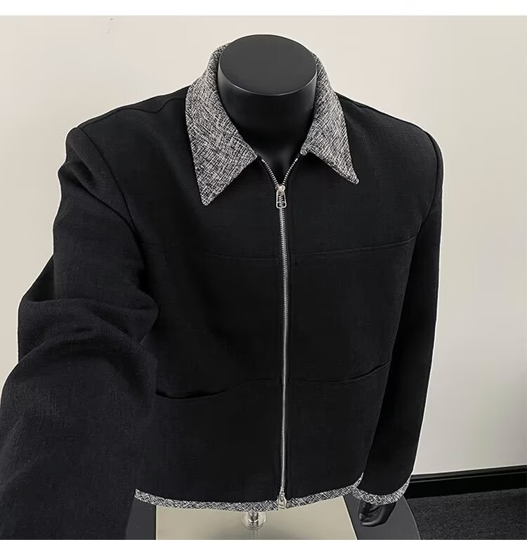 아메리칸 스타일 클렌핏 짧은 블랙 재킷 남자의 봄과 가을 스타일 Ins 하이 엔드 옷깃 재킷 틈새스토어 가기