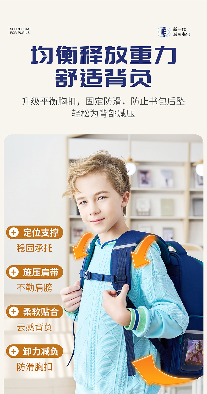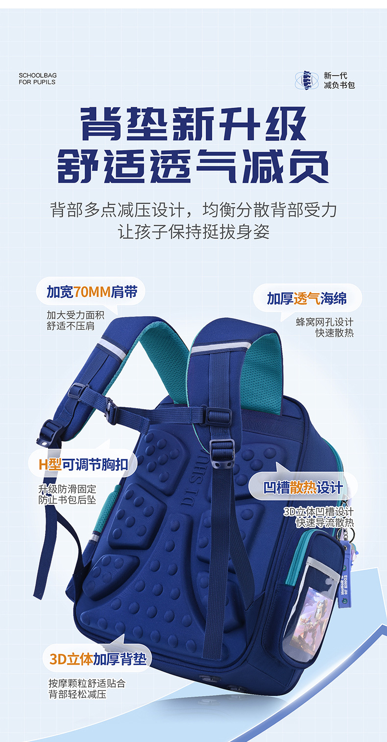 2025 새로운 학교 가방 남학생 1, 2, 3-6 학년 소년, 어린이 및 여학생은 대용량 부담을 줄이기 위해 보호 능선