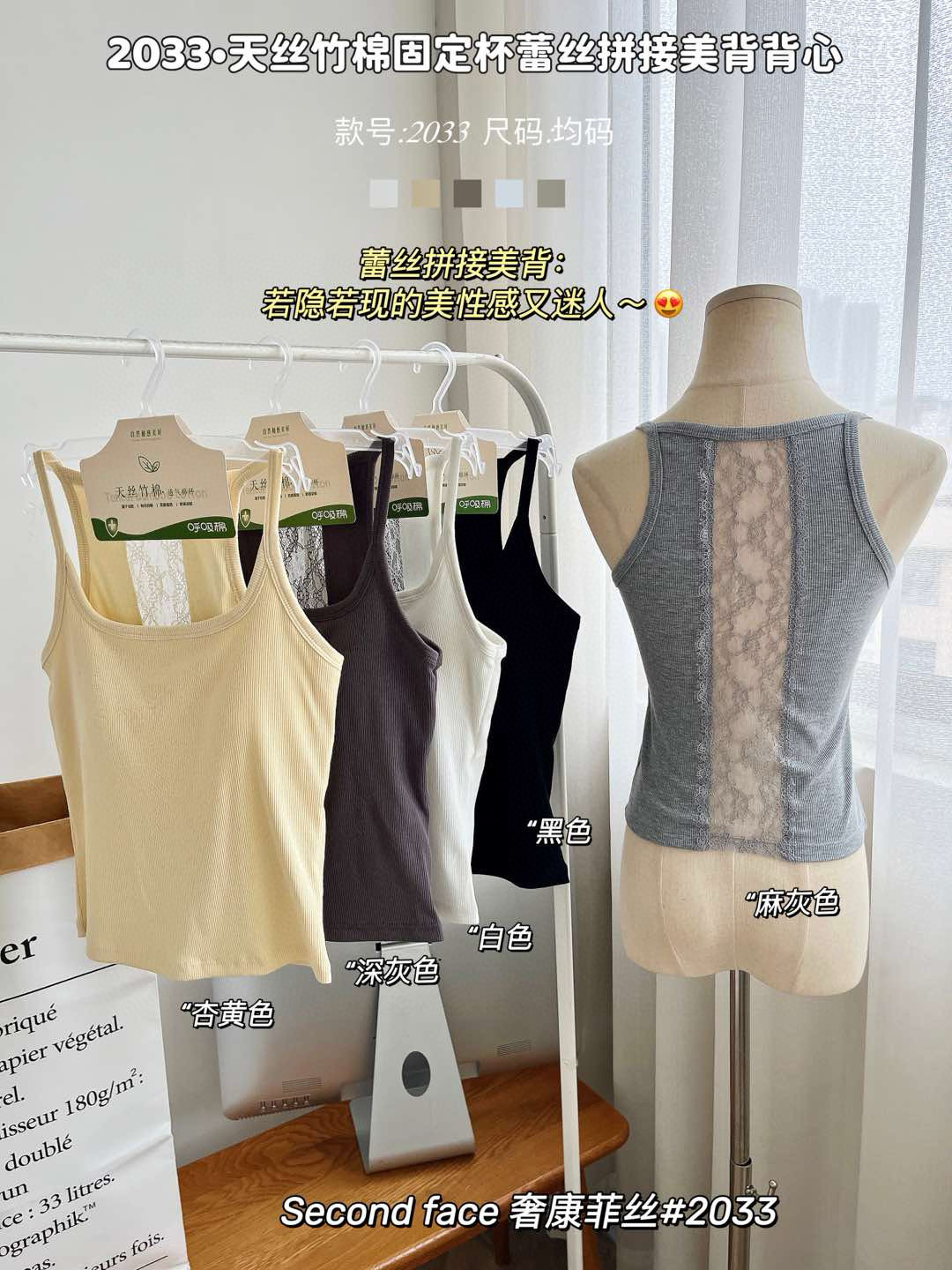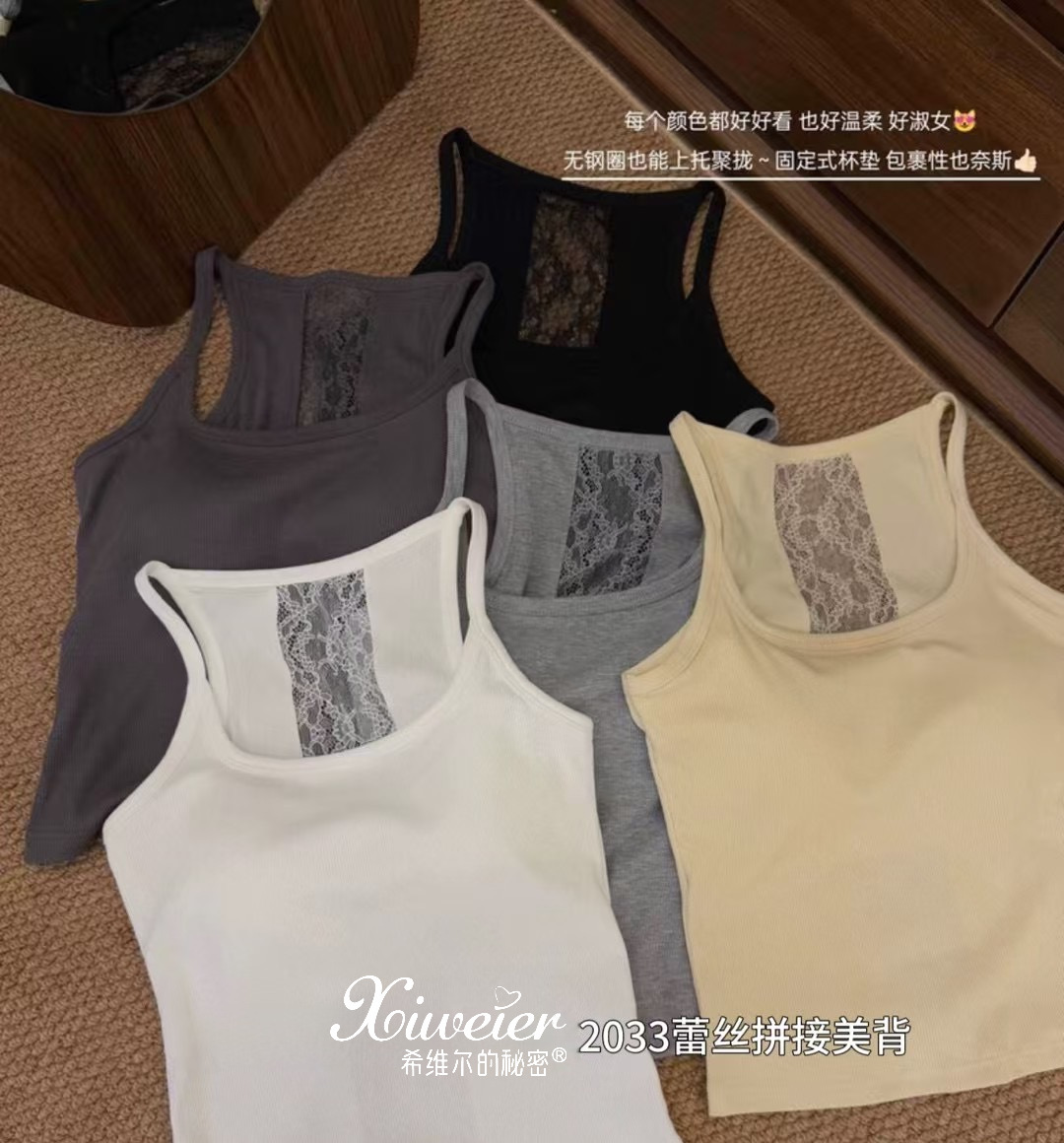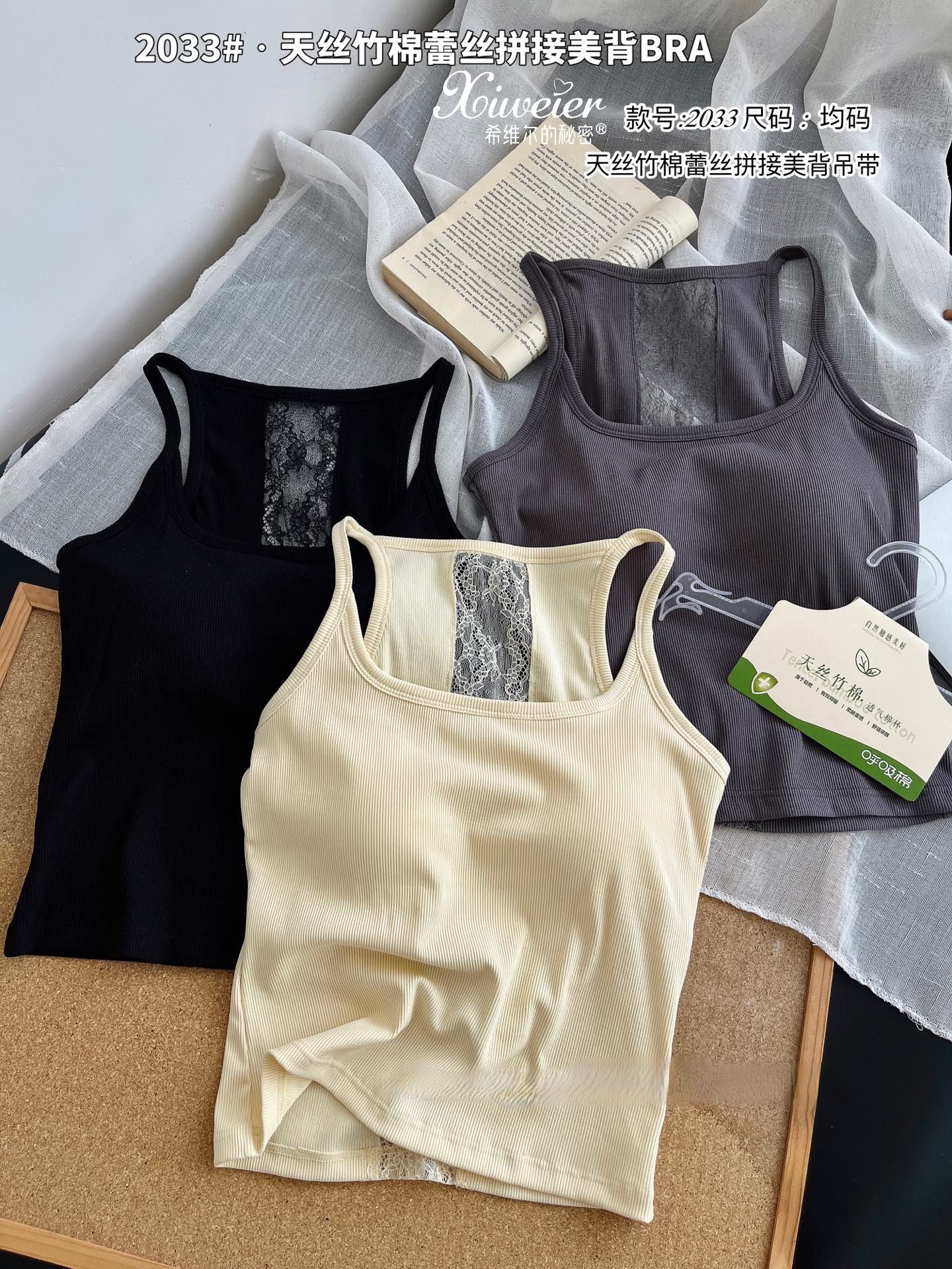 럭셔리 ConocoPhillips 2033 옷 옷걸이 텐셀 대나무 코튼 조끼 고정 컵 레이스 바느질 아름다운 뒤로 패션 스퀘어 넥 슬링스토어 가기