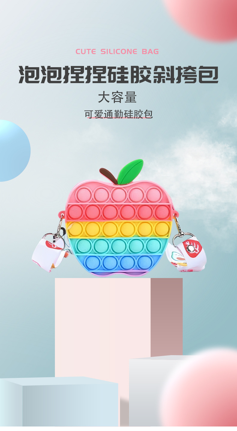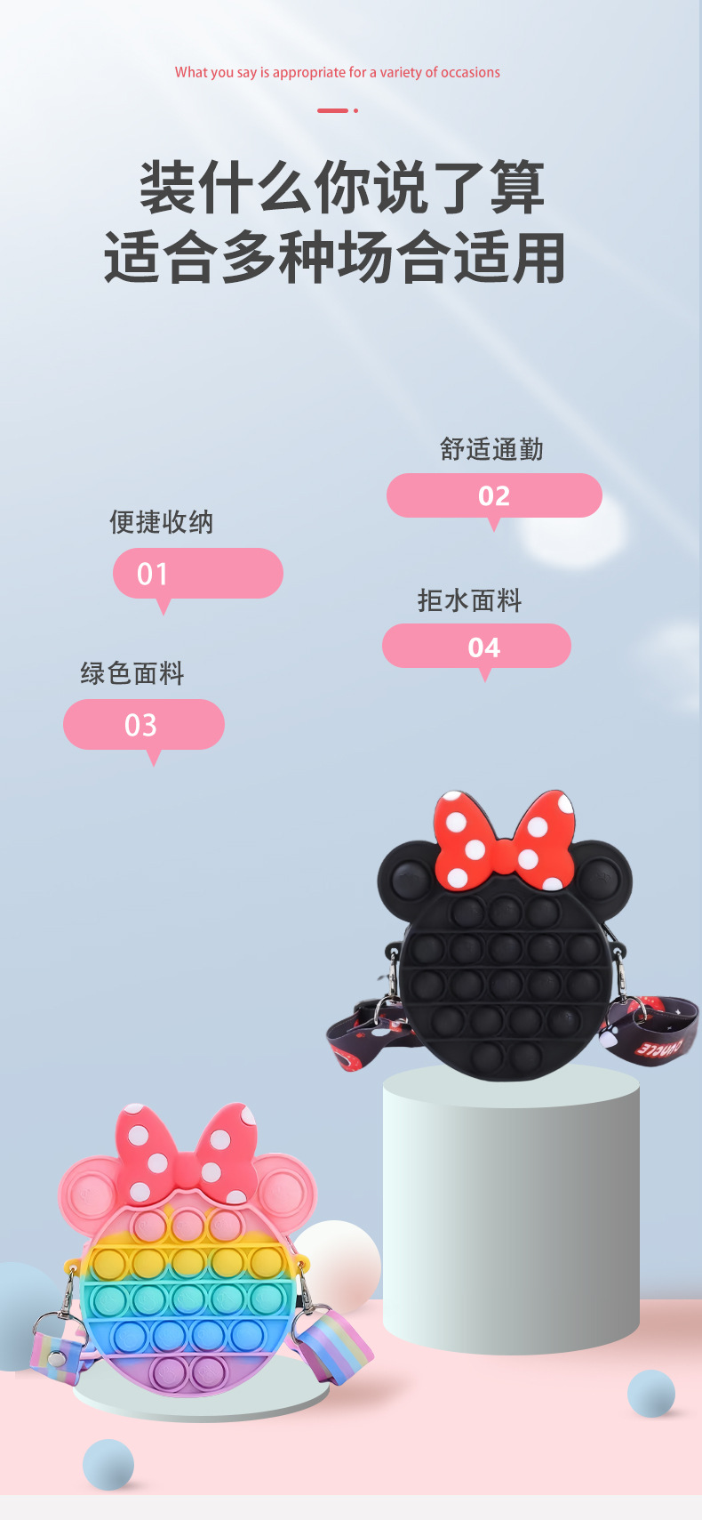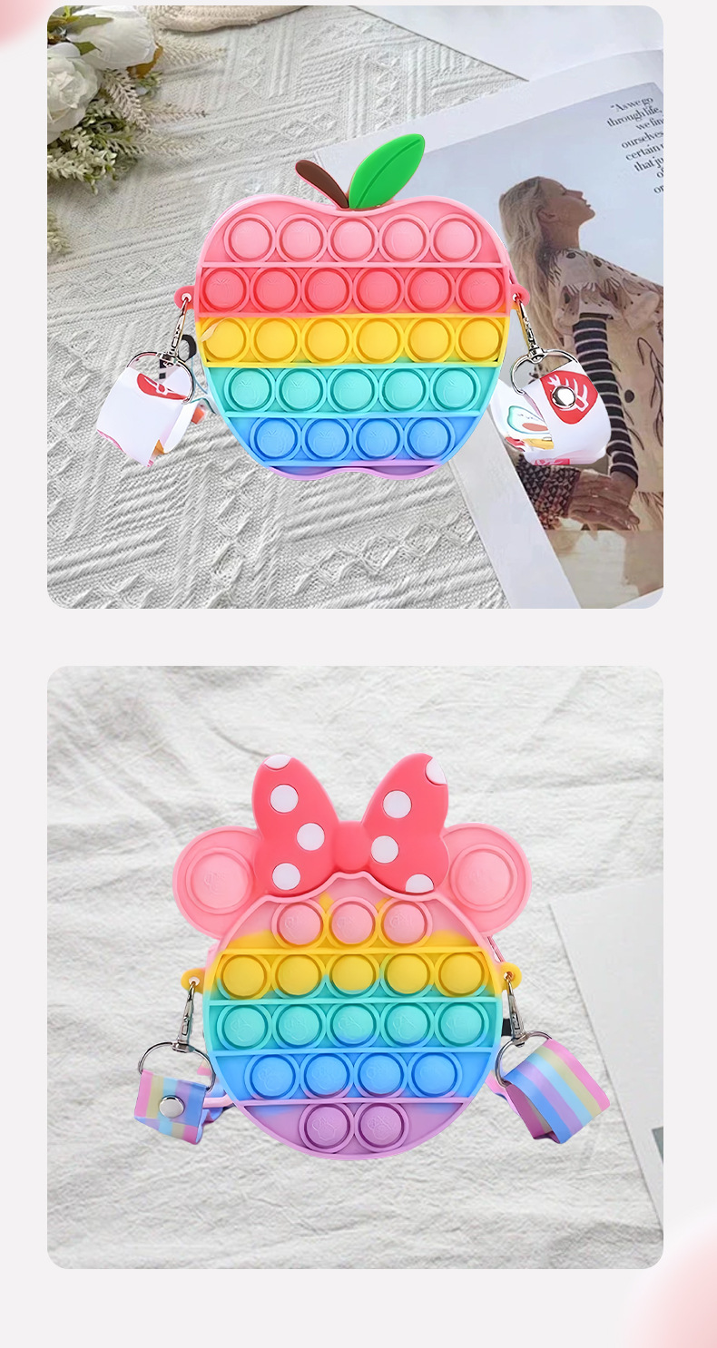 새로운 버블 핀치 어린이 가방 작은 소녀 만화 크로스 바디 백 압축 및 미니 동전 지갑
