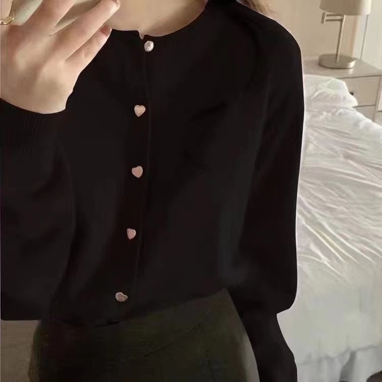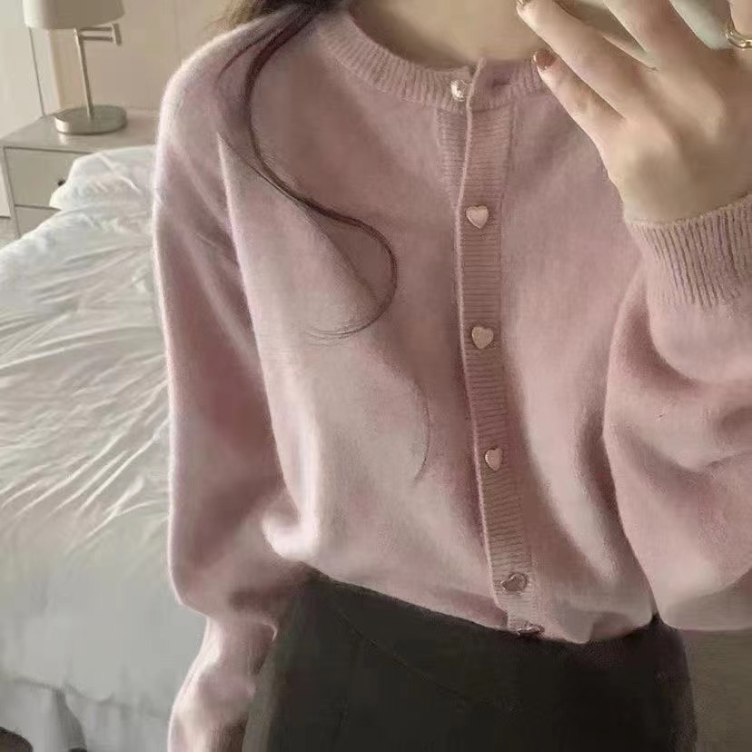 부드러운 사랑 버튼 핑크 스웨터 여성의 2025 년 봄과 가을 외부 착용 느슨한 게으른 니트 작은 카디건 재킷