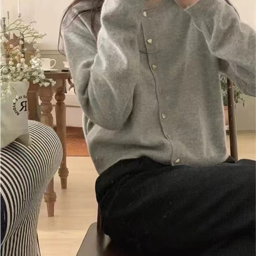 부드러운 사랑 버튼 핑크 스웨터 여성의 2025 년 봄과 가을 외부 착용 느슨한 게으른 니트 작은 카디건 재킷스토어 가기