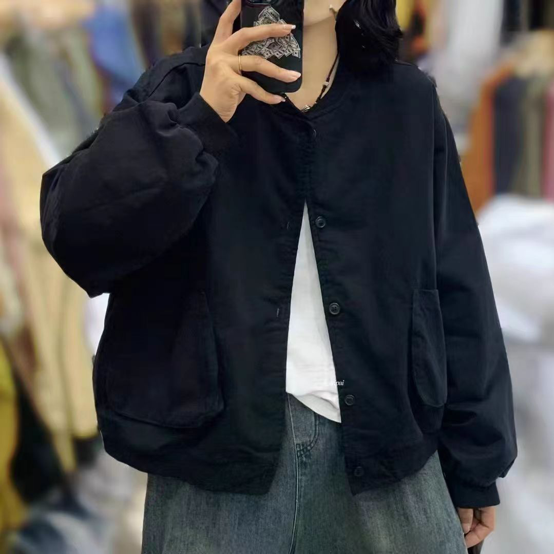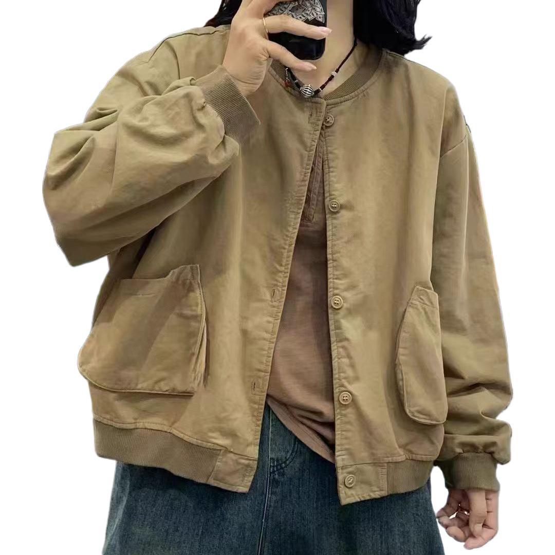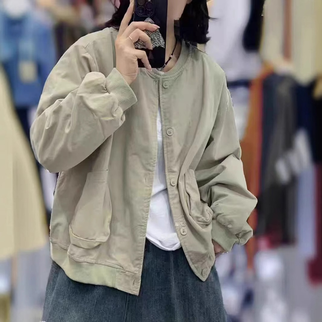 새로운 캐주얼 틈새 카디건 싱글 브레스트 재킷 여성의 간단한 솔리드 컬러 작업복 야구 칼라 재킷스토어 가기
