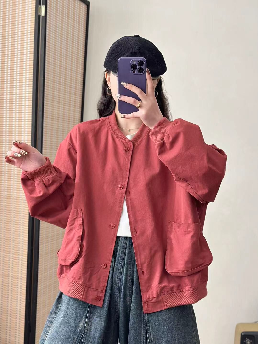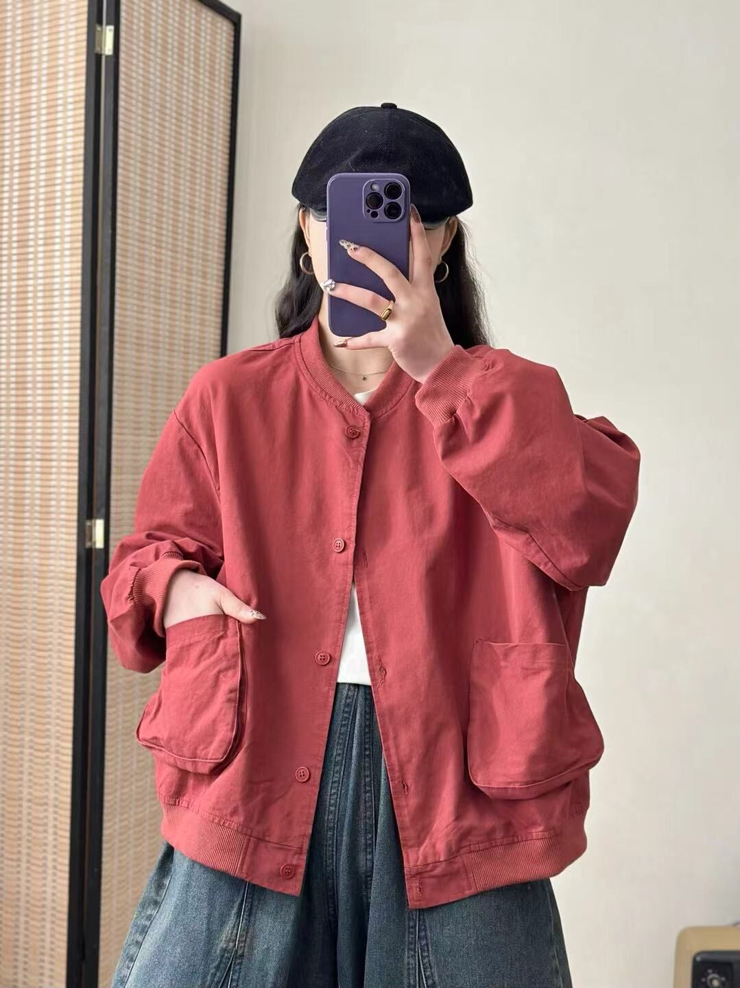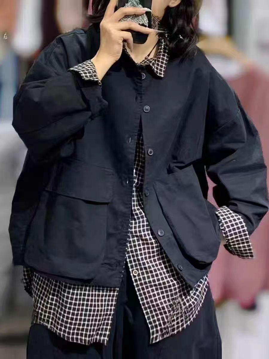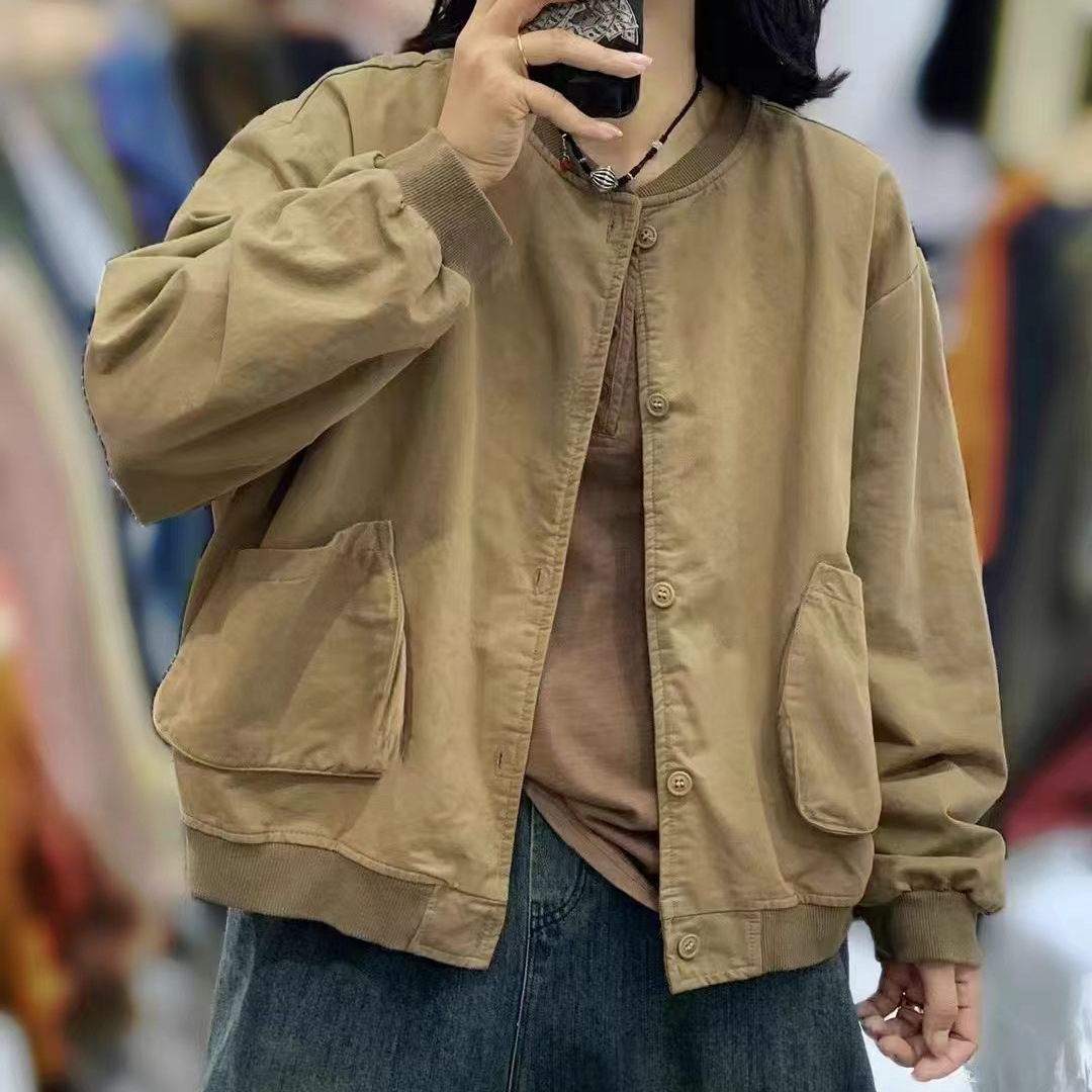 새로운 캐주얼 틈새 카디건 싱글 브레스트 재킷 여성의 간단한 솔리드 컬러 작업복 야구 칼라 재킷스토어 가기
