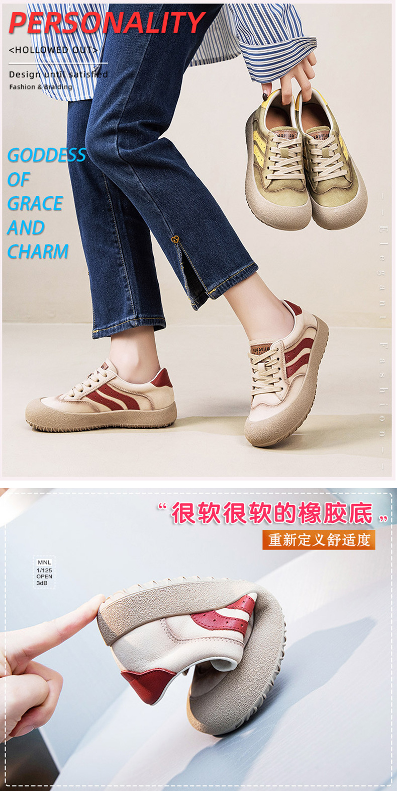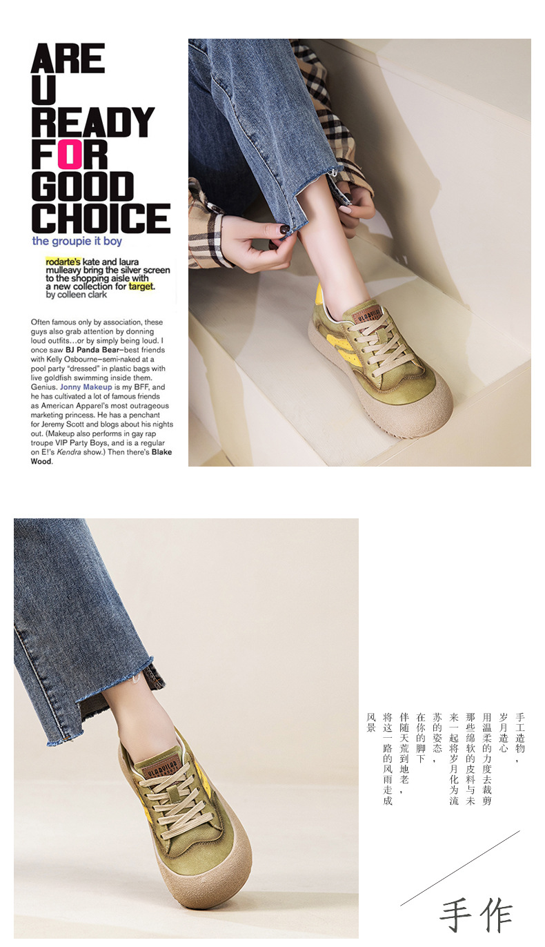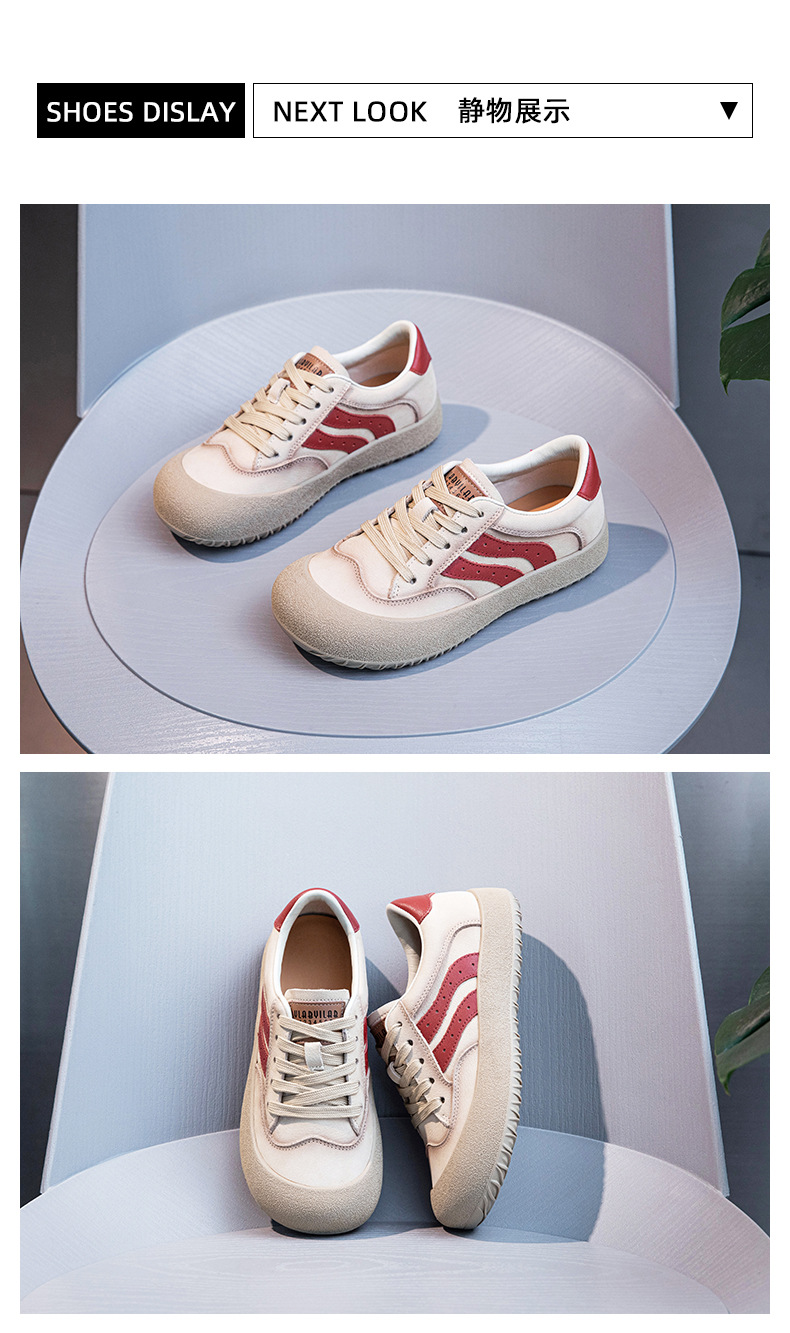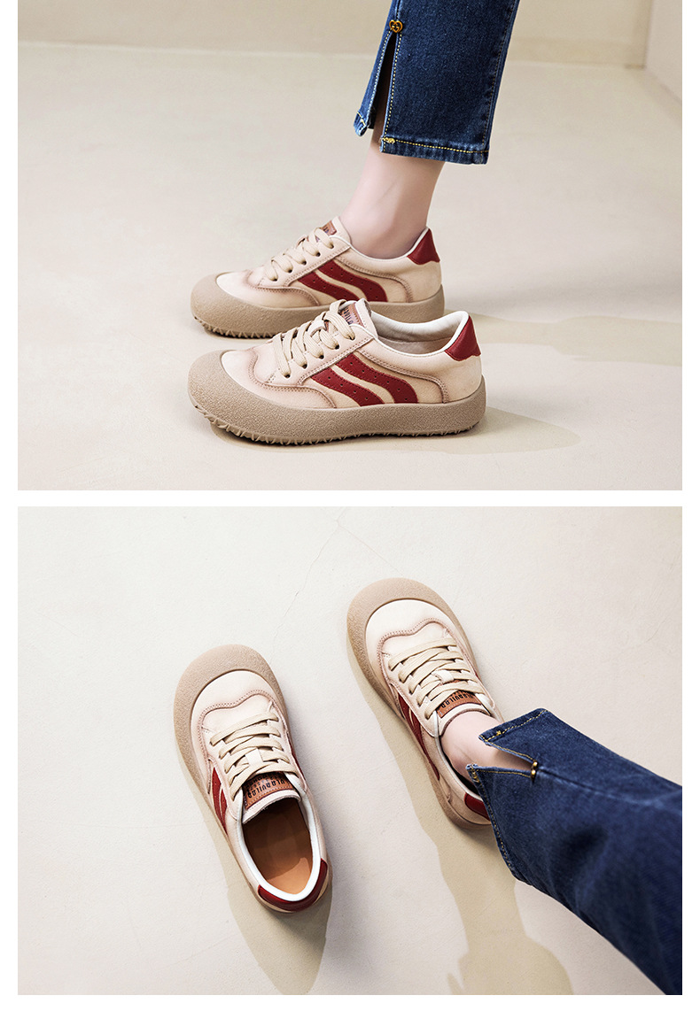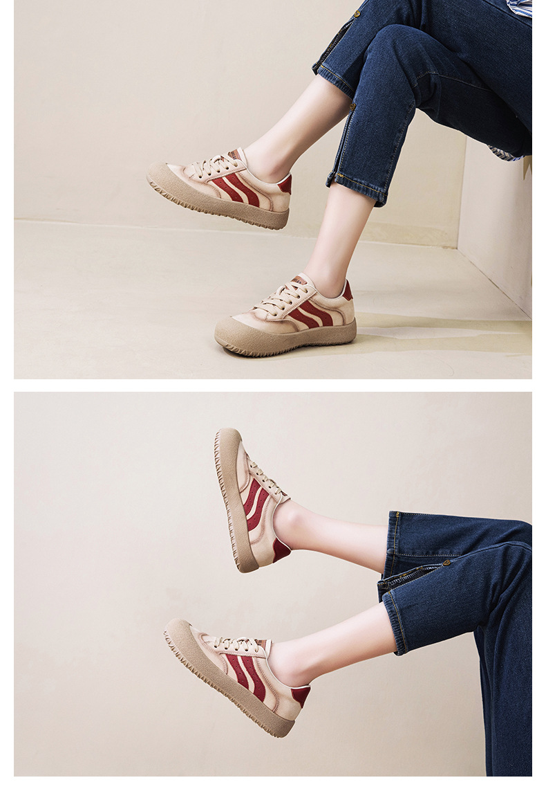 정품 가죽 독일 훈련 신발 여성 봄 새로운 소프트 솔 편안한 로우 탑 두꺼운 운동화 캐주얼 올 매치 레이스 업 플랫 슈즈스토어 가기