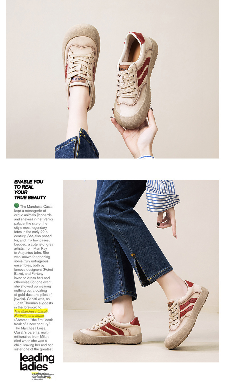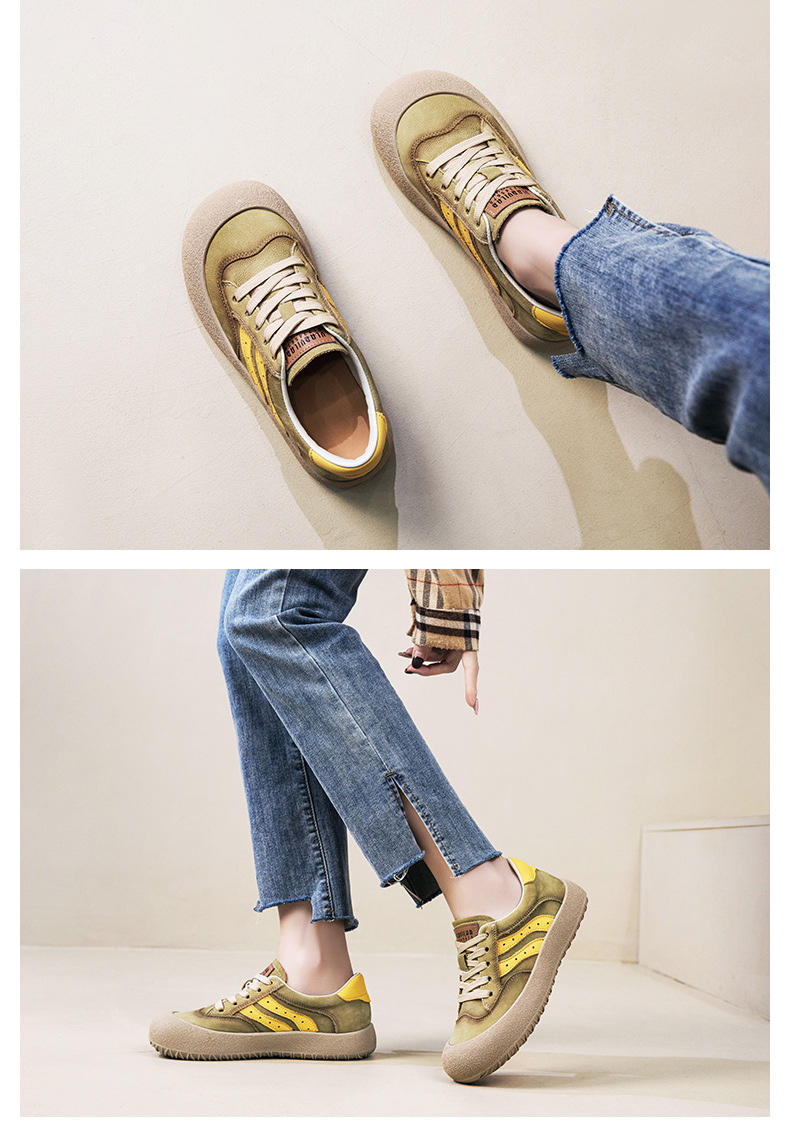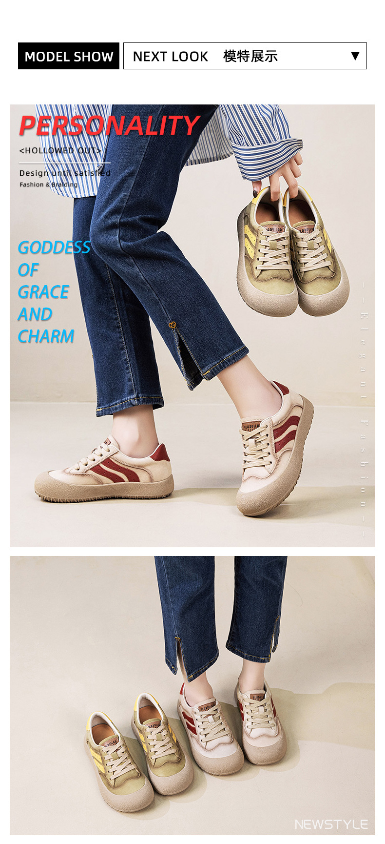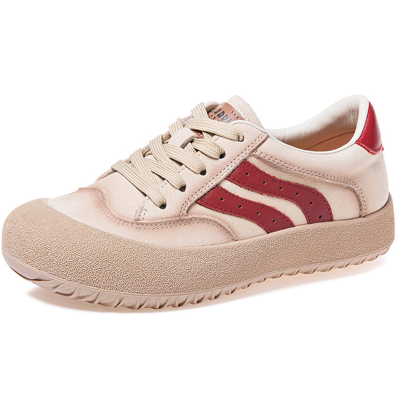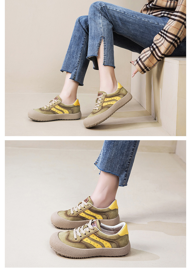 정품 가죽 독일 훈련 신발 여성 봄 새로운 소프트 솔 편안한 로우 탑 두꺼운 운동화 캐주얼 올 매치 레이스 업 플랫 슈즈스토어 가기
