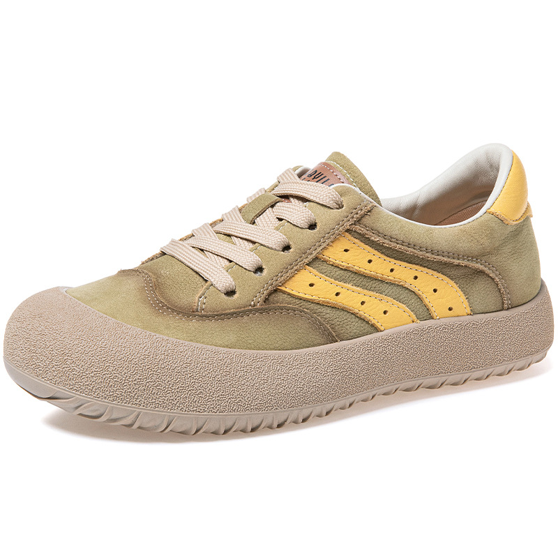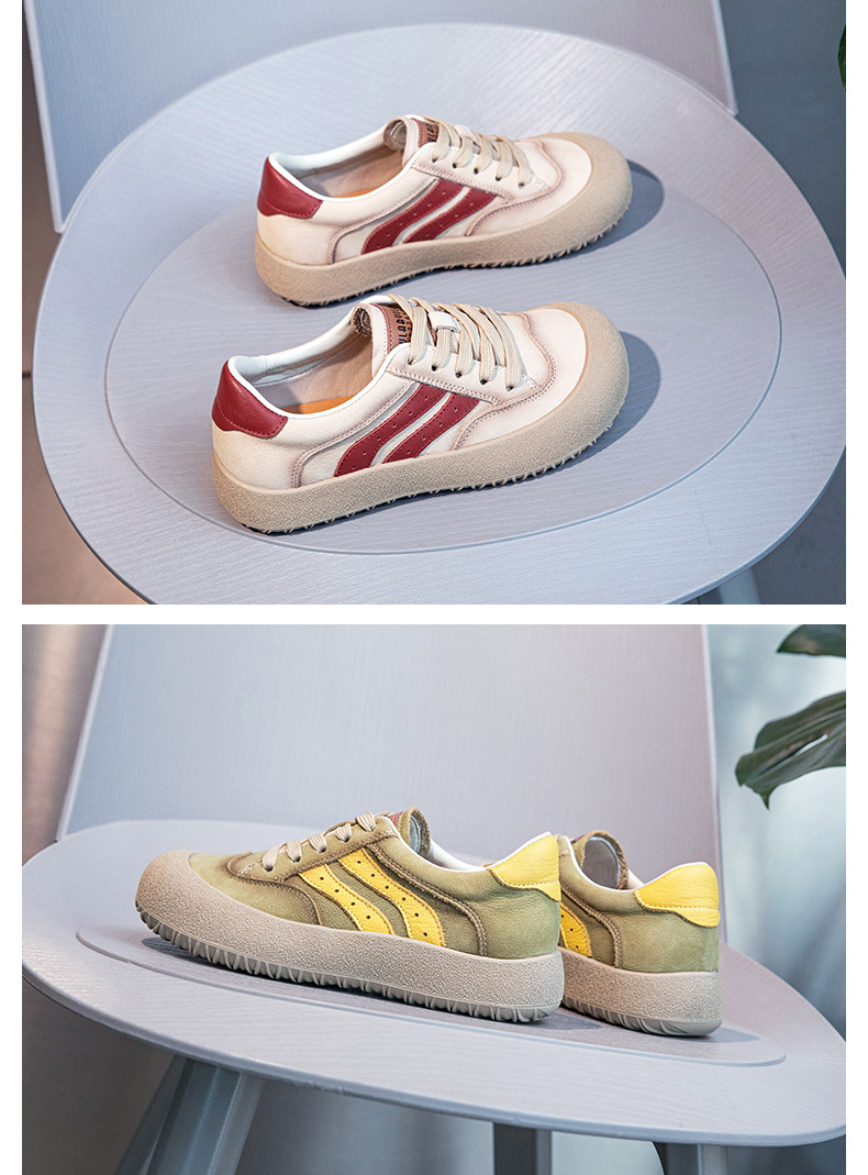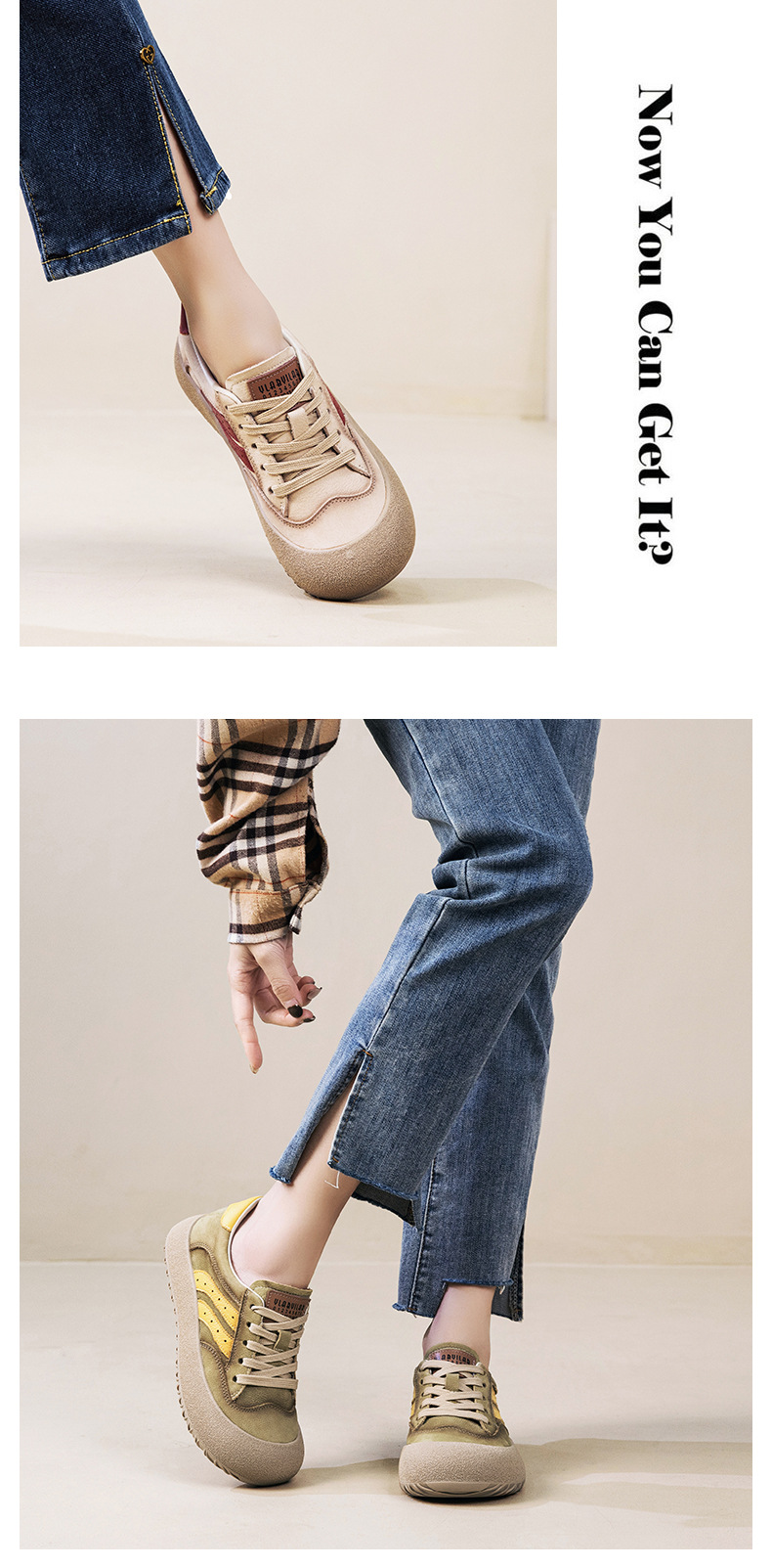 정품 가죽 독일 훈련 신발 여성 봄 새로운 소프트 솔 편안한 로우 탑 두꺼운 운동화 캐주얼 올 매치 레이스 업 플랫 슈즈