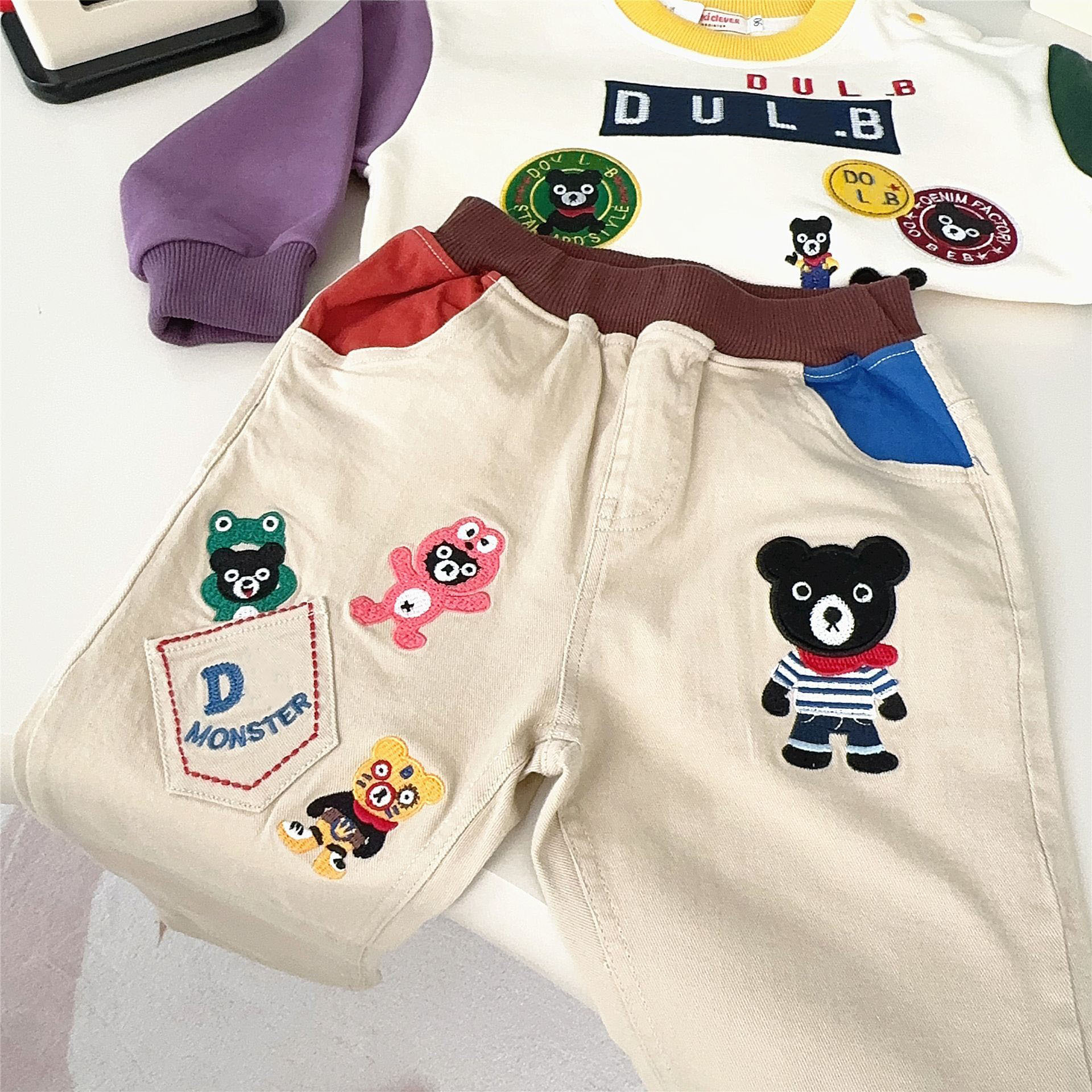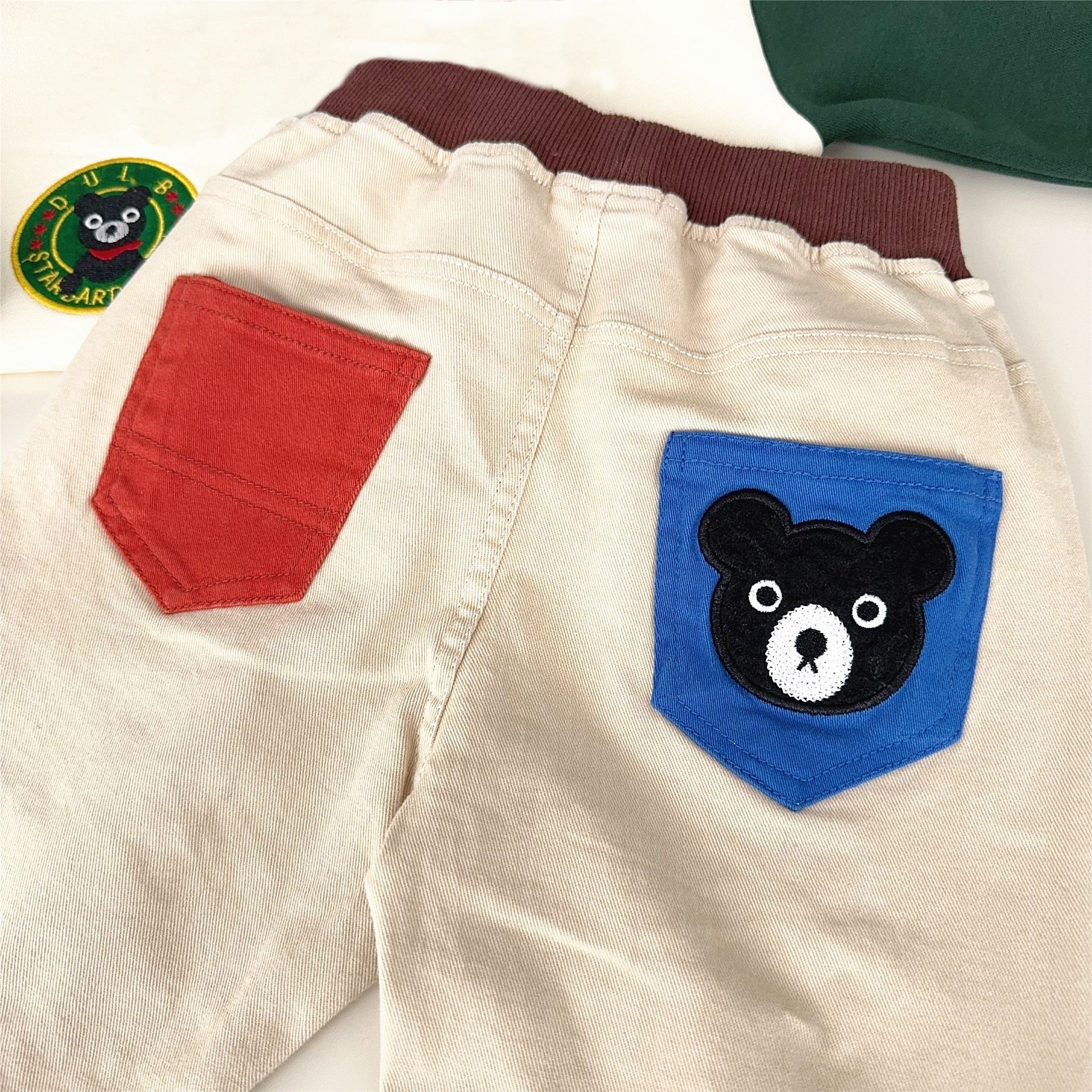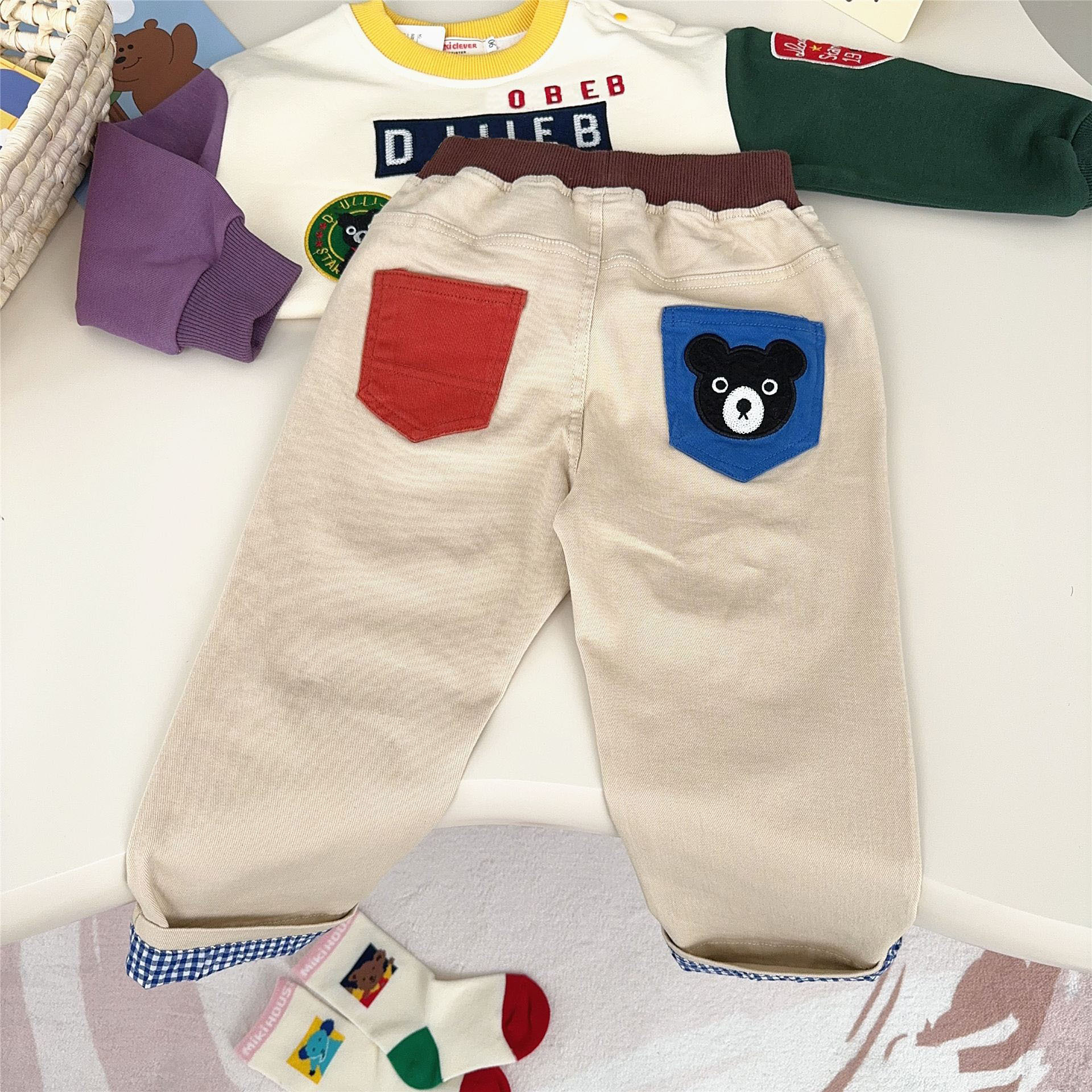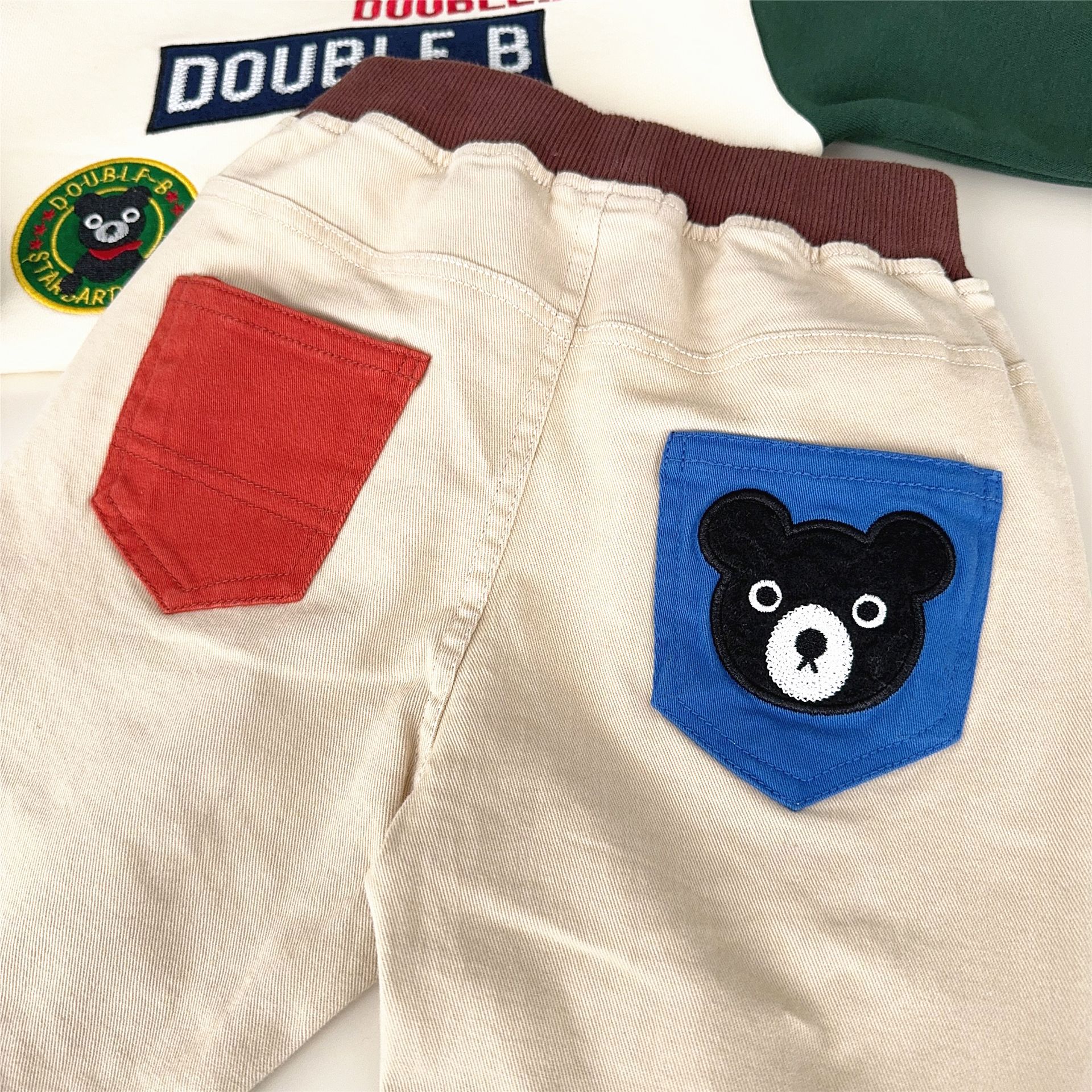 25 Chunxin DB 블랙 베어 일본 소년 포켓 캐주얼 바지 부드럽고 편안한 아기 짠 긴 바지 5025
